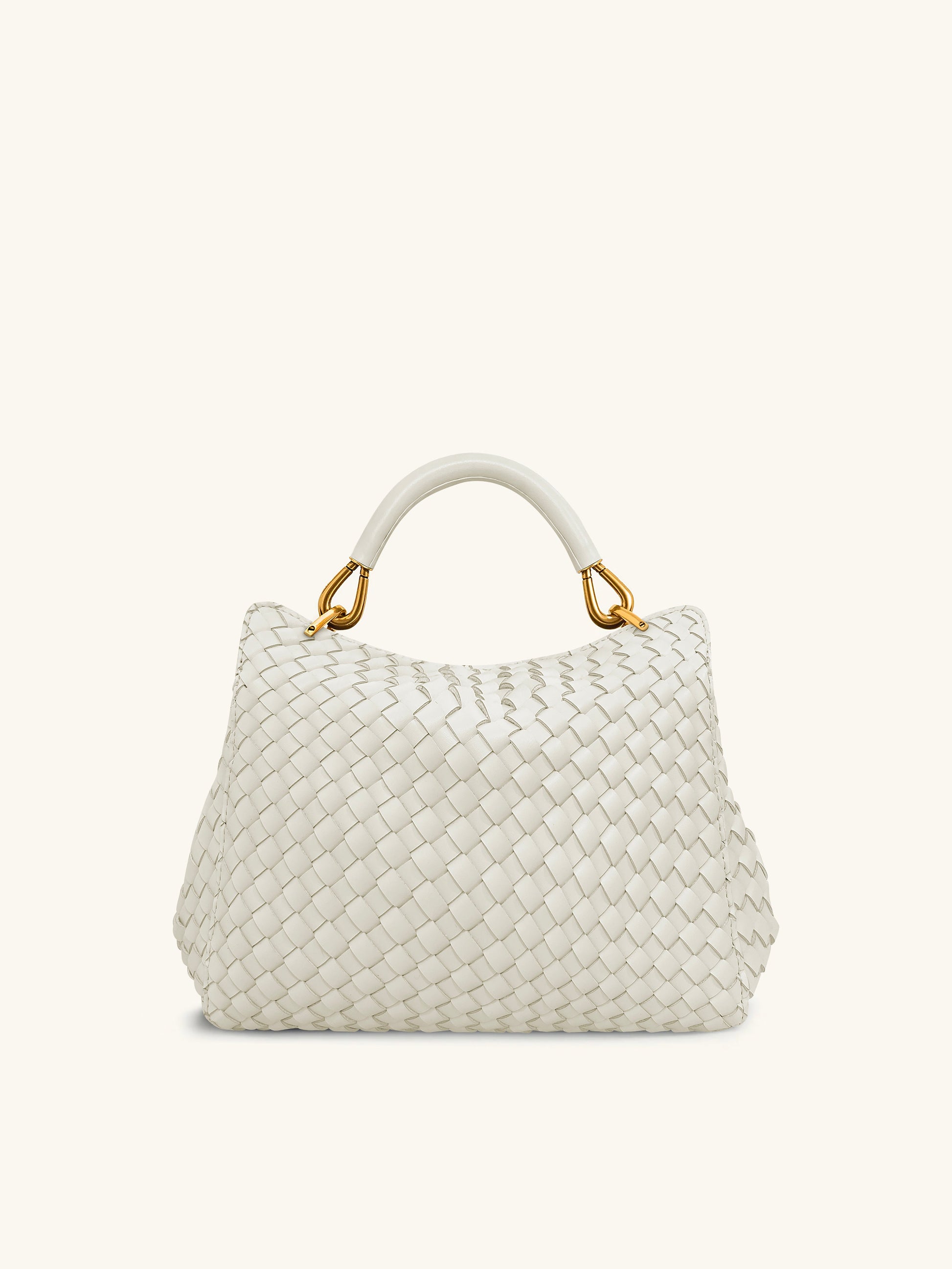 Lucia Klassische Flechttasche mit Tragegriff – Weiß