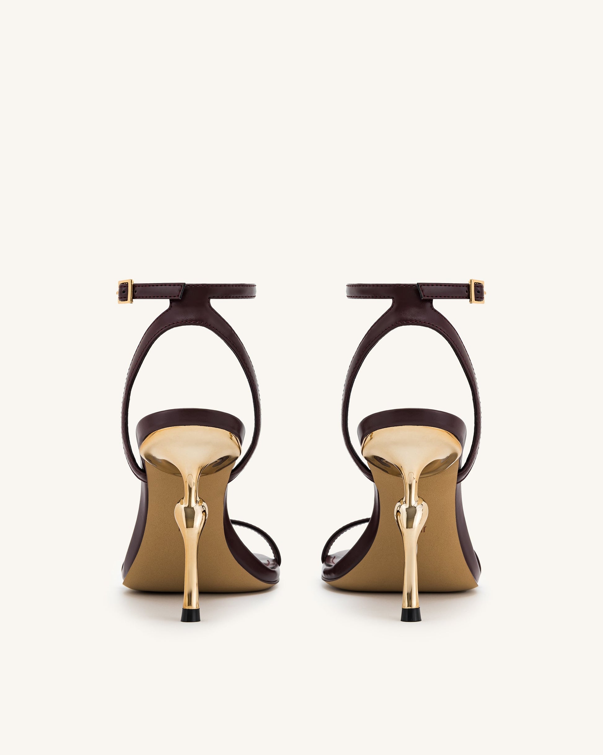 Alivia Goldene Sandalen mit Metallabsatz - Weinrot