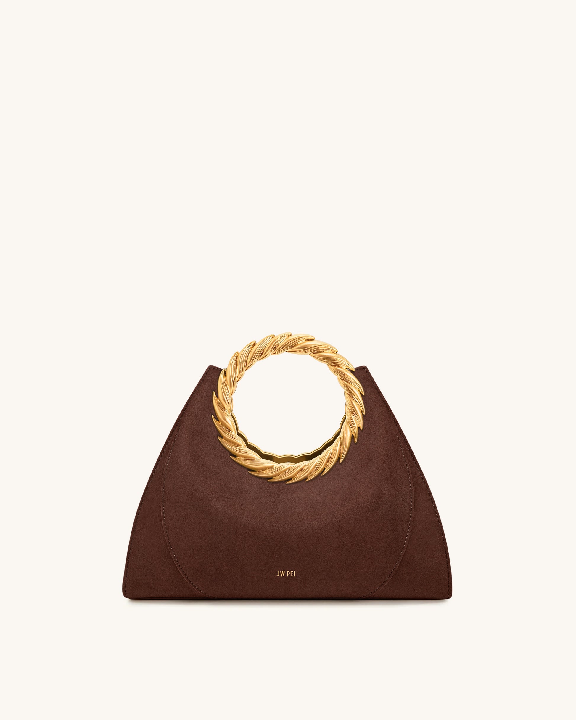 Amiya Blattgriff Kunstleder Skulptur Tasche - Mokkabraun