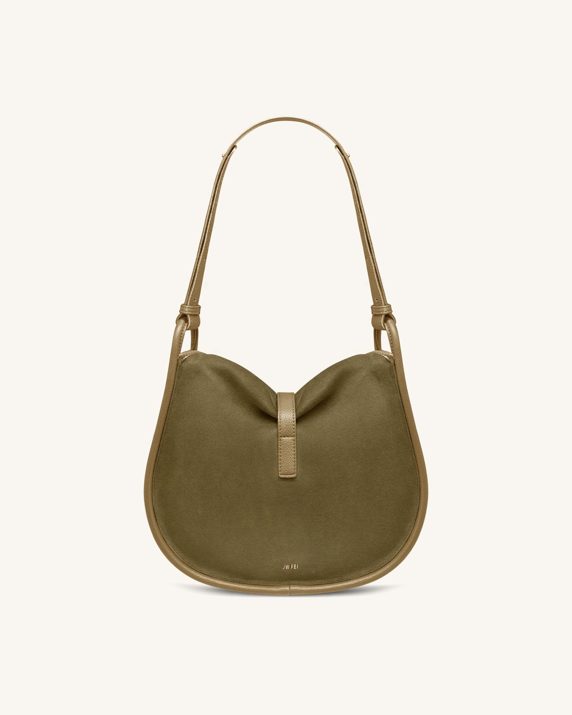 Arla Kleine Hobo-Tasche aus Kunstwildleder - Olivgrün