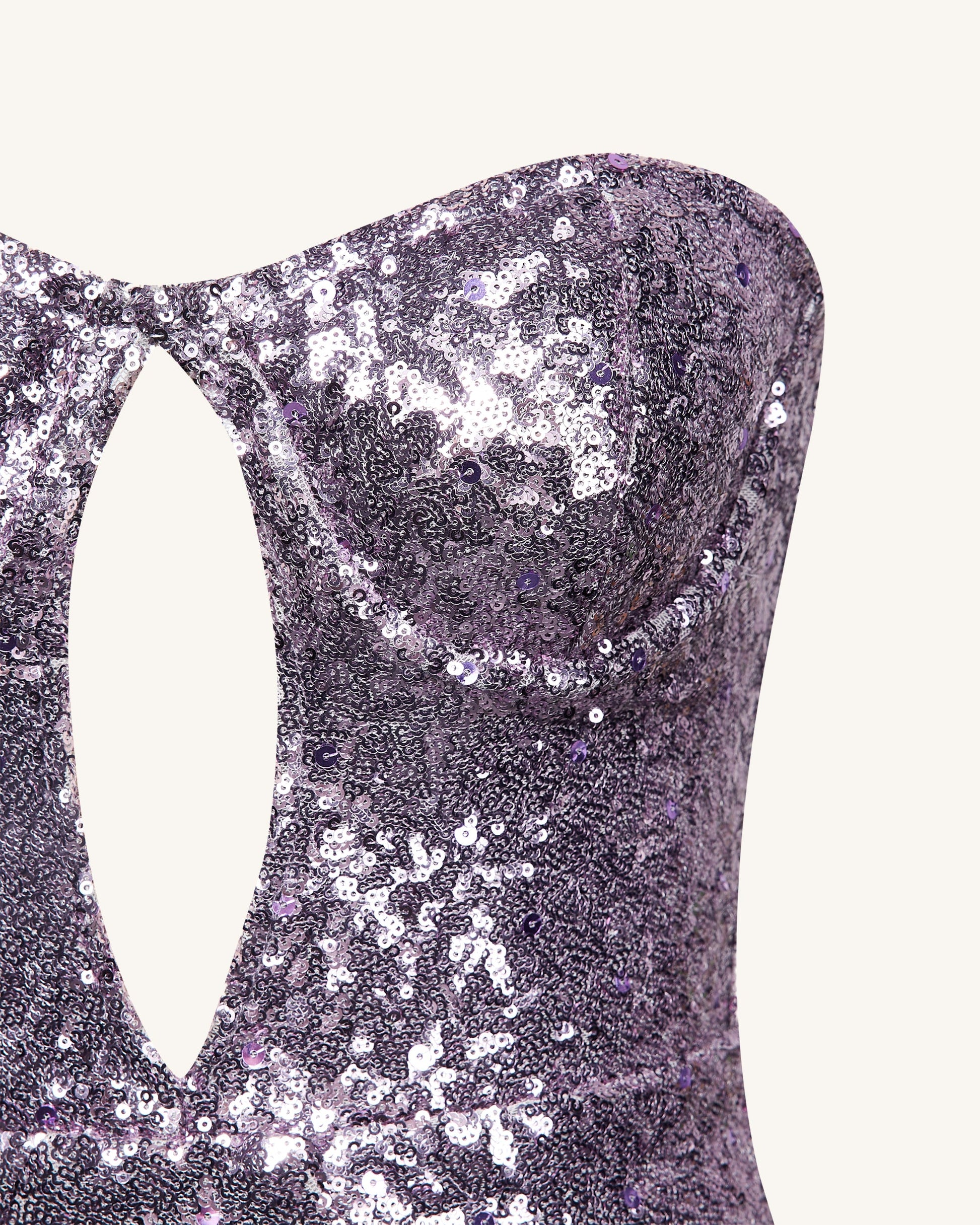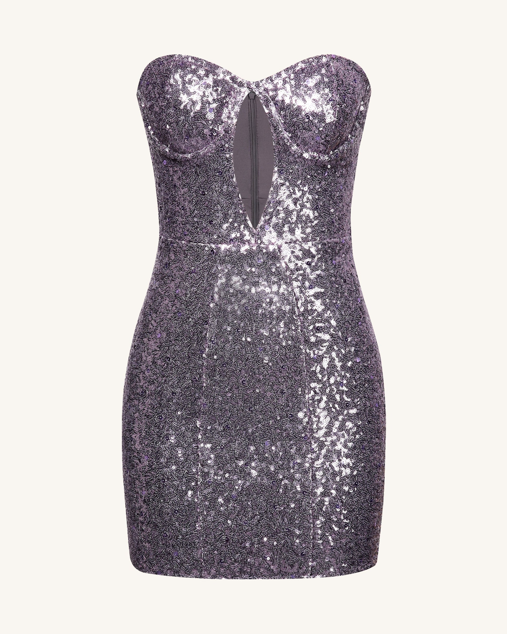 Brynlee Purple Pailletten Strapless Minikleid - Lila