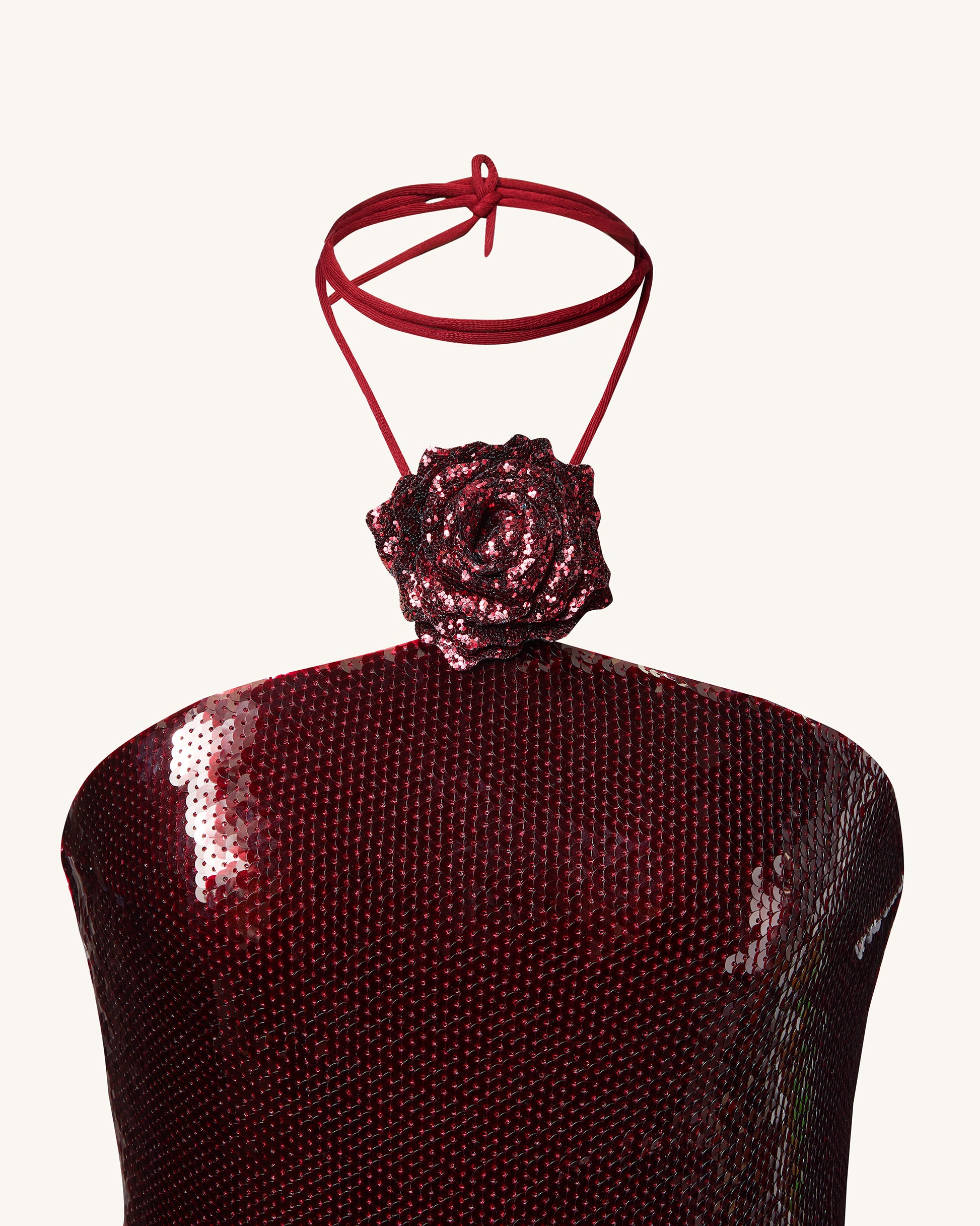 Burgunderfarbenes Halterneck-Minikleid mit Pailletten - Burgunderrot