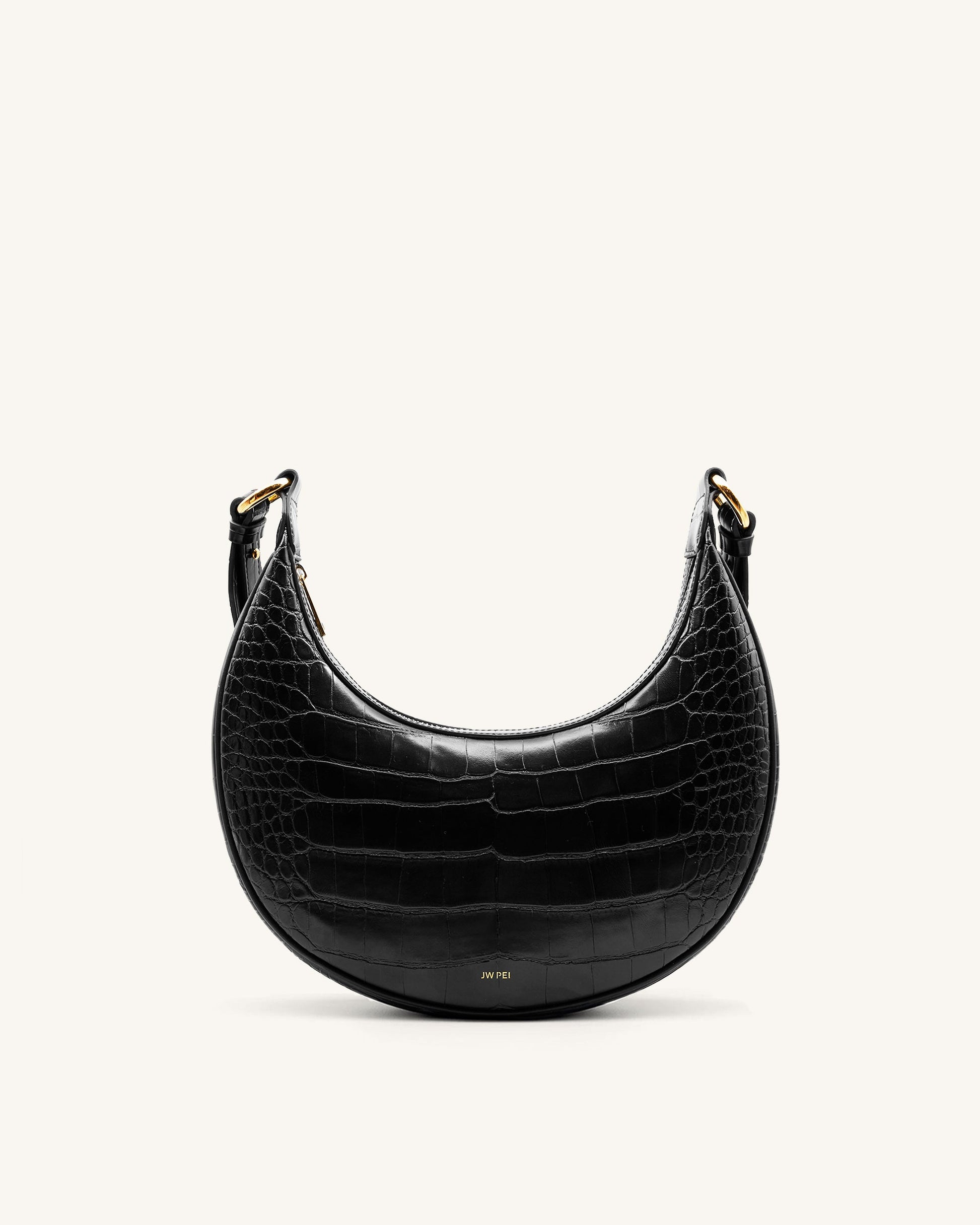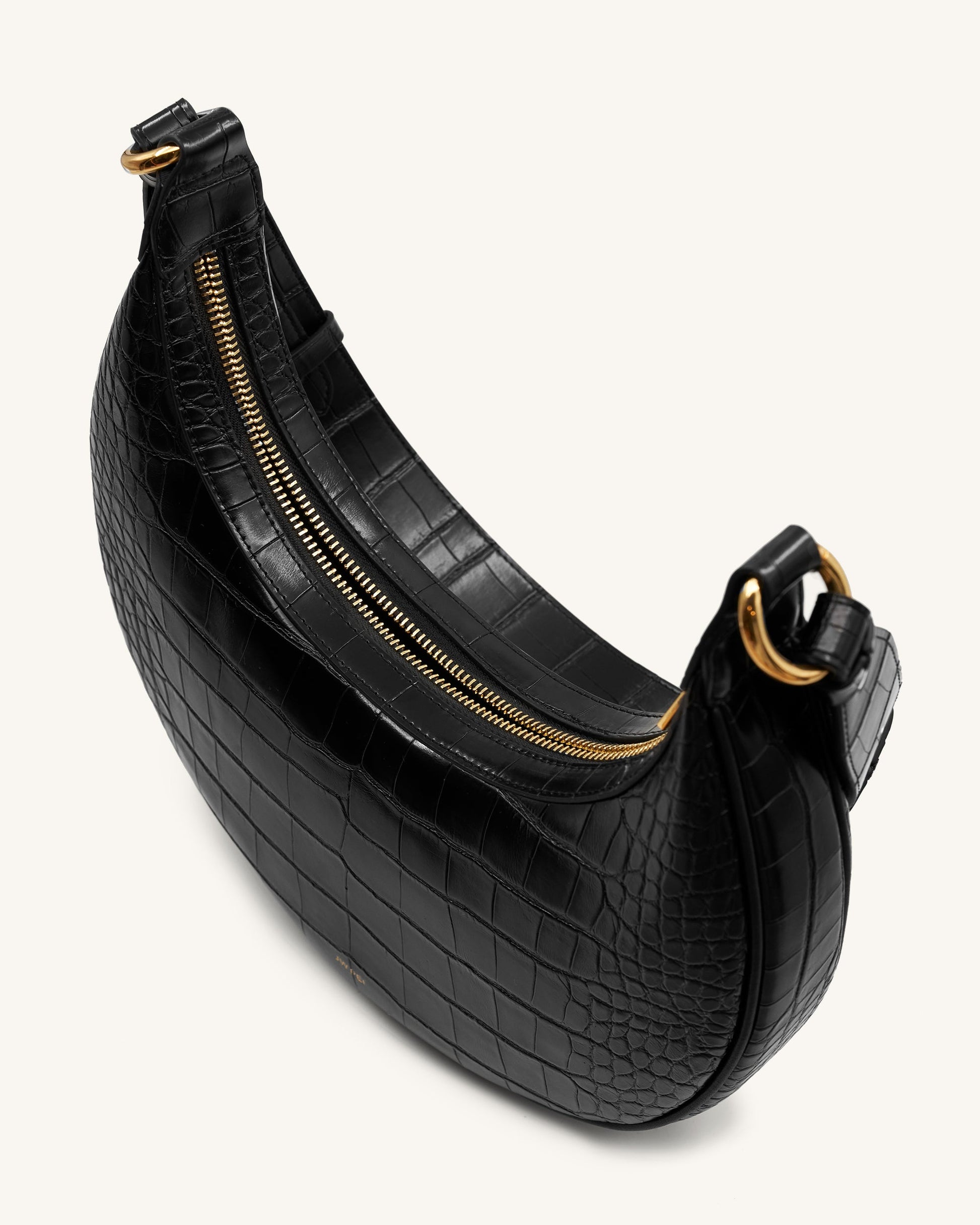 Carly Saddle Tasche - Krokodilprägung in schwarz