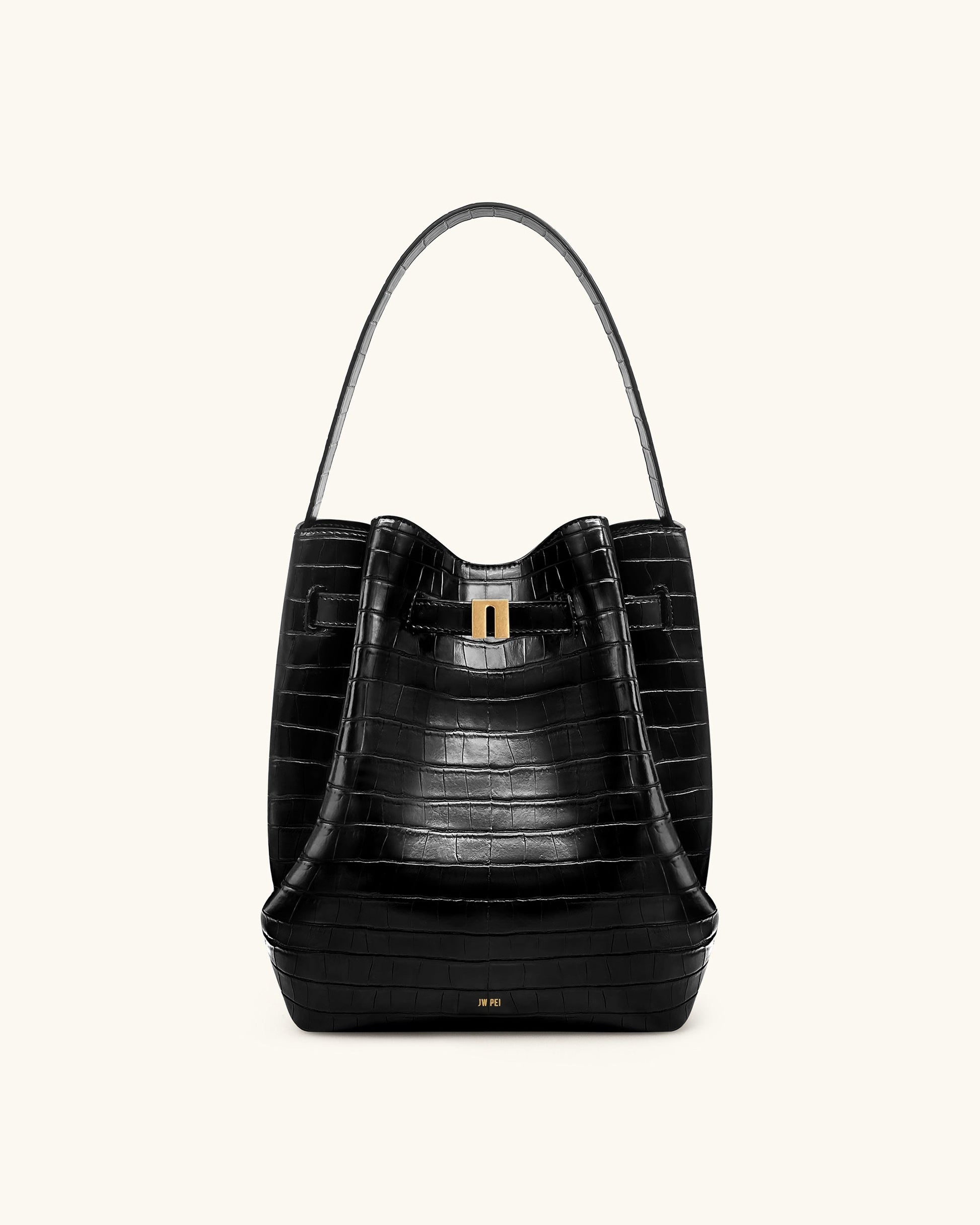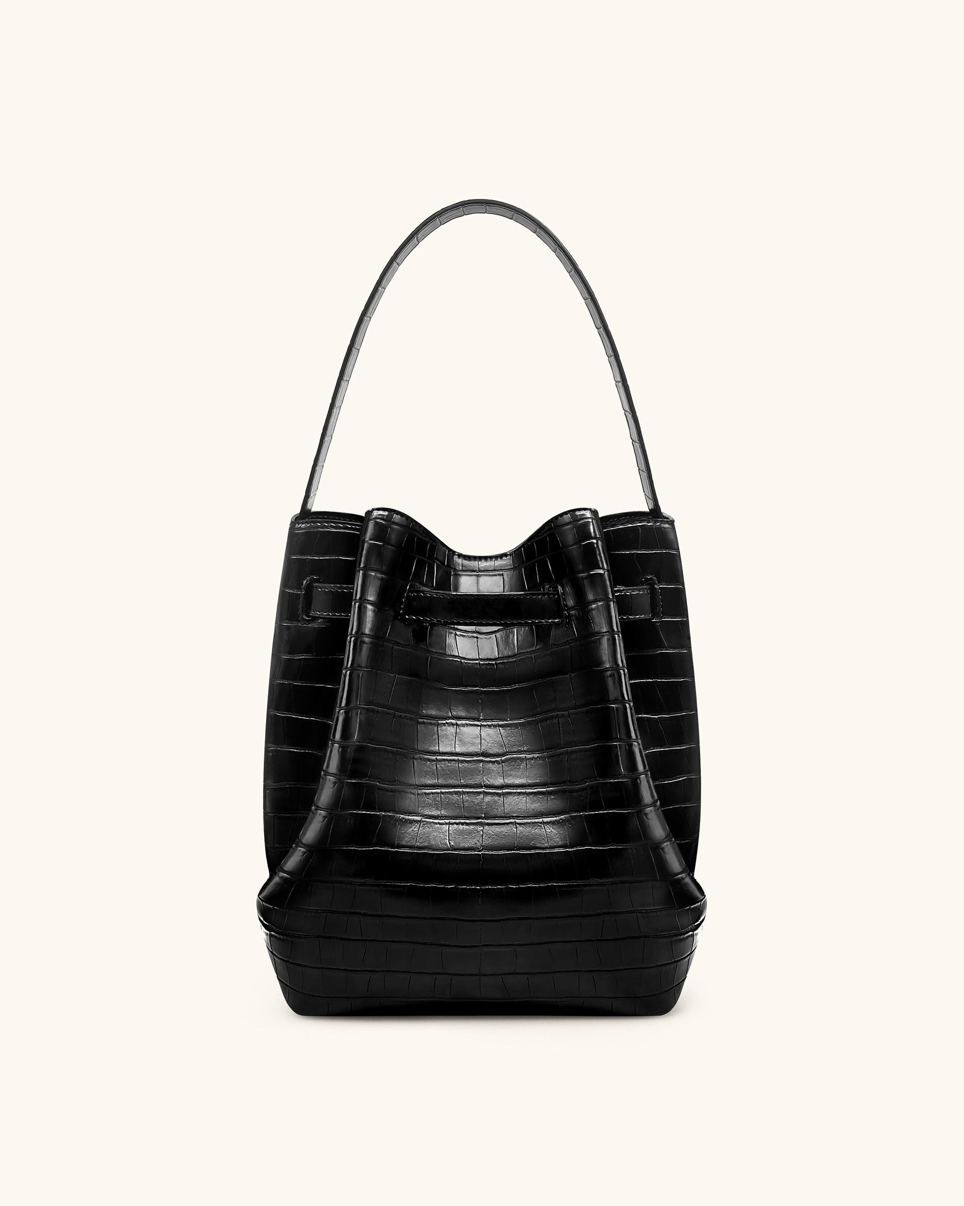 Clara Schloss-Akzent Beutelschultertasche - Schwarz Kroko