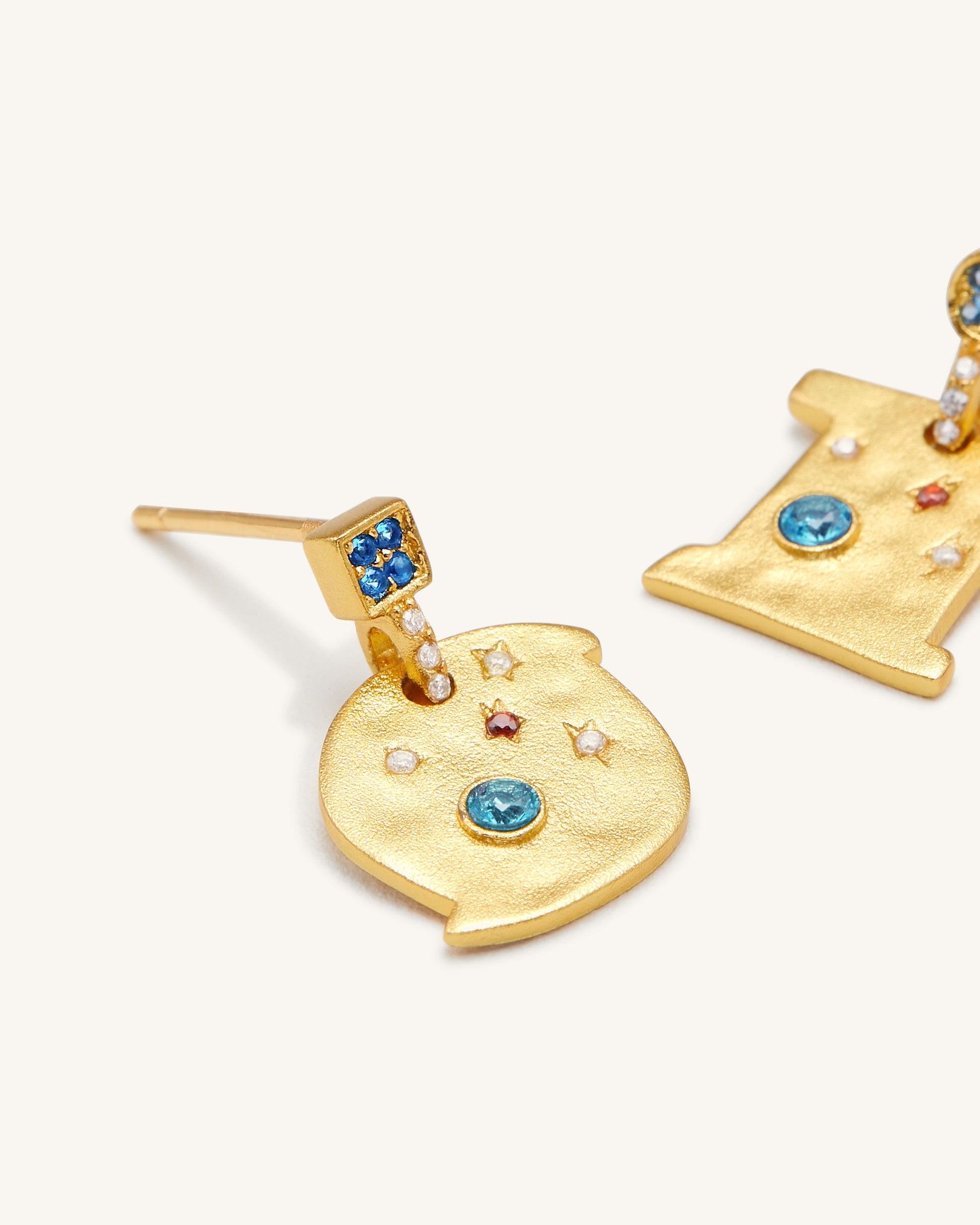 Kosmos Ohrringe - 18 Karat vergoldetes & Multicolor Zirkon