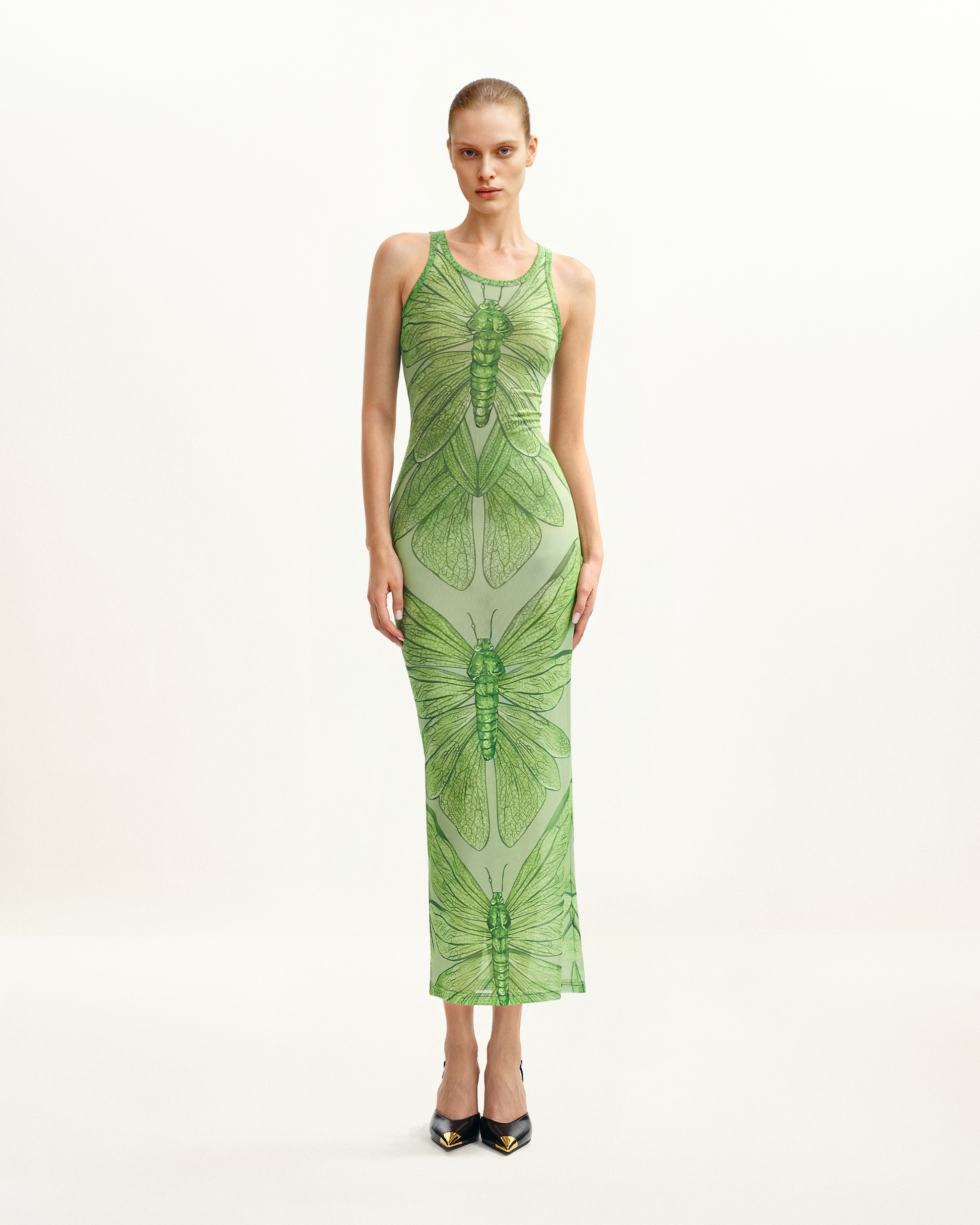 Dragonfly Axis Tank Mesh Kleid – Grün