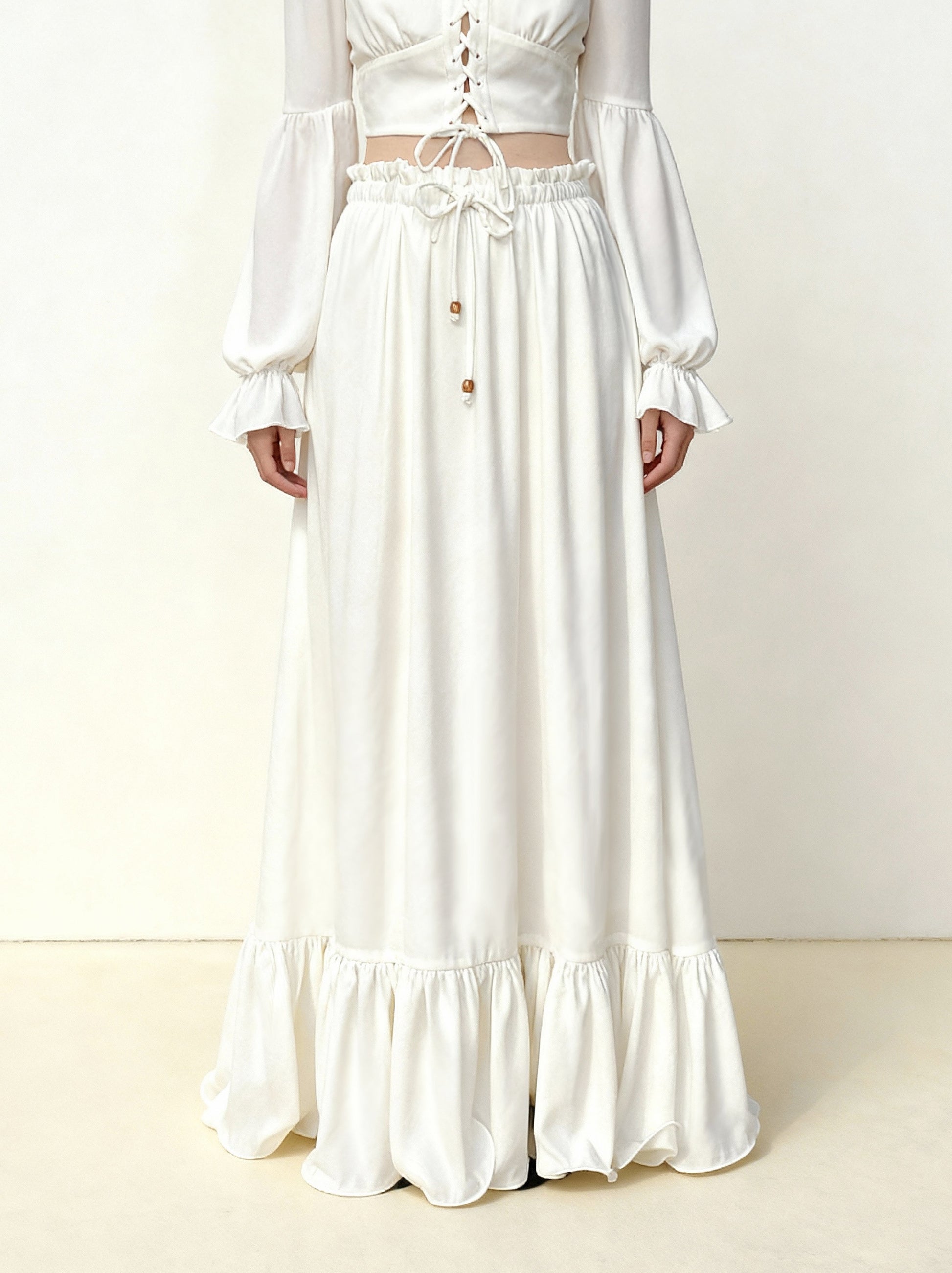 Chiffon-Maxirock mit Tunnelzug - Weiß