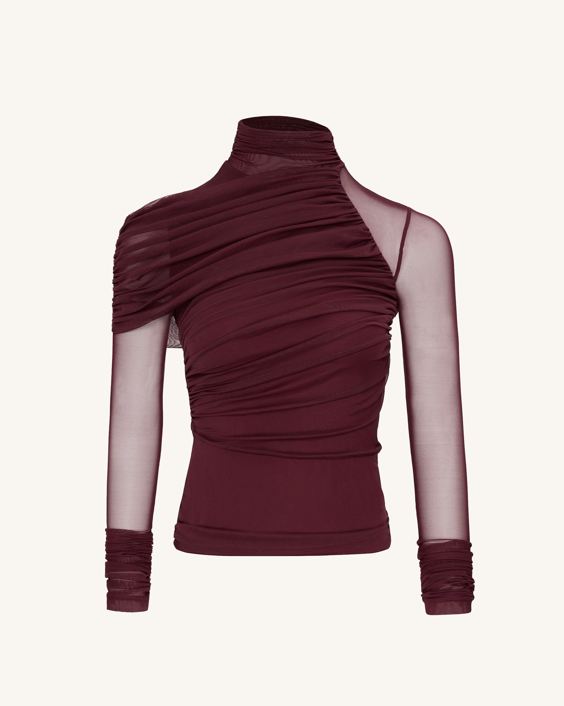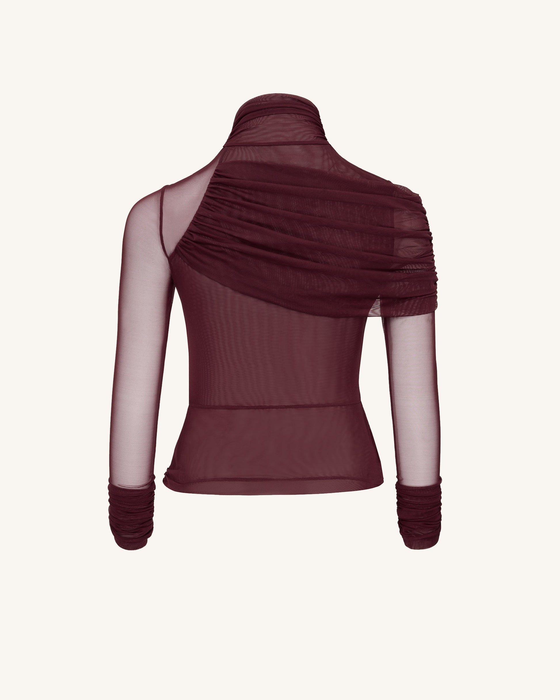 Ella Durchsichtiges Rüschen-Turtleneck-Top - Burgunderrot