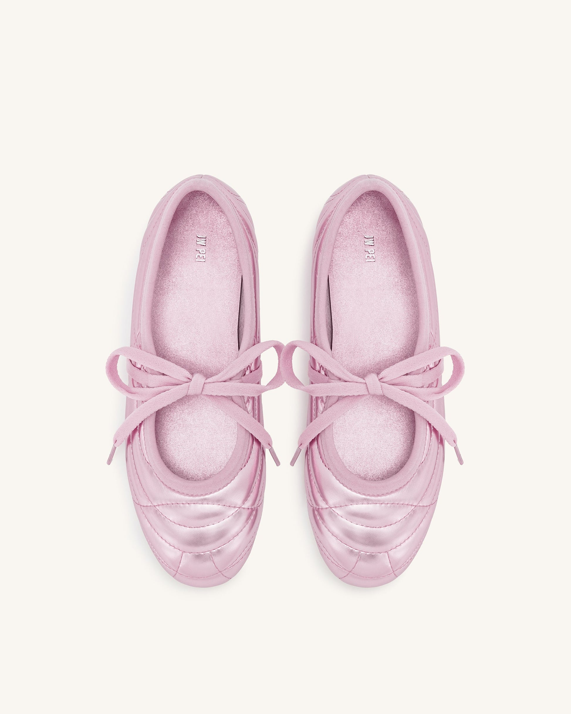 Erika Topstitching Lace-Up Ballerinas - Rosa