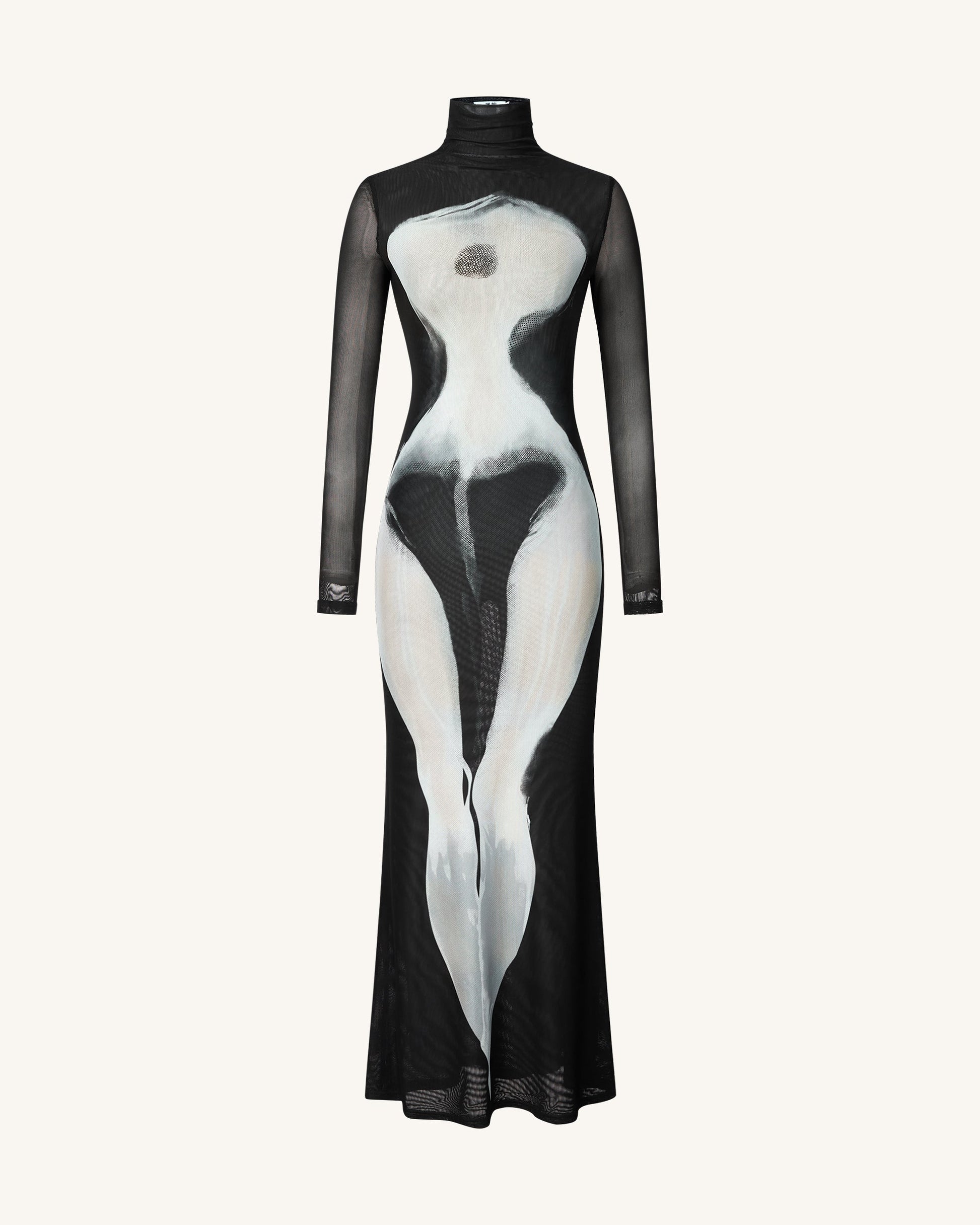 Eva Body-Print-Meshkleid - Schwarz und Weiß