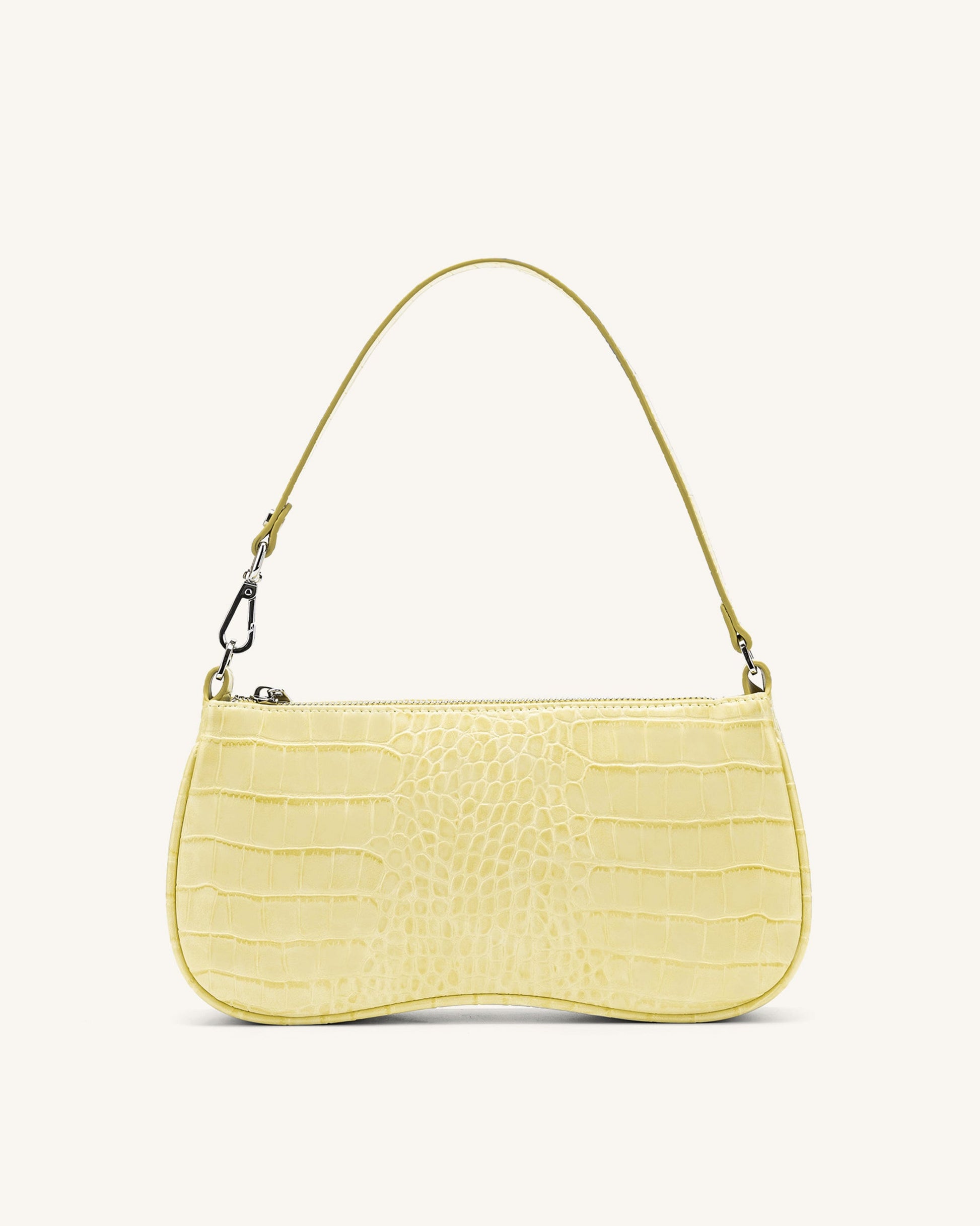 Eva Schultertasche - Krokodilprägung in Hellgelb