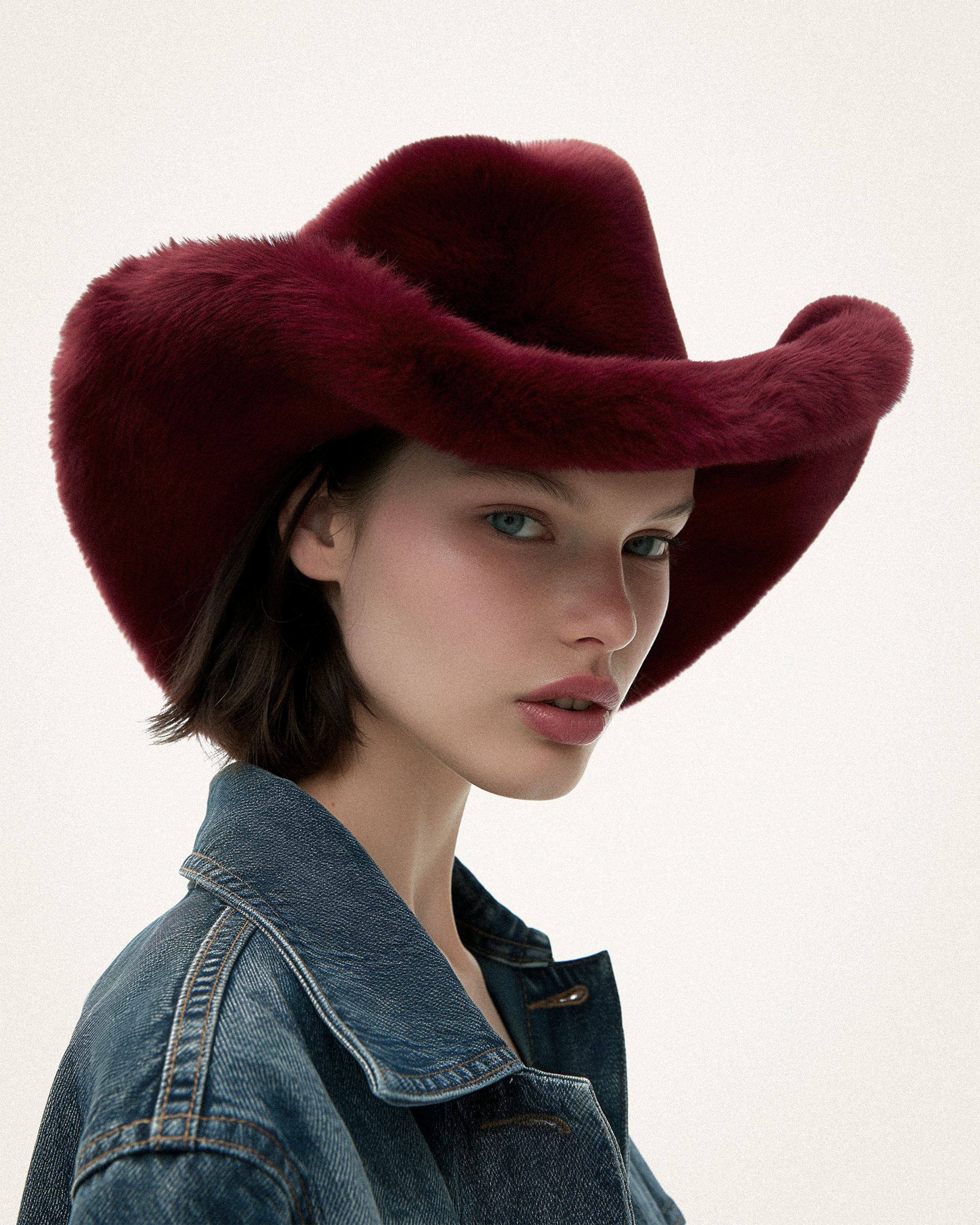 Elora Cowboyhut aus Kunstpelz - Burgunderrot