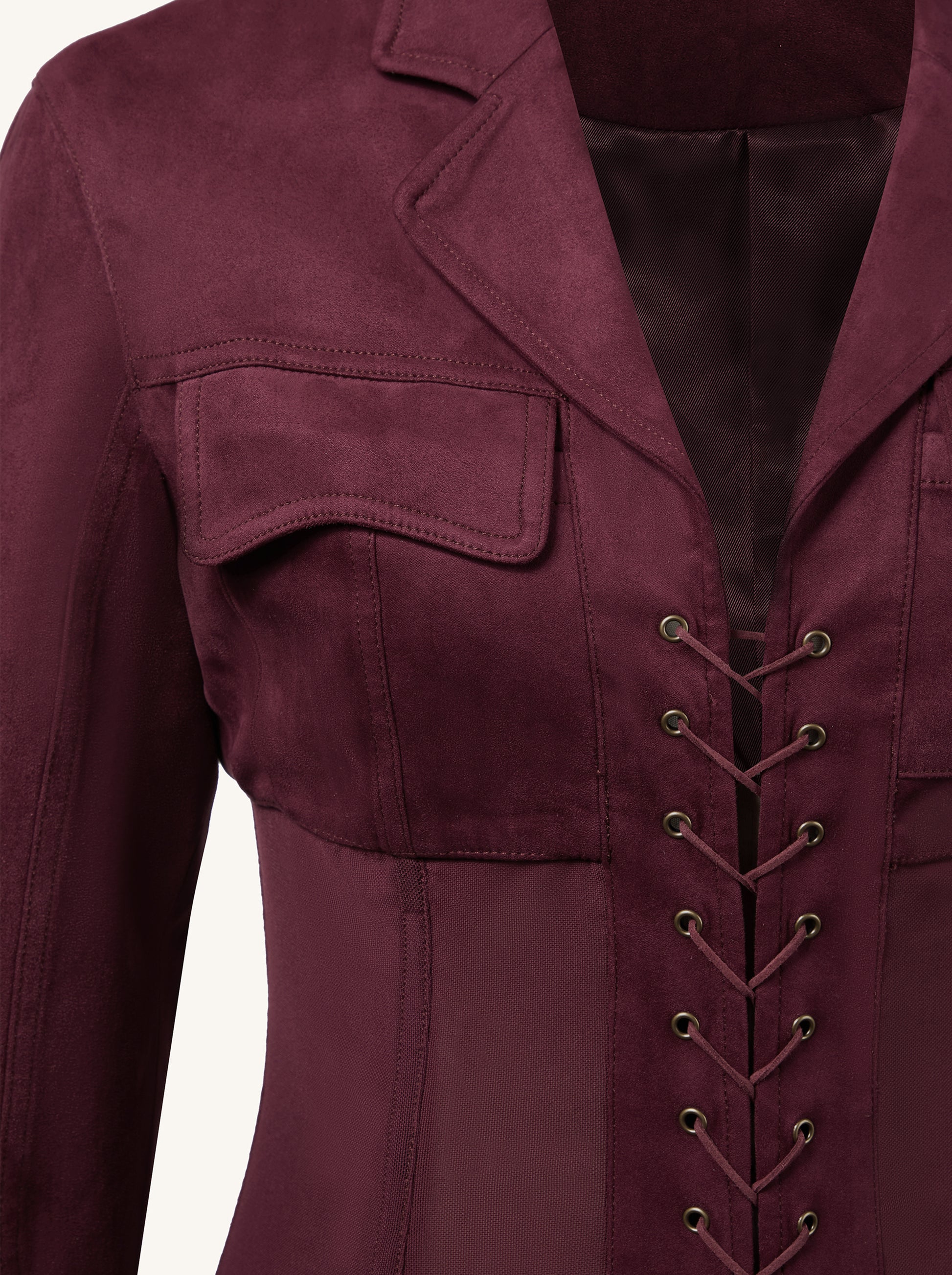 Mini-Kleid mit Korsett-Jacke aus Kunstwildleder - Dunkelrot