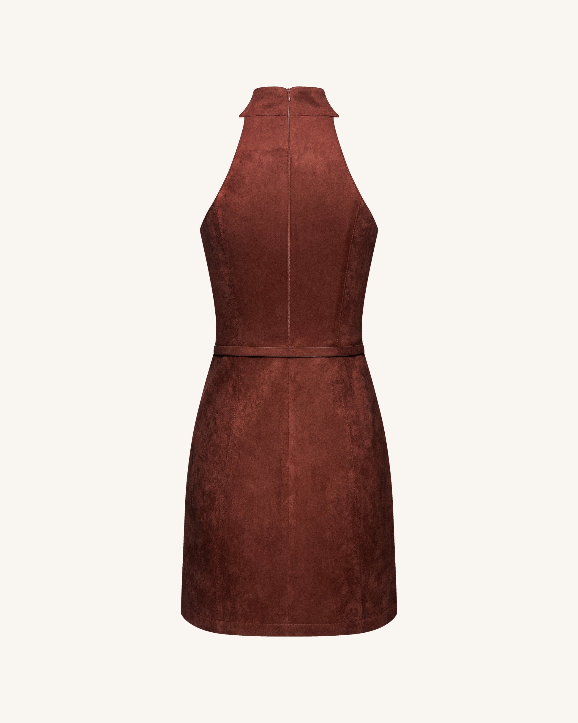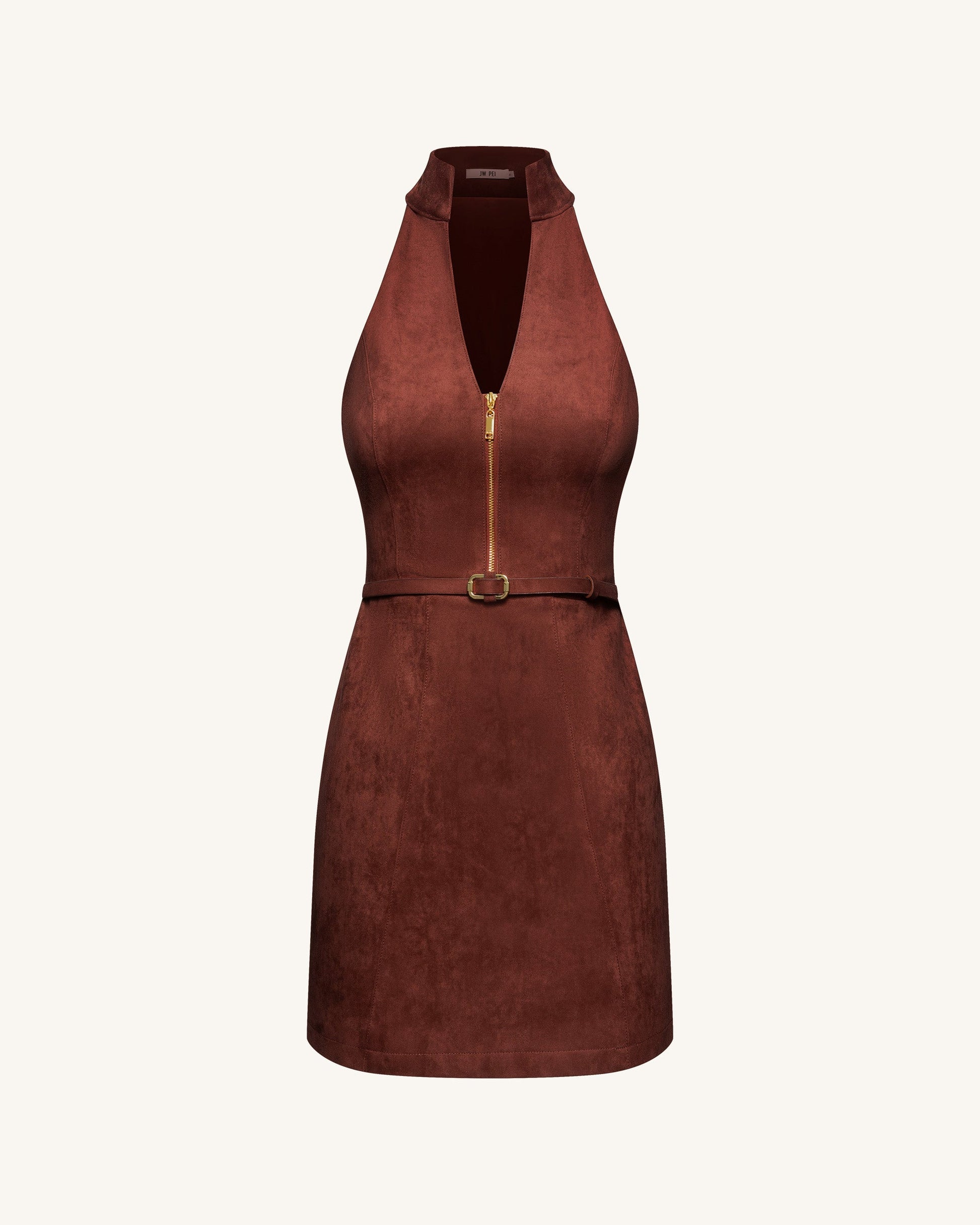 Minikleid mit Reißverschluss vorn und Neckholder aus Wildlederimitat – Burgunder