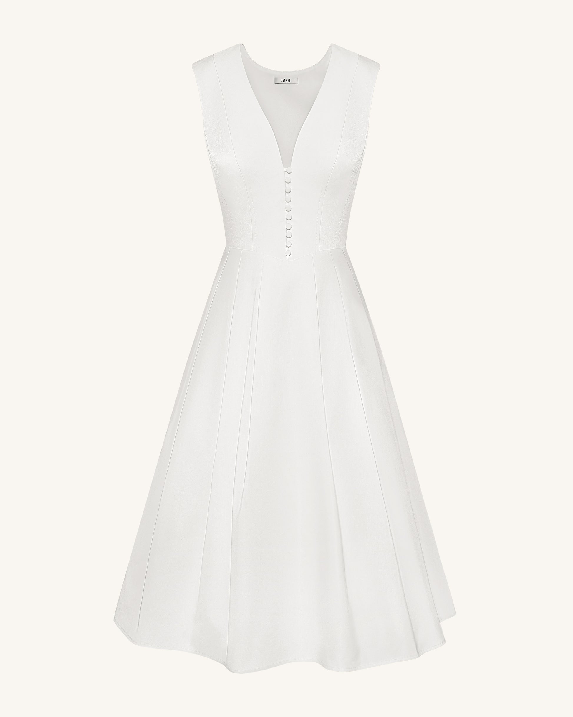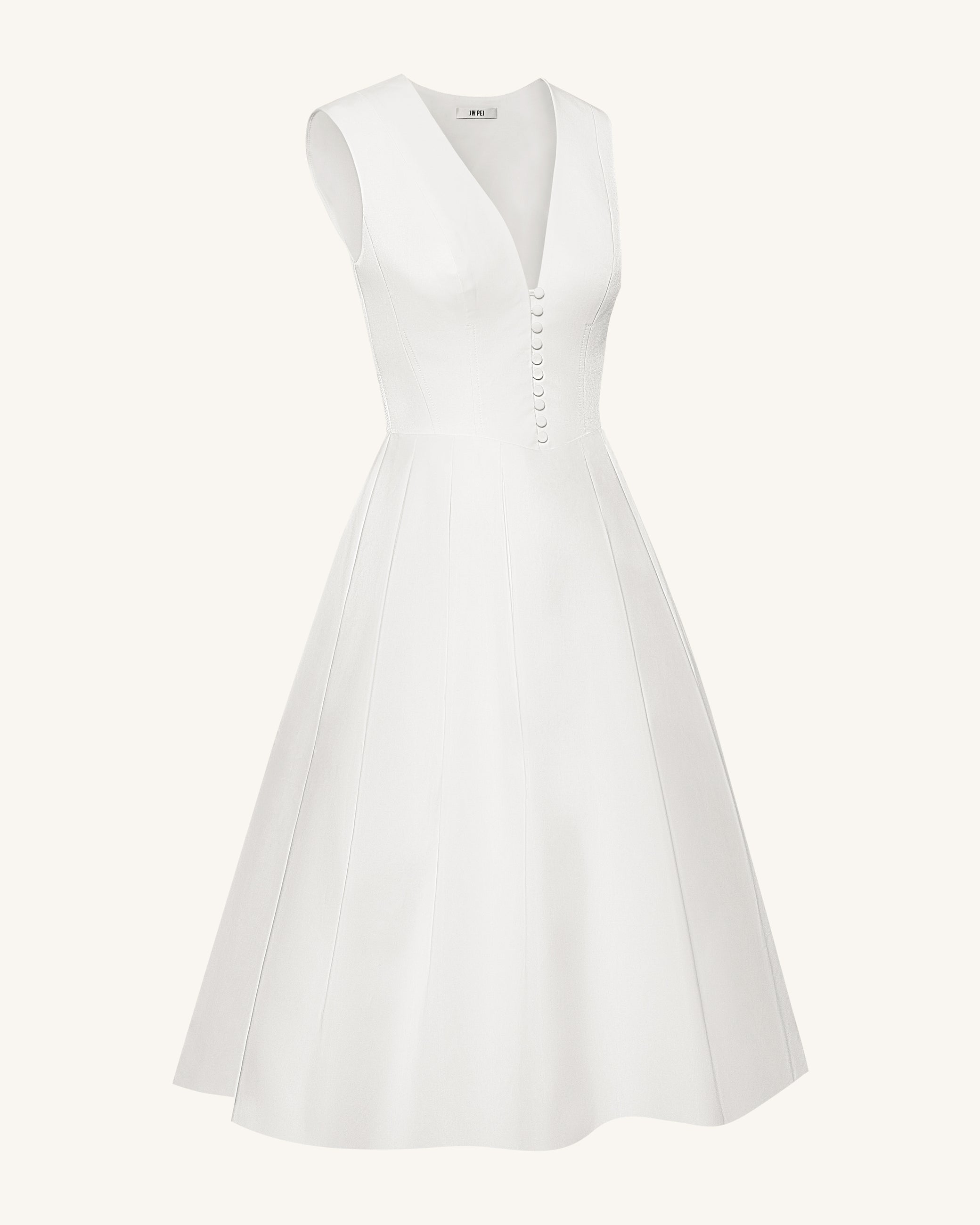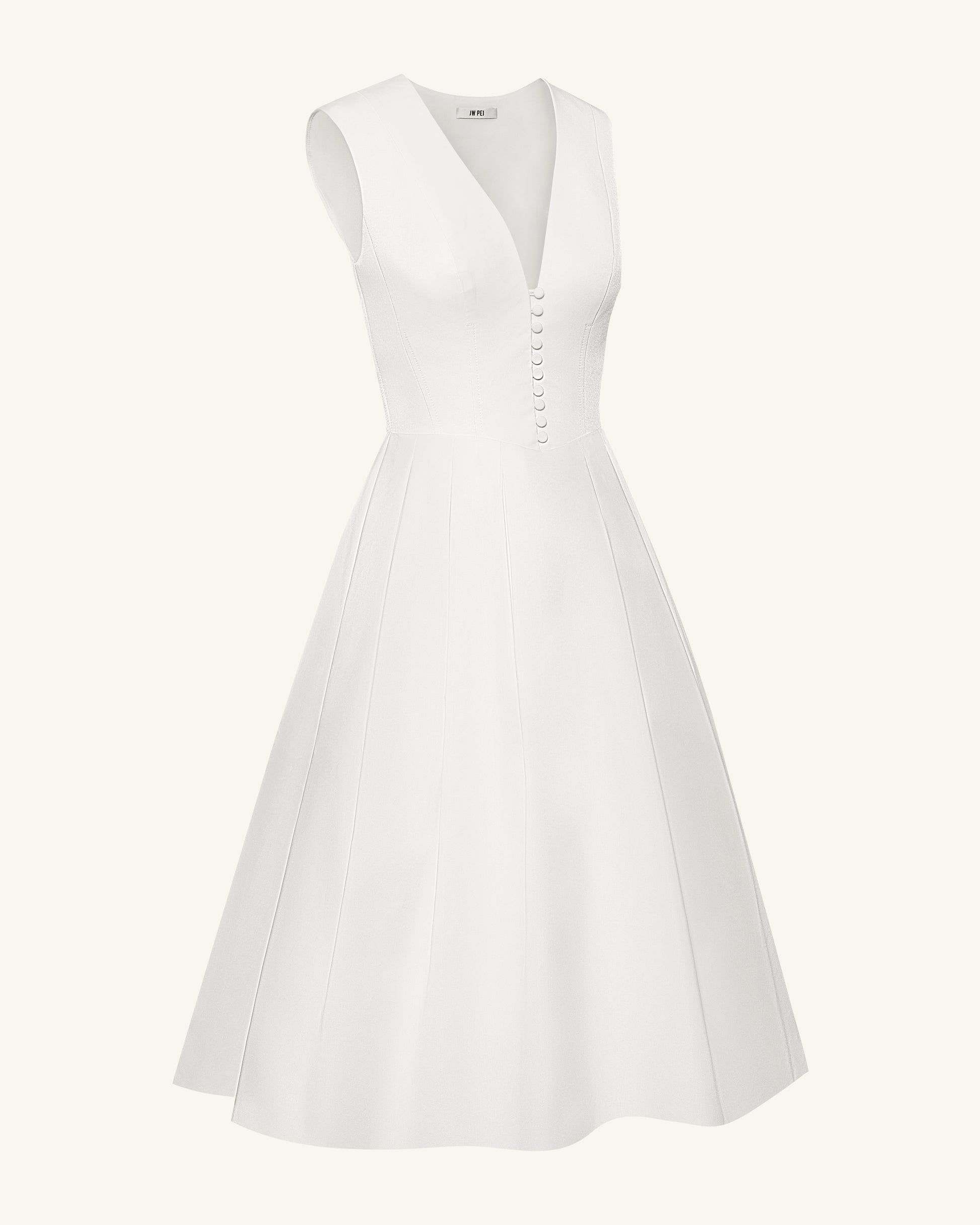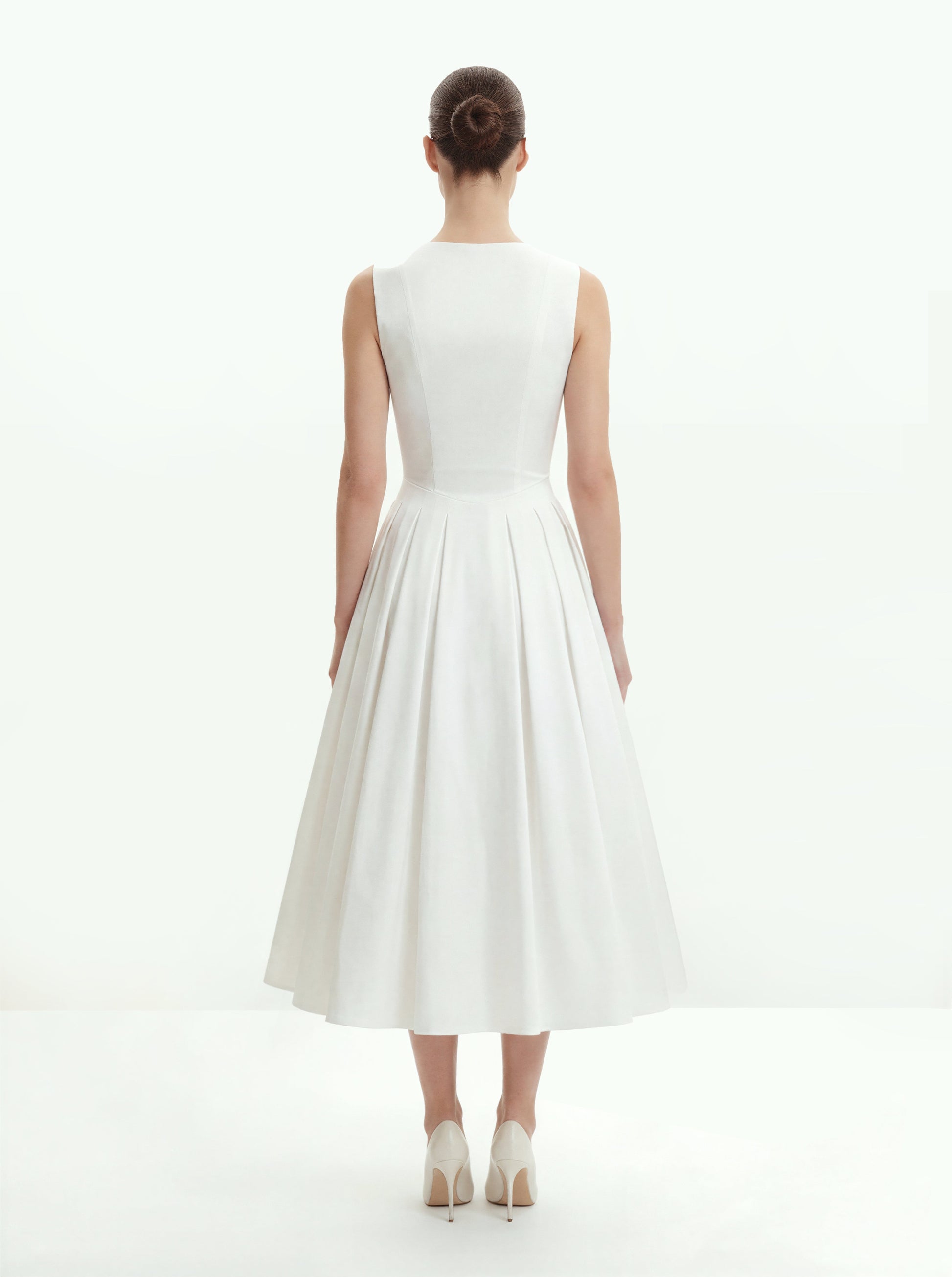 Plissiertes Midikleid mit V-Ausschnitt vorne - Weiß