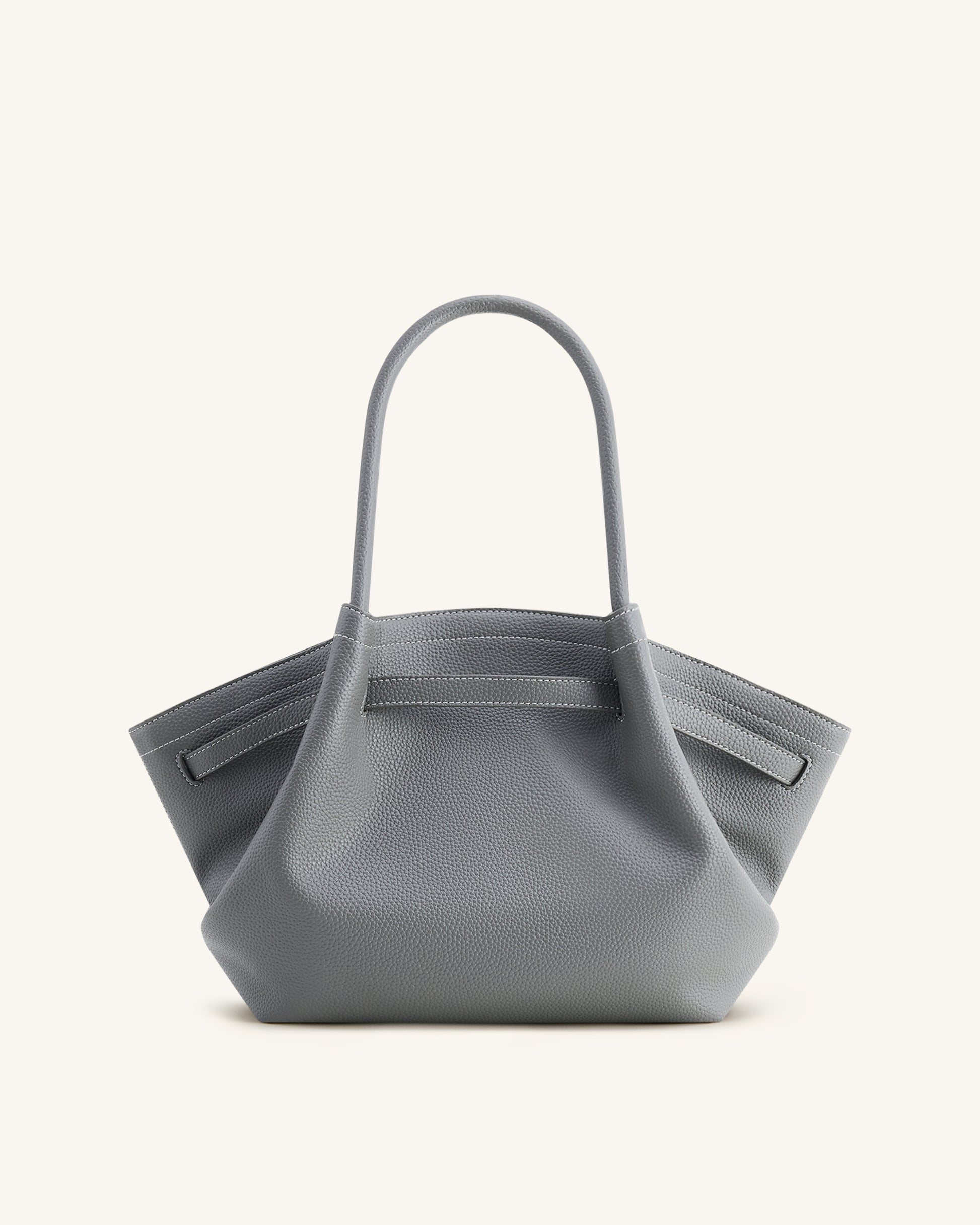 Diese strukturierte Tragetasche in Schiefergrau besticht durch eine skulpturale Trapezform und eine dezent genarbte Oberfläche für einen raffinierten, modernen Look. Ausgestattet mit langen Tragegriffen und einem Magnetverschluss bietet sie ausreichend Platz für die täglichen Essentials und verleiht jedem Outfit eine zurückhaltende Eleganz.