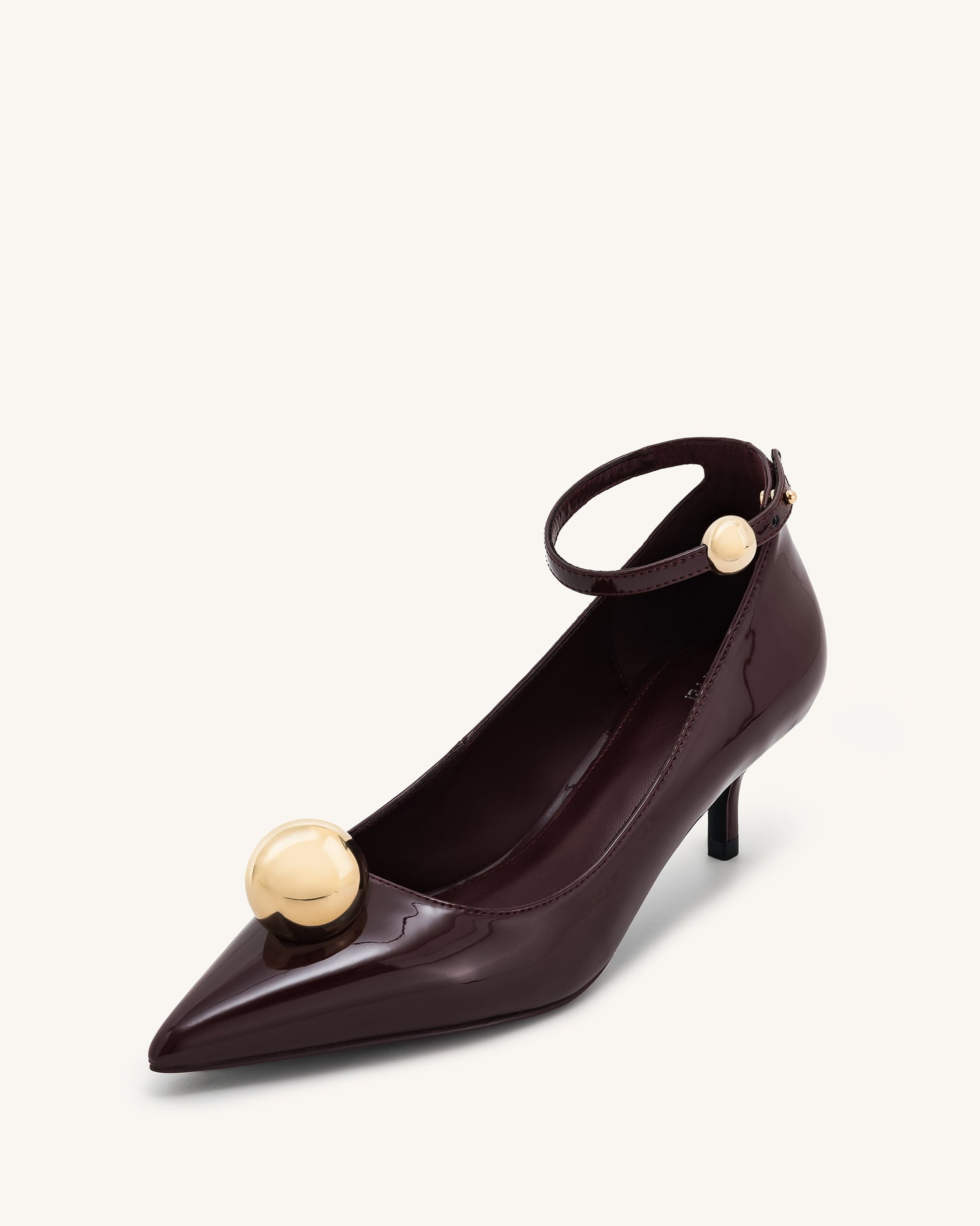 Jewel Buckle Kitten Heels Pumps - Weinrot