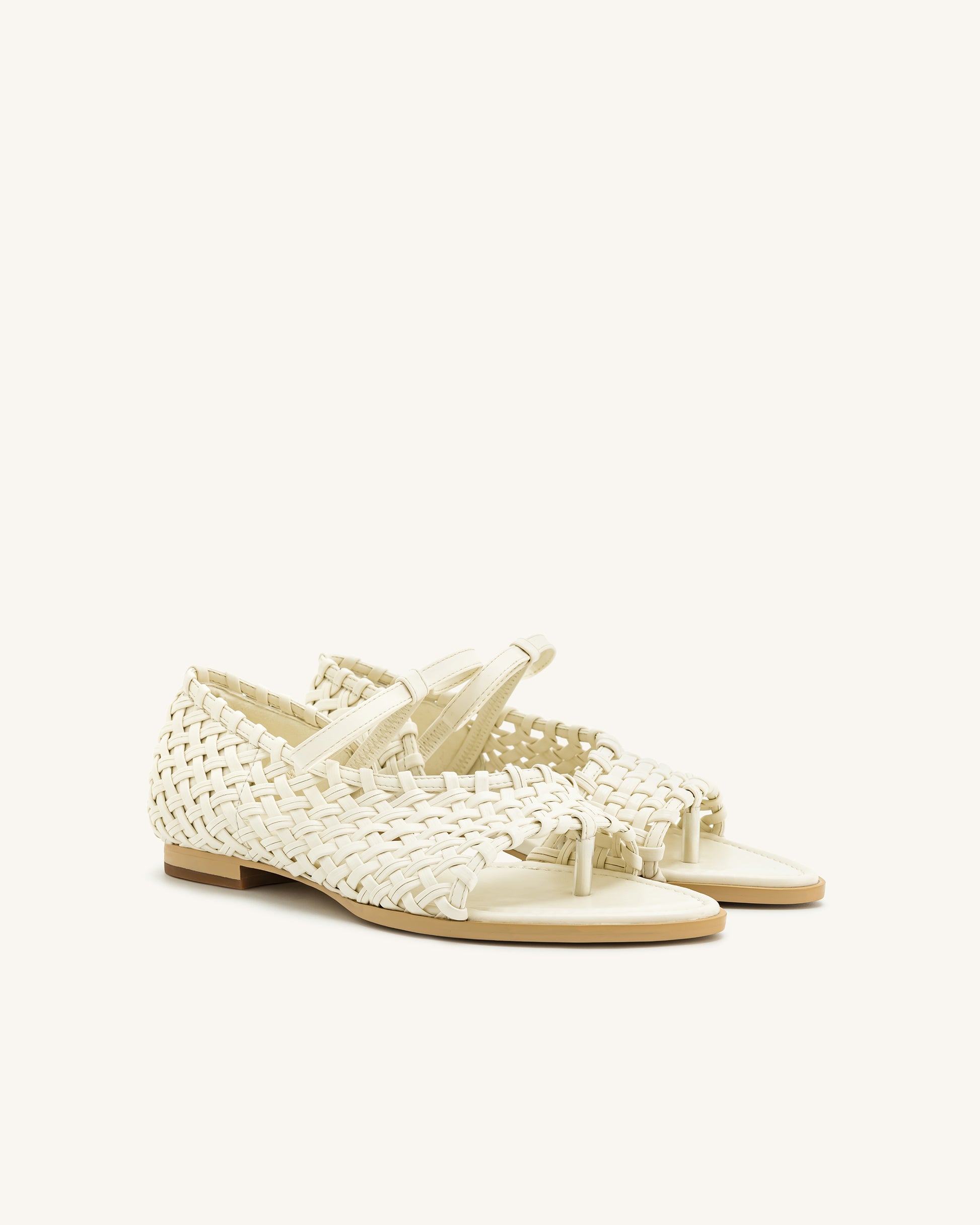 Jocelyn Flip-Flops mit gewebtem Riemen - Beige