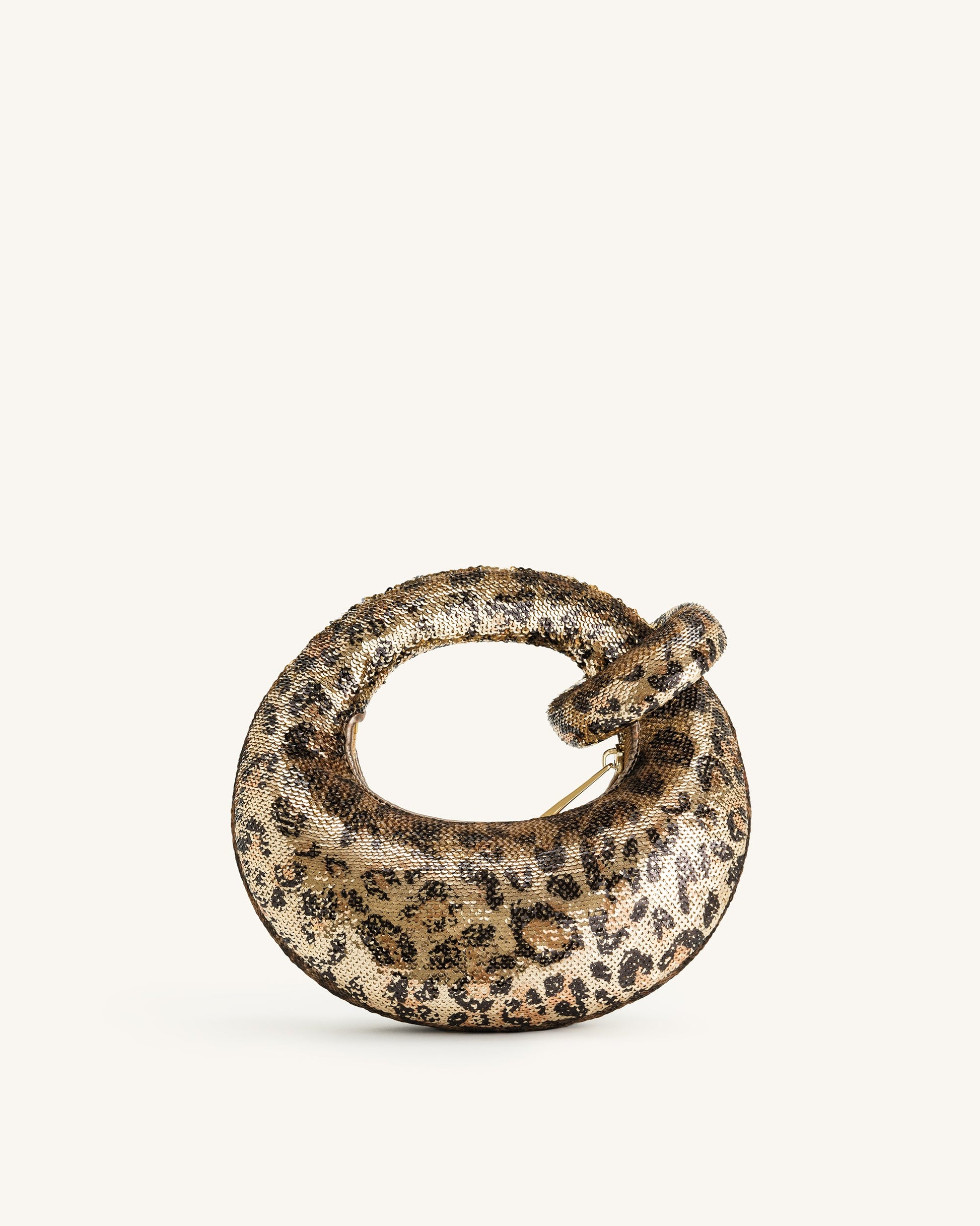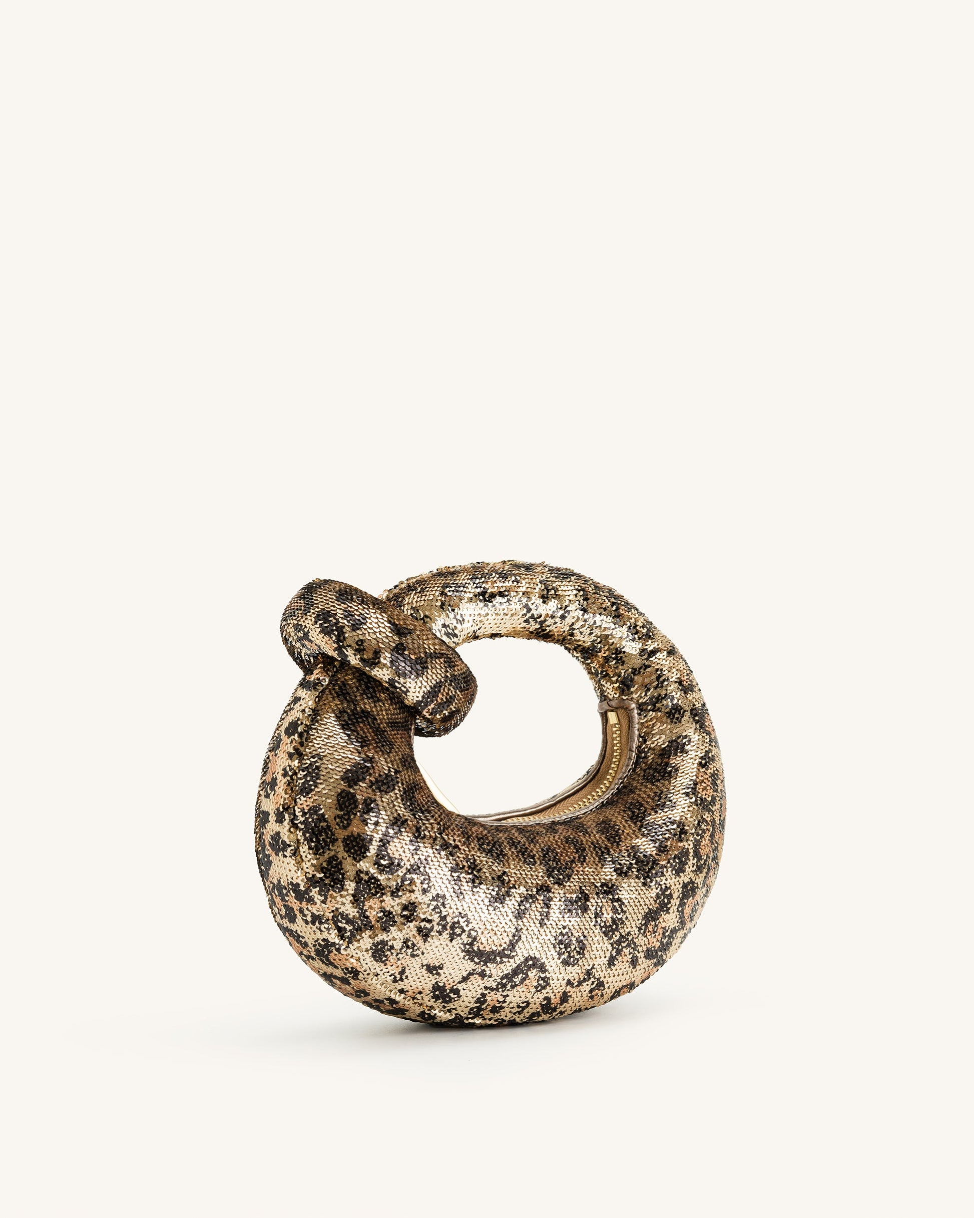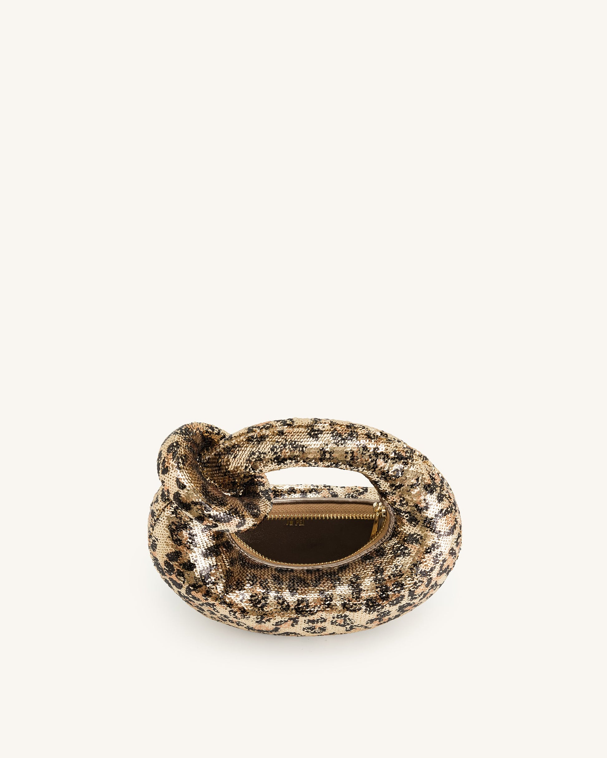 Abacus Metallic Pailletten Mini Top-Handle-Tasche - Leopardenmuster