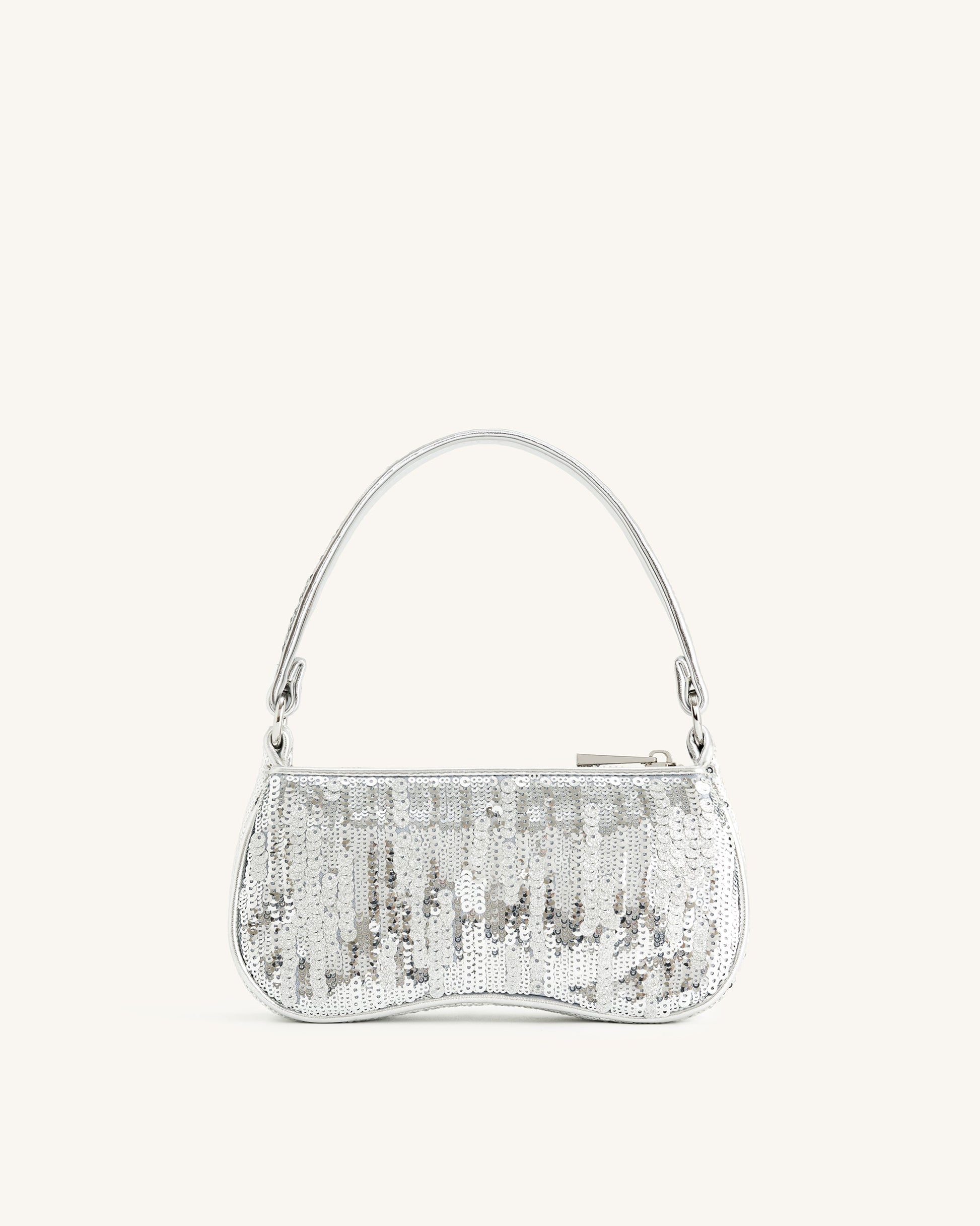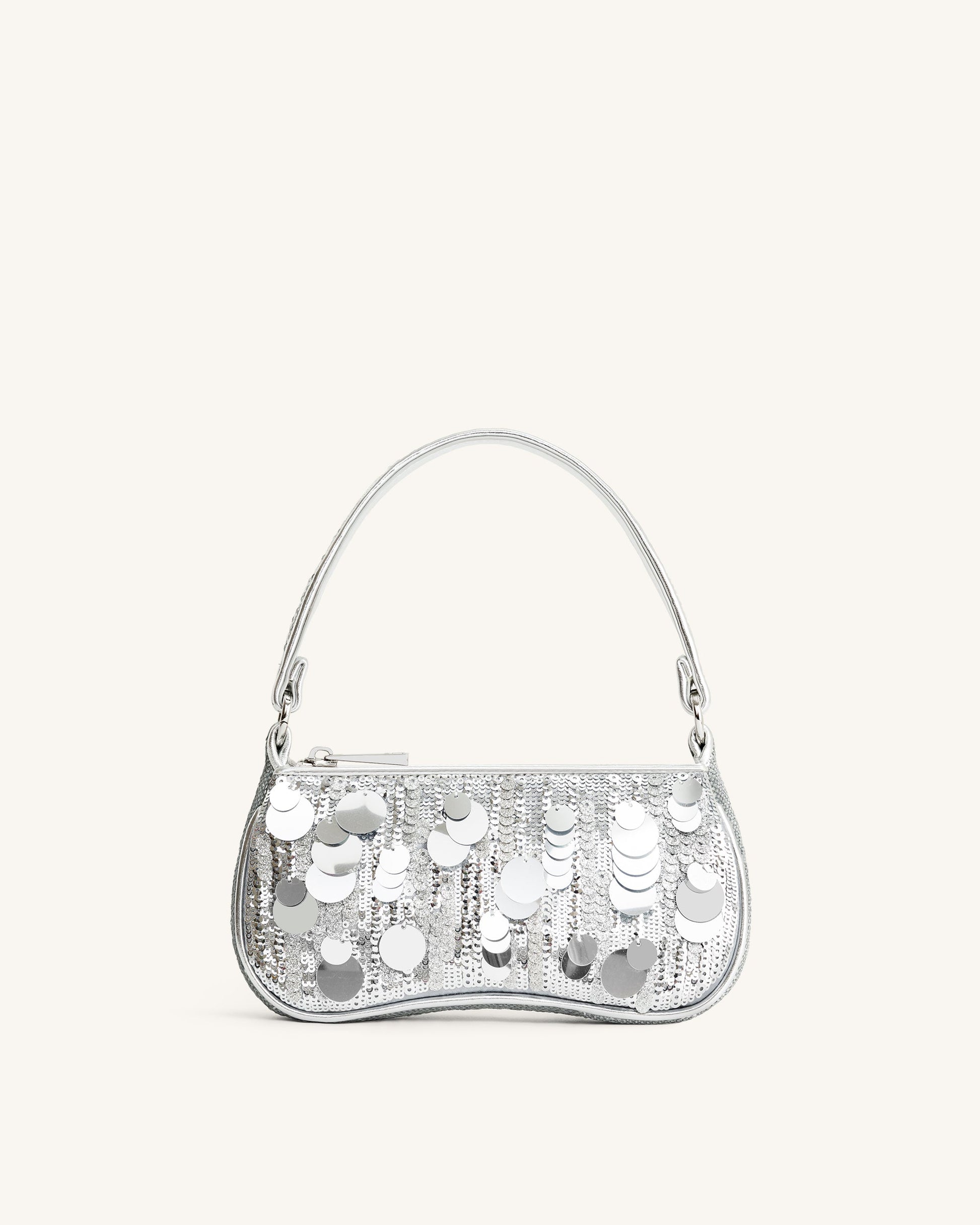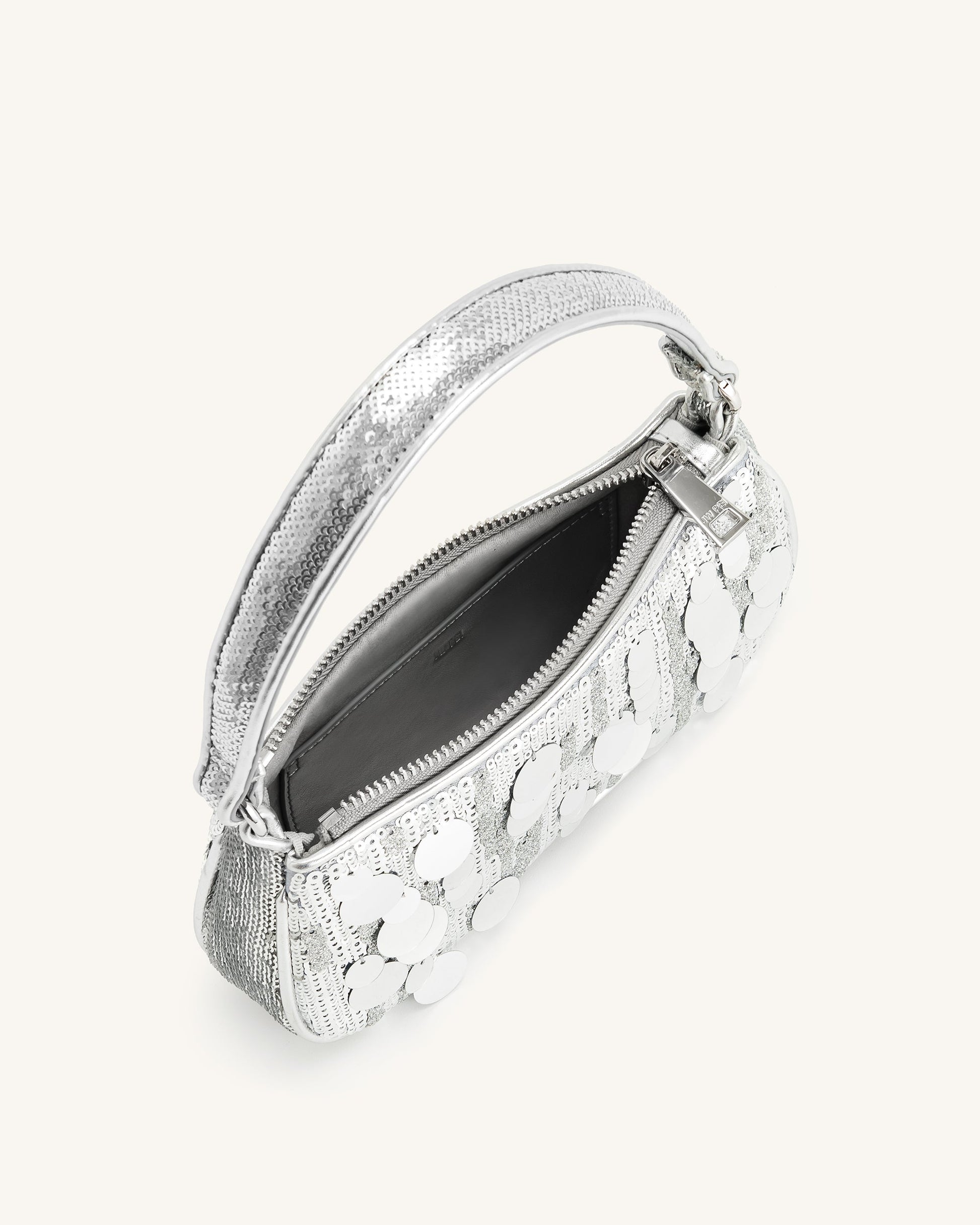 Eva Metallische Pailletten Mini-Schultertasche - Silber