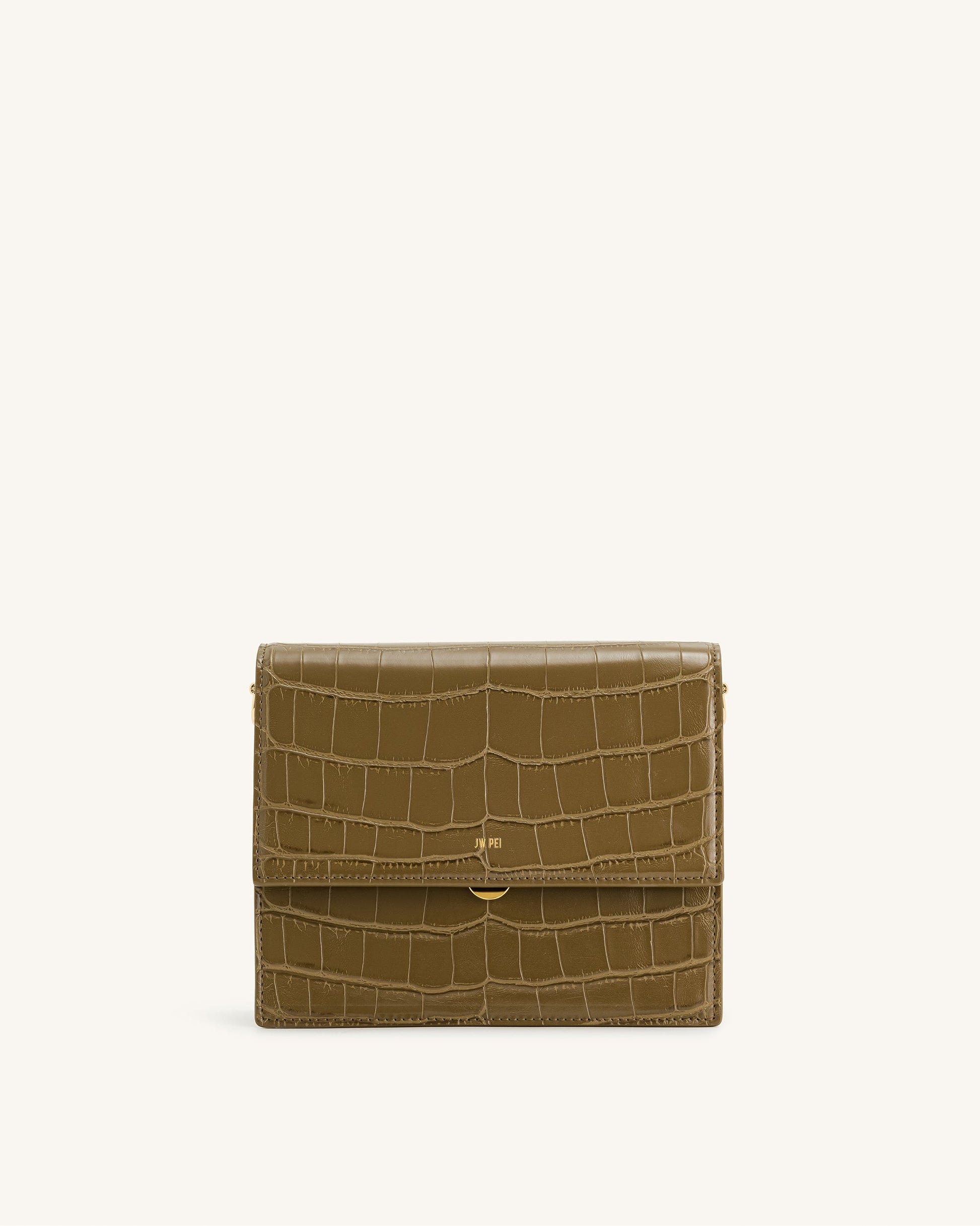 Mini Umhängetasche mit Klappenverschluss - Dunkles Olivenkrokodil