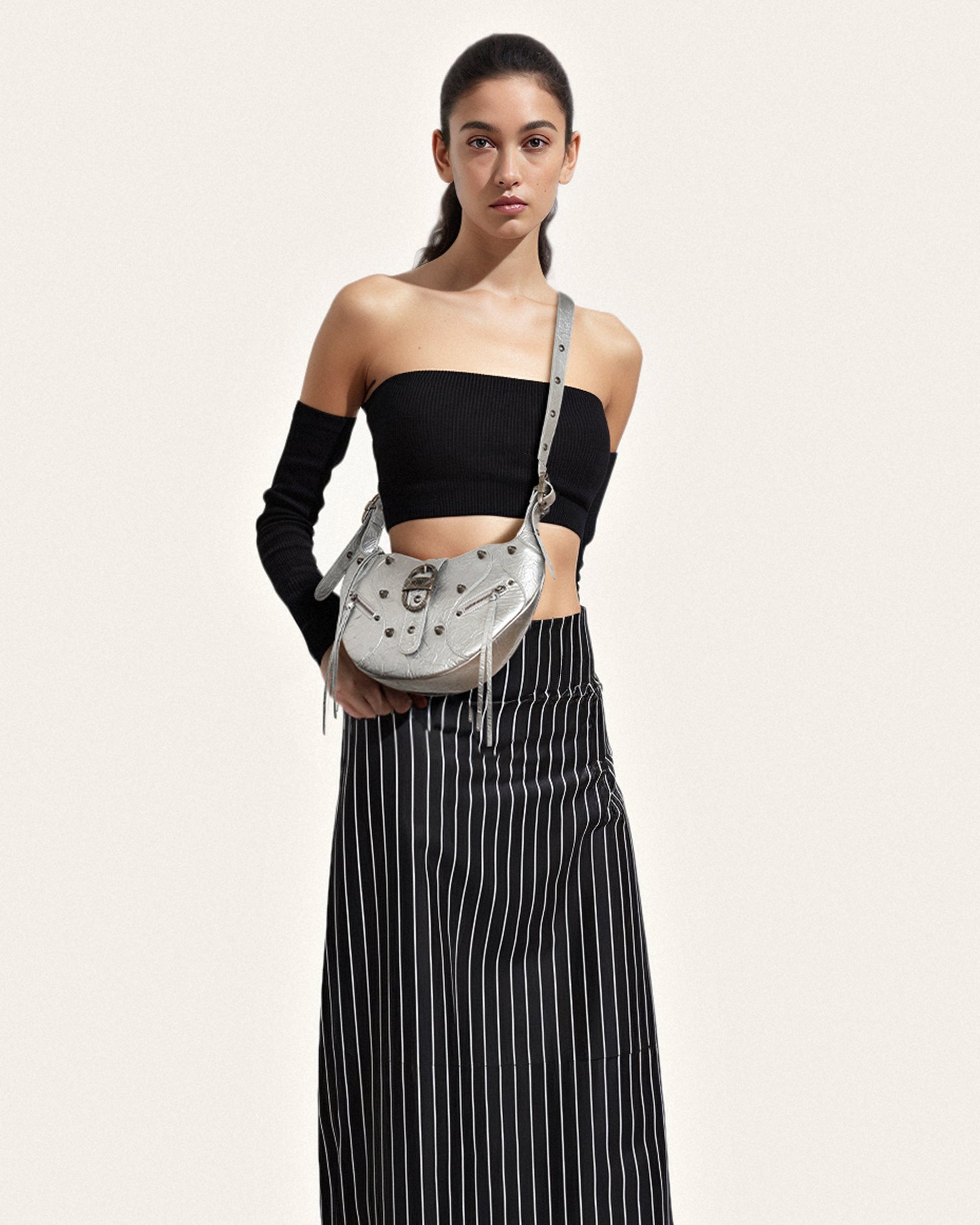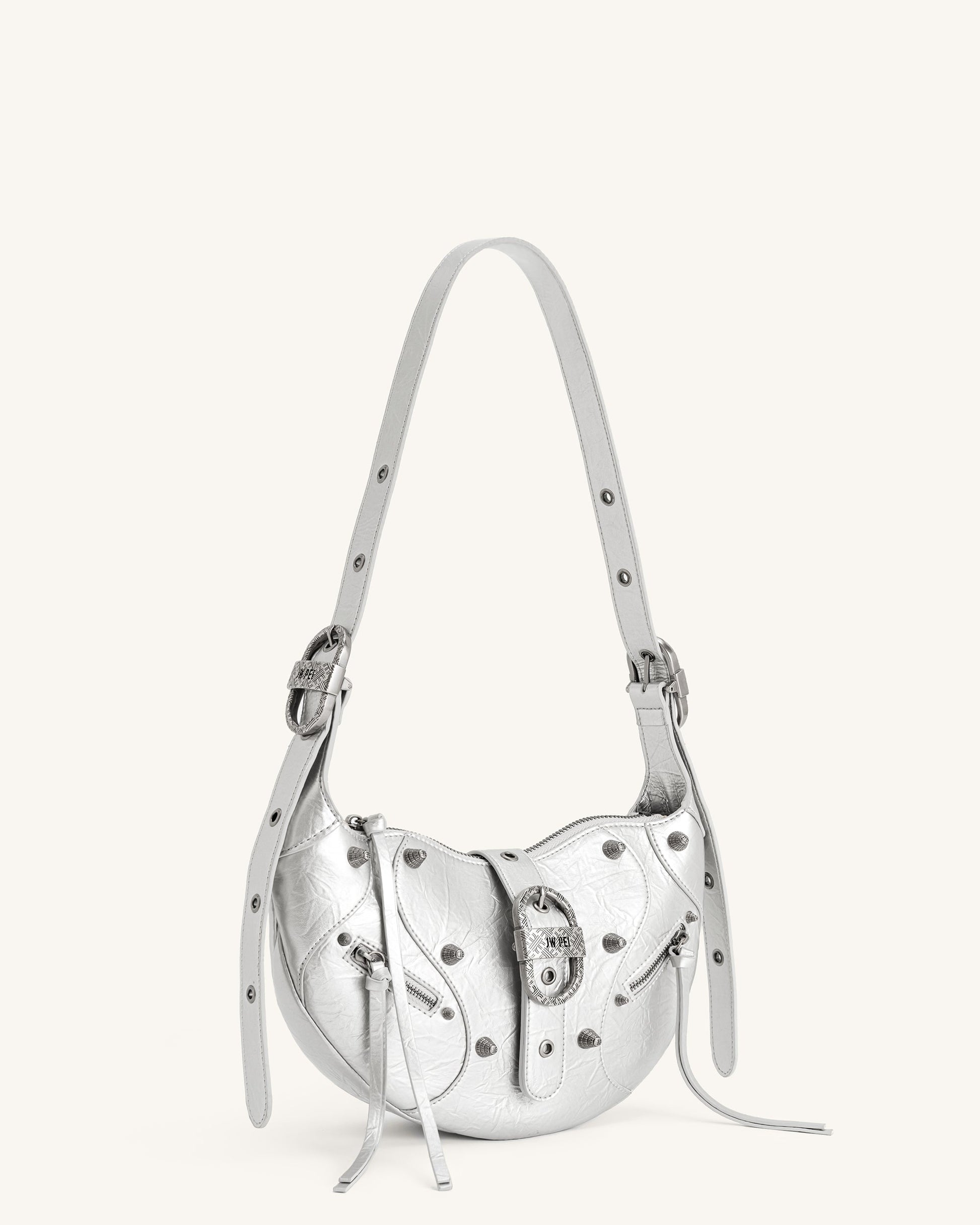 Tessa Schultertasche mit metallischer Faltenoptik - Silber