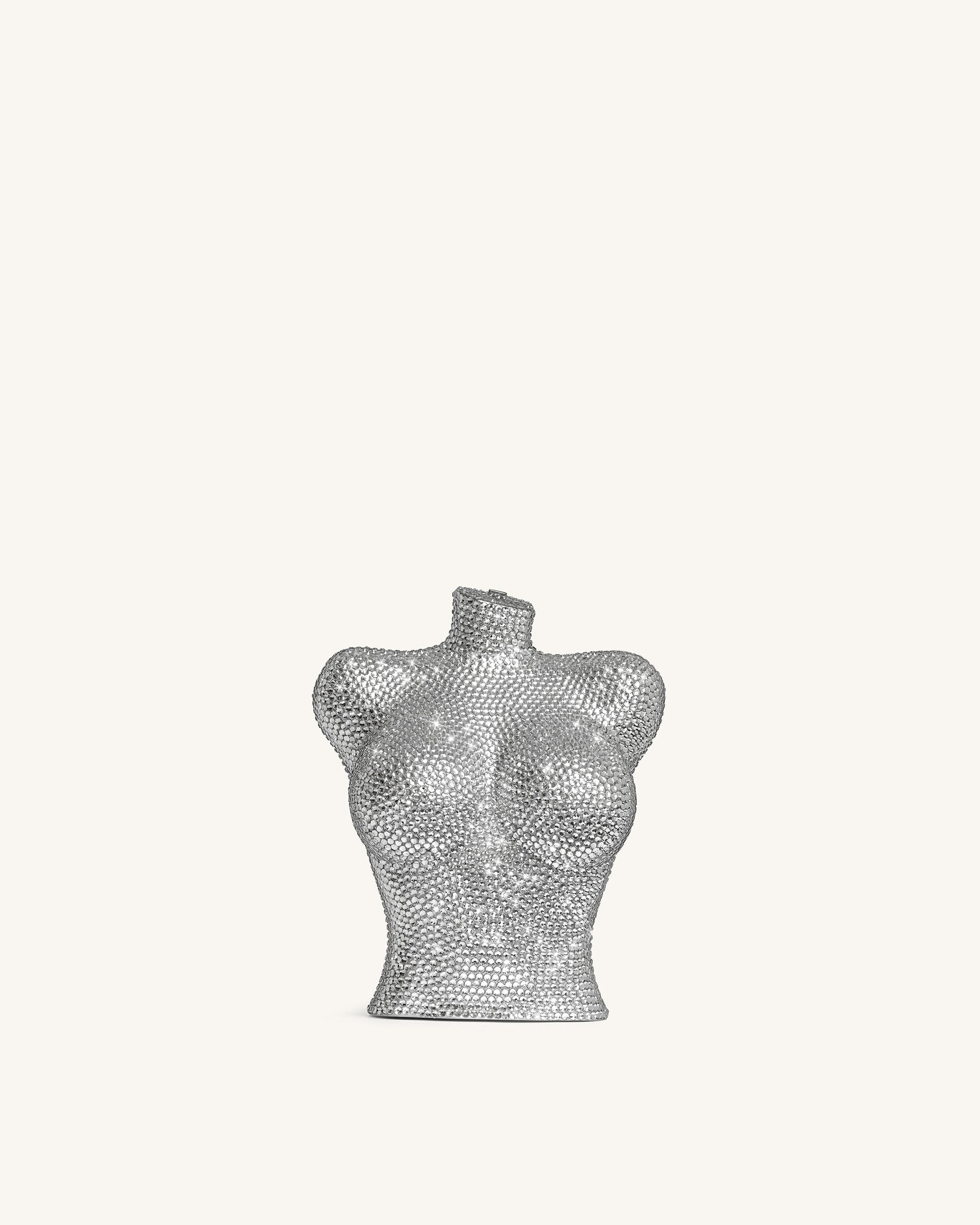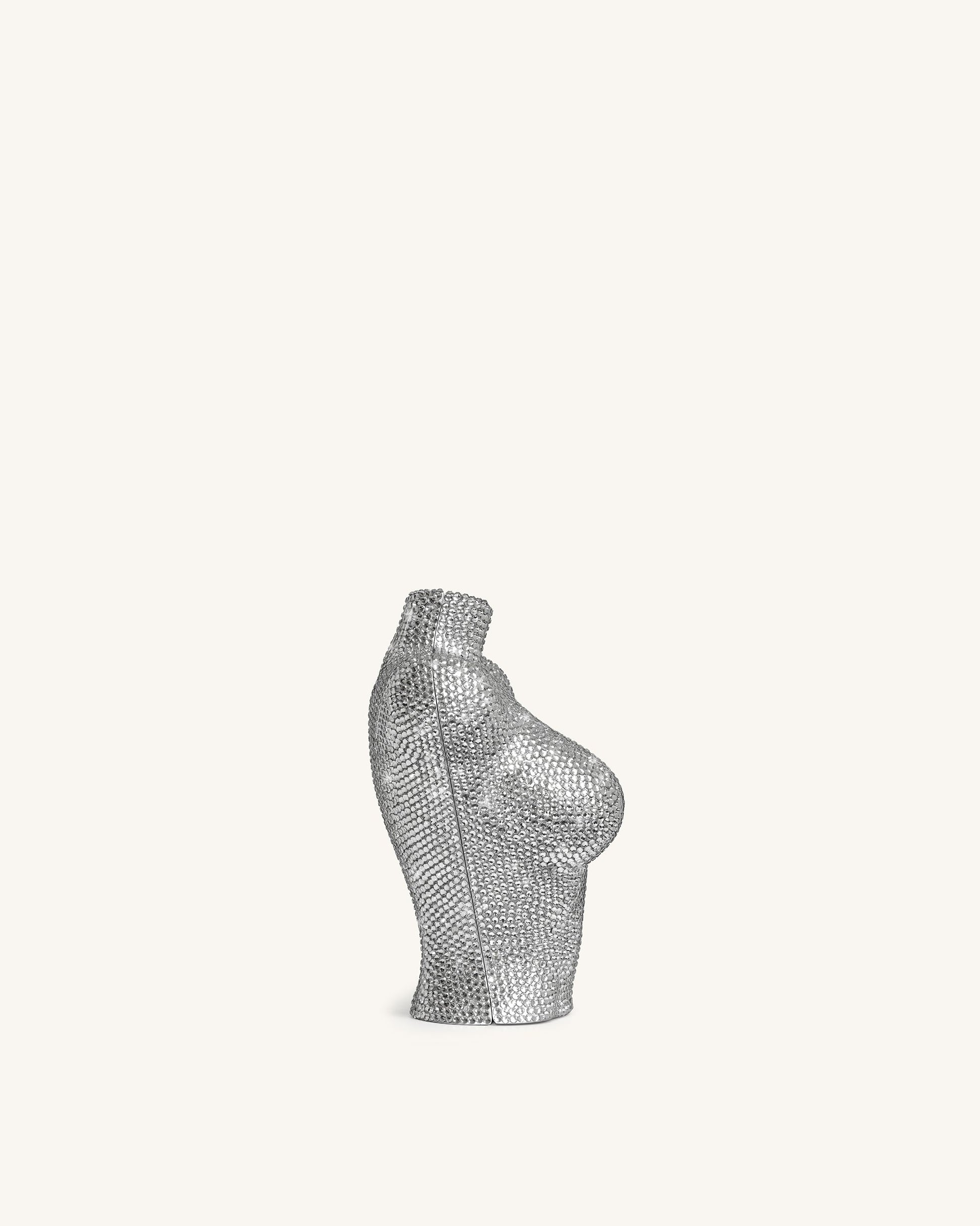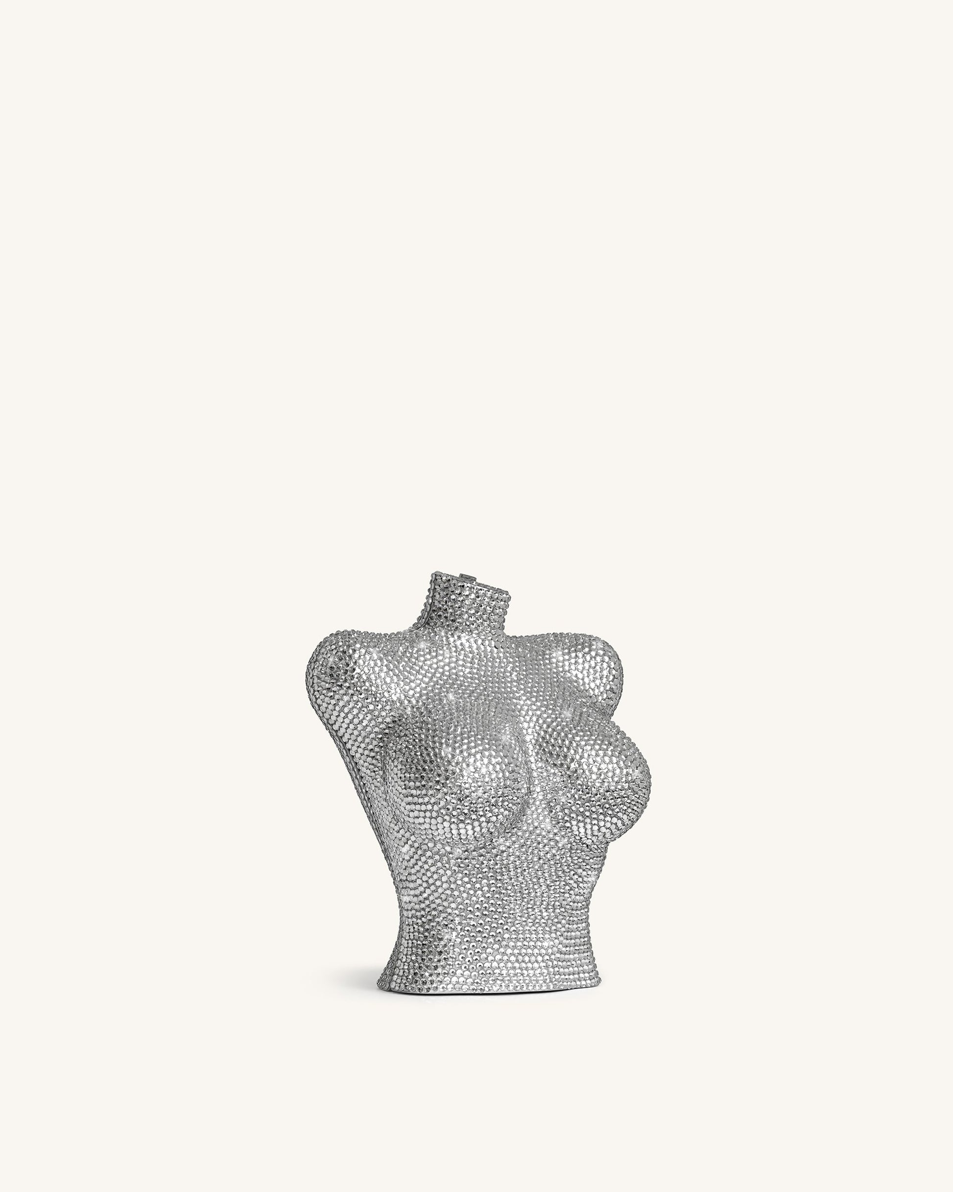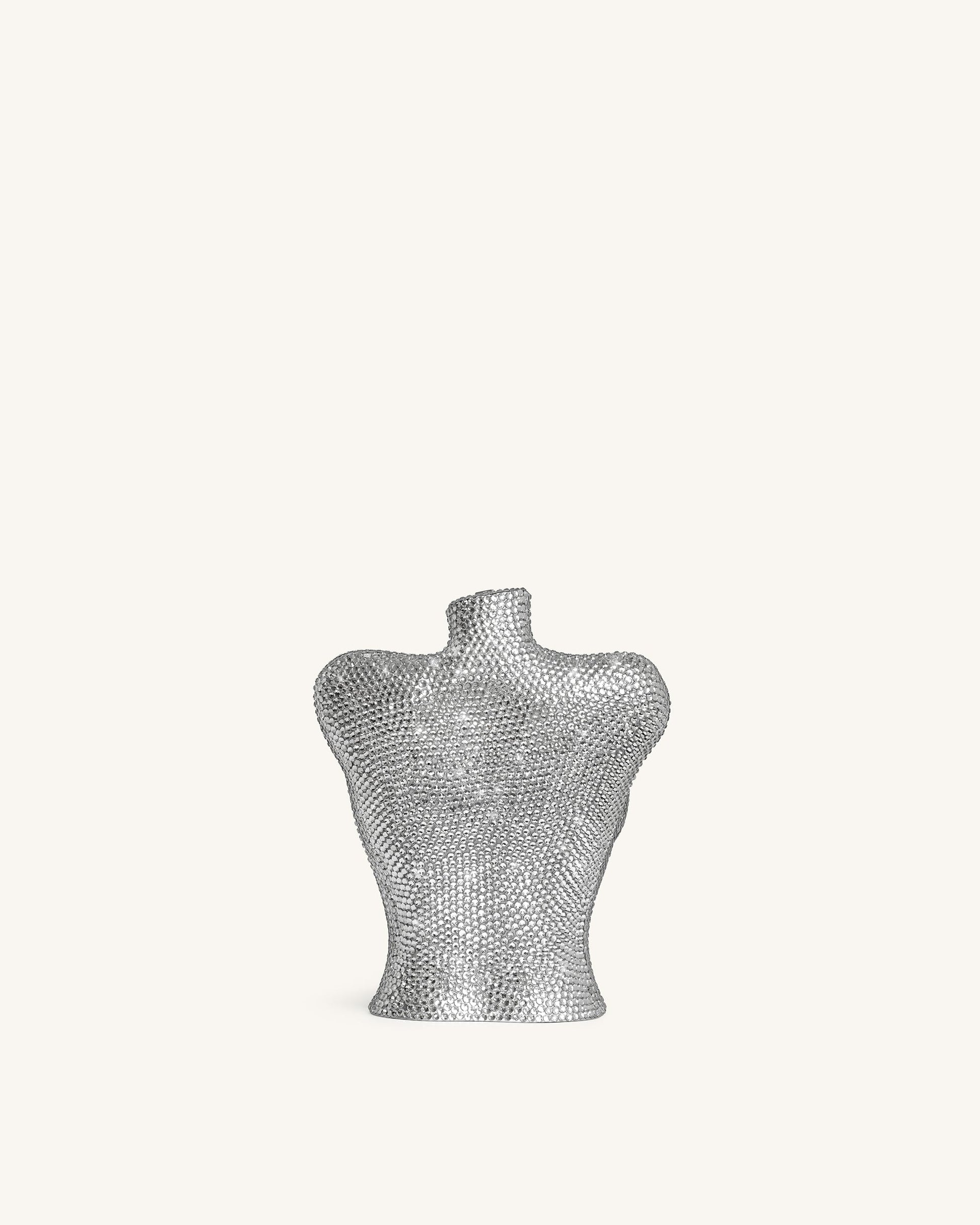 Kiara Clutch mit Kunstkristallen in Büstenform – Silber