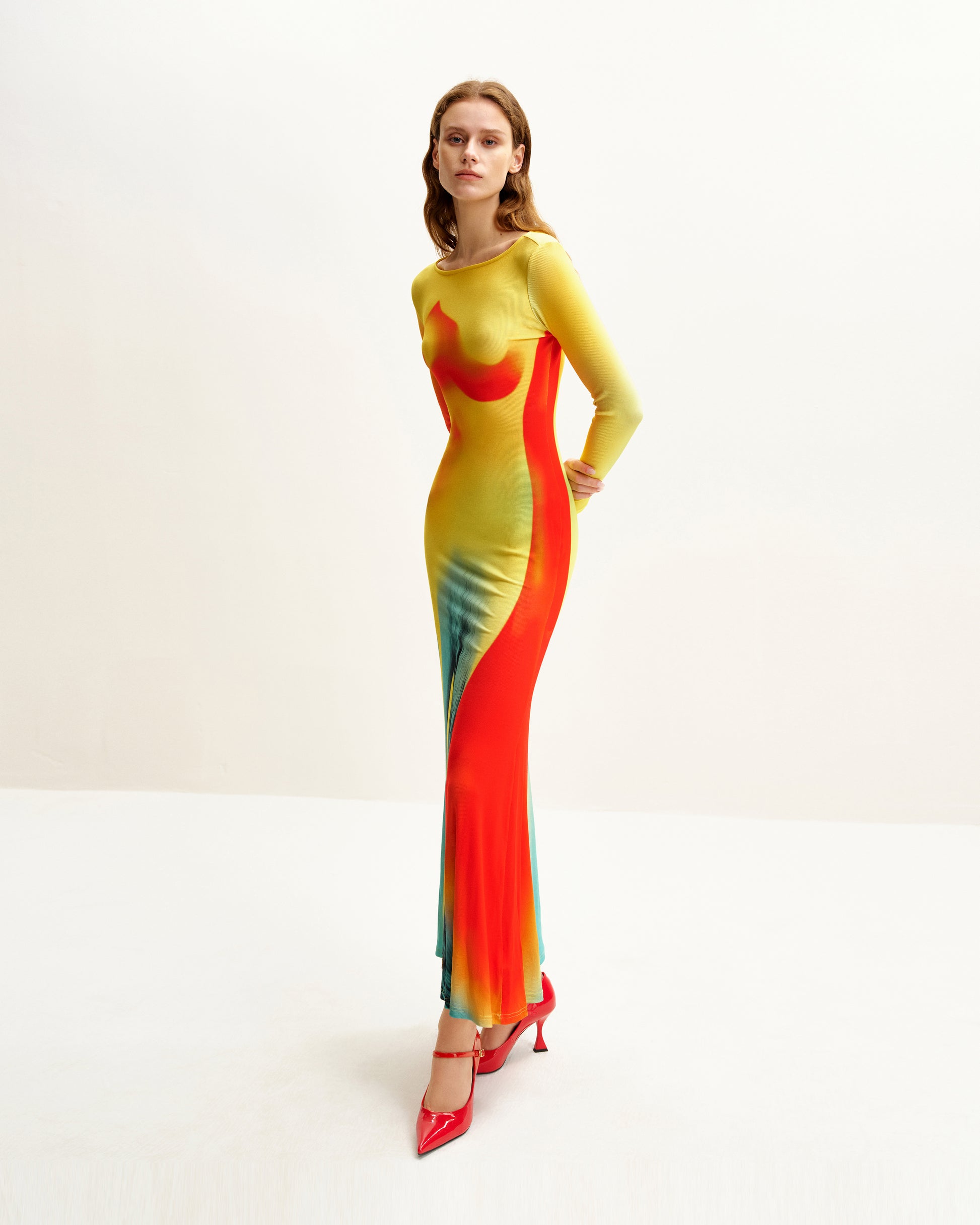 Lily Kleid mit Illusionsdruck - Mehrfarbig