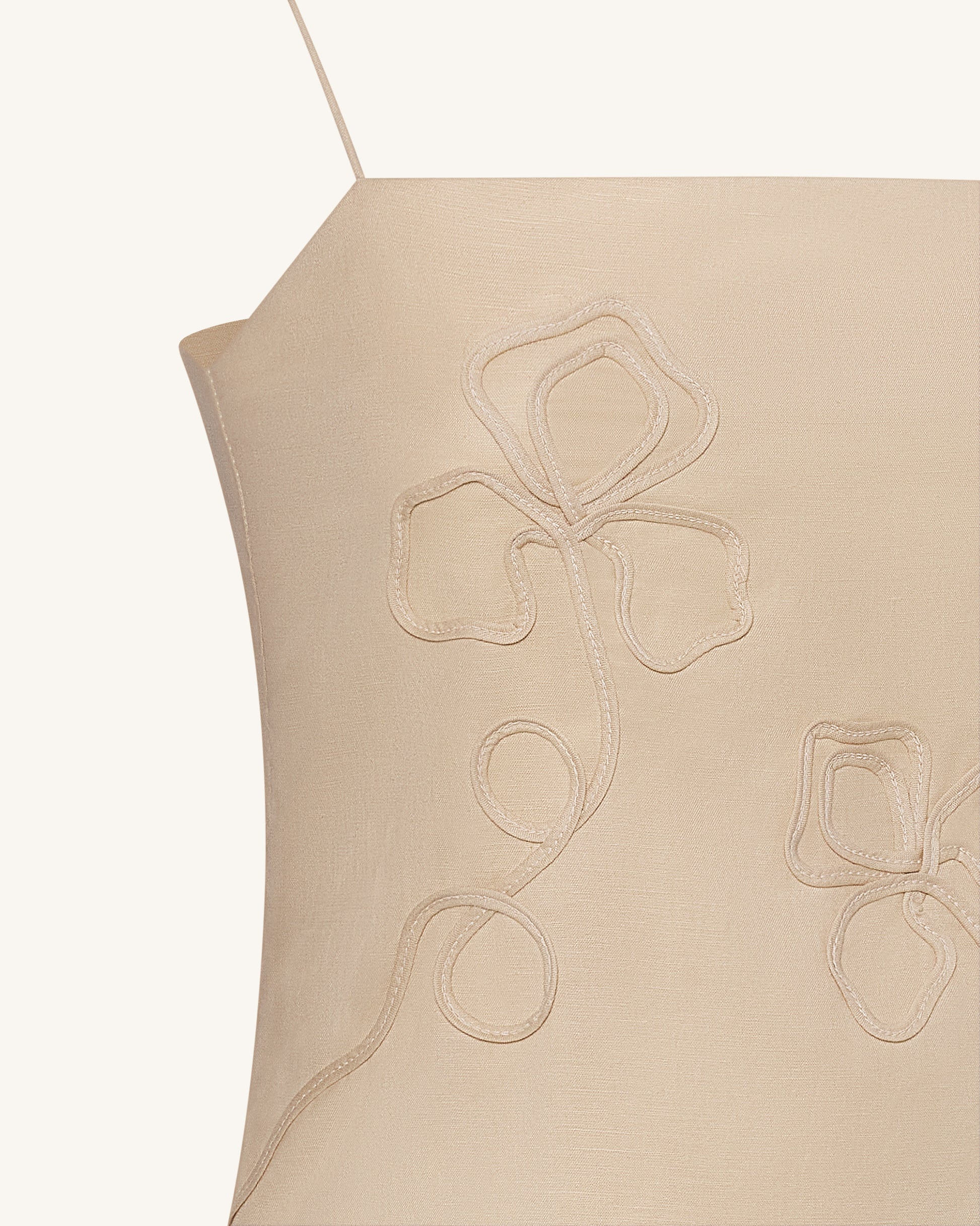 Leinen-Trägertop mit Kordelstickerei - Natur