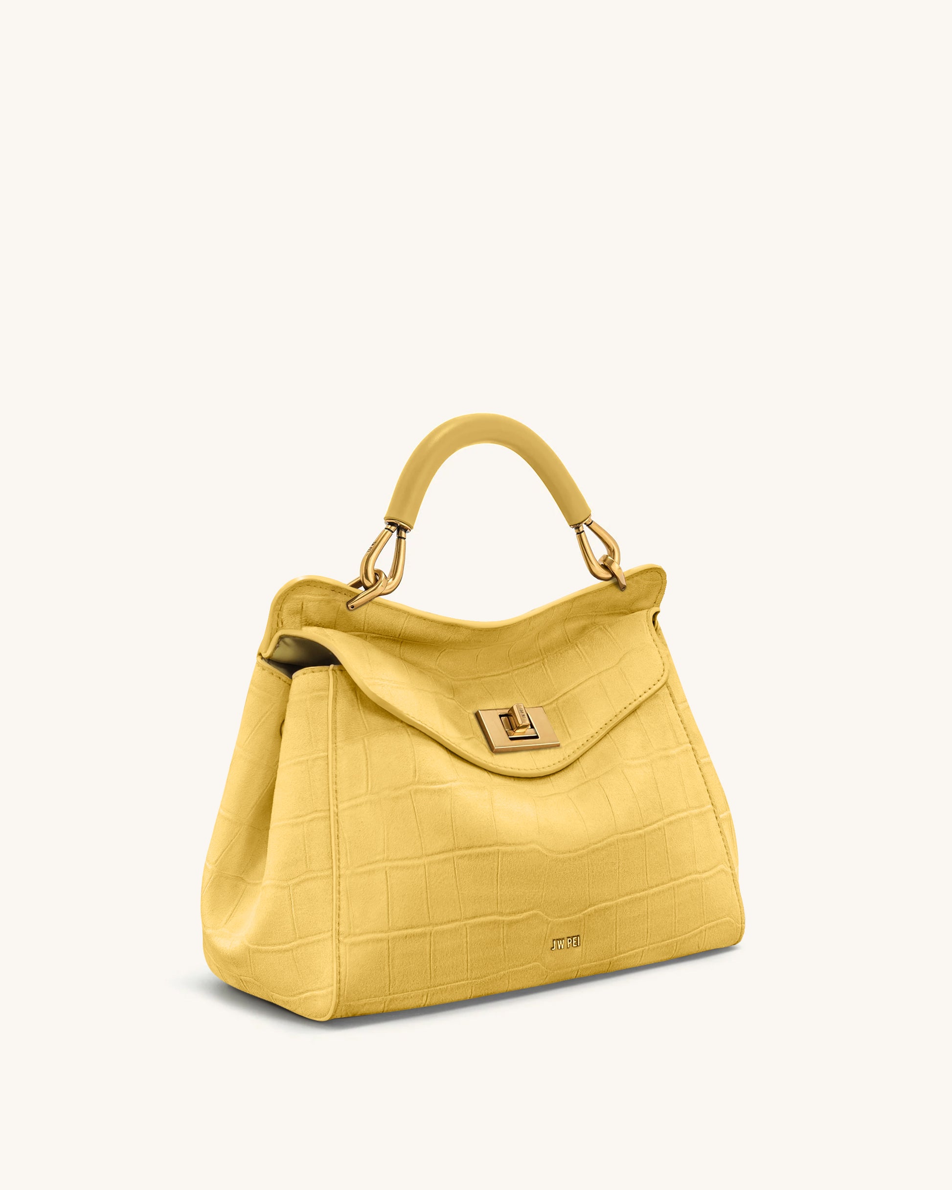 Lucia Klassische Handtasche aus Kunstwildleder mit Krokoprägung – Gelb