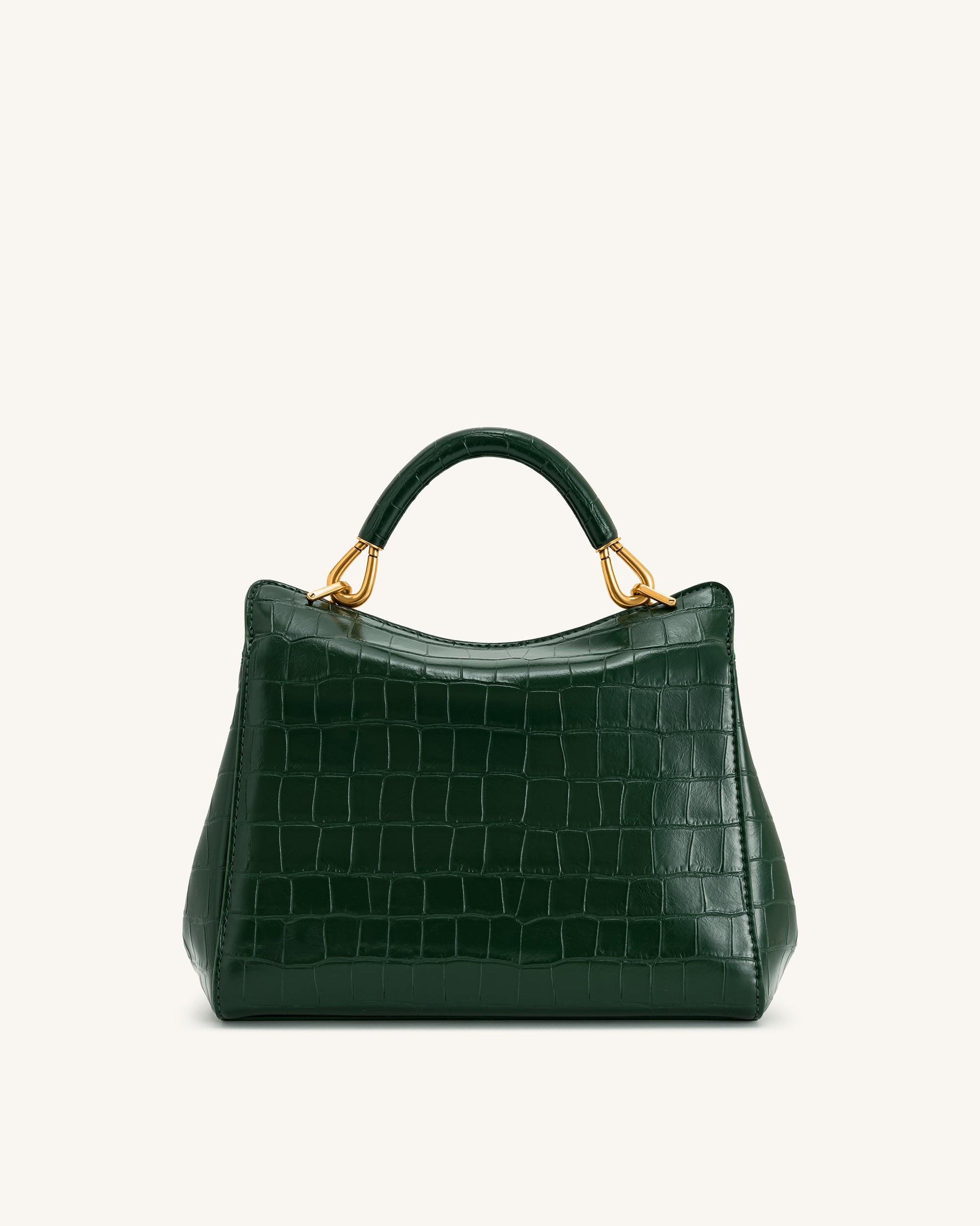 Lucia Klassische Top-Handtasche - Grünes Krokodil-Prägung