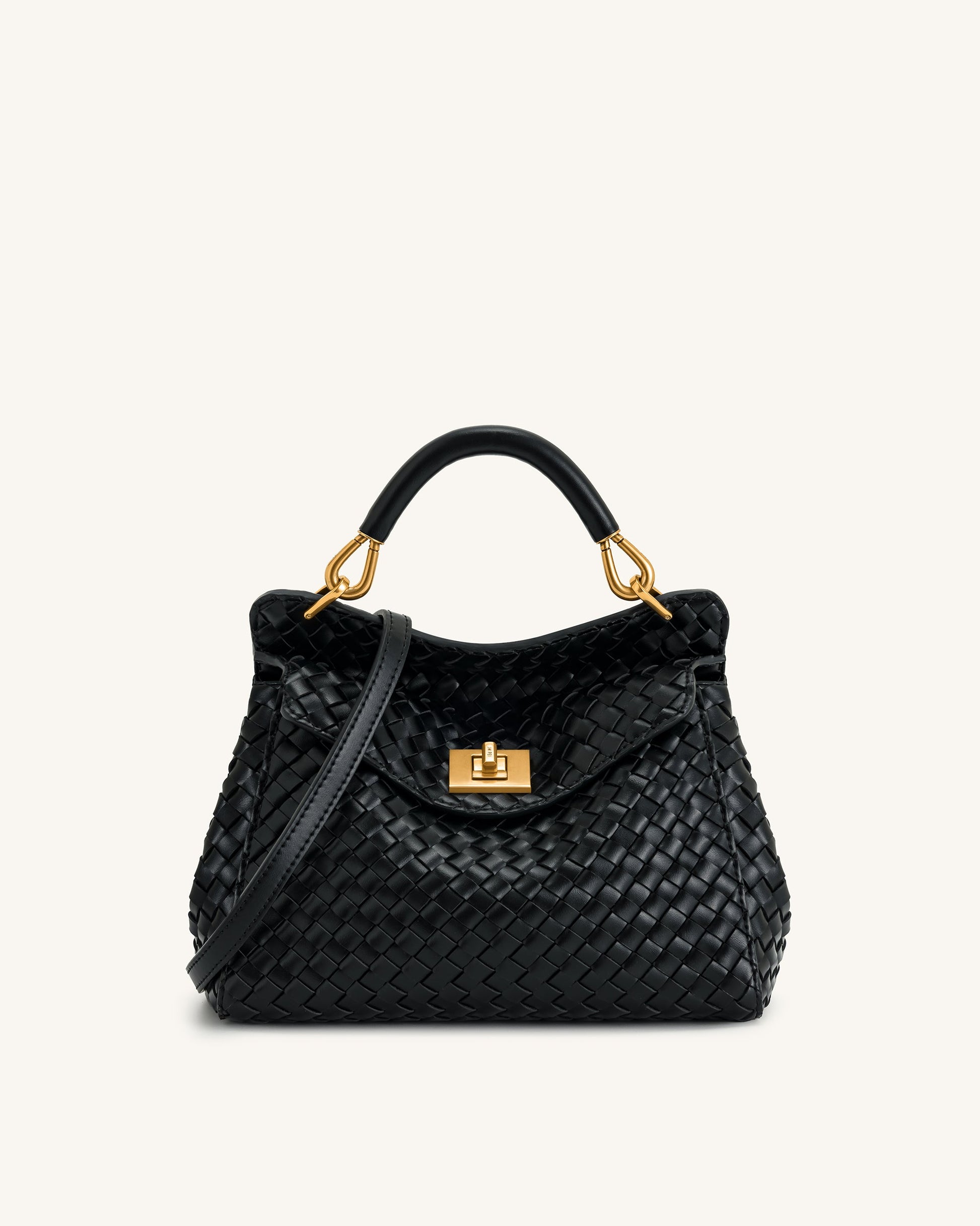Lucia Klassische Top-Handle Gewebte Tasche - Schwarz