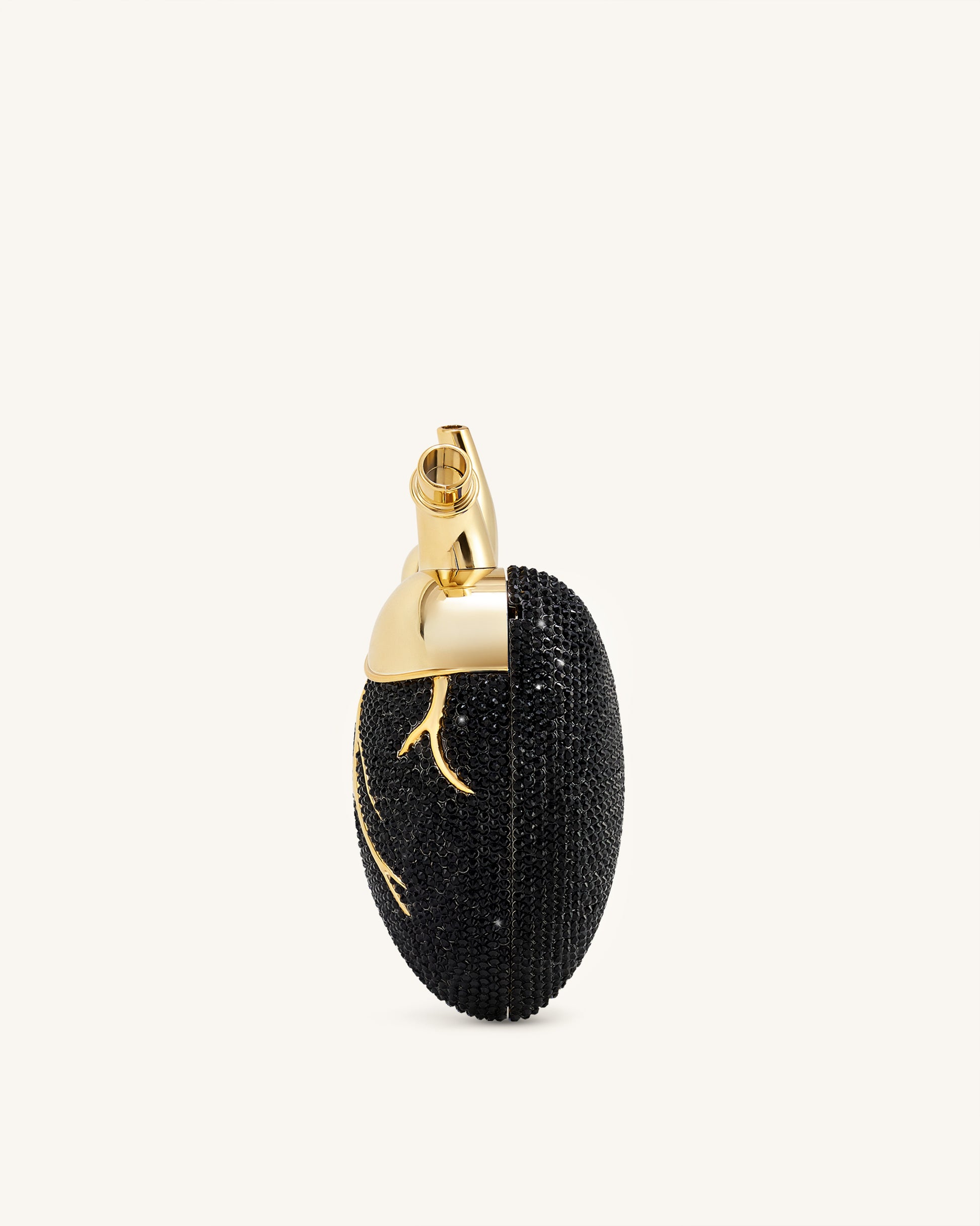 Herzförmige Tasche aus künstlichem Kristall – Schwarz/Gold