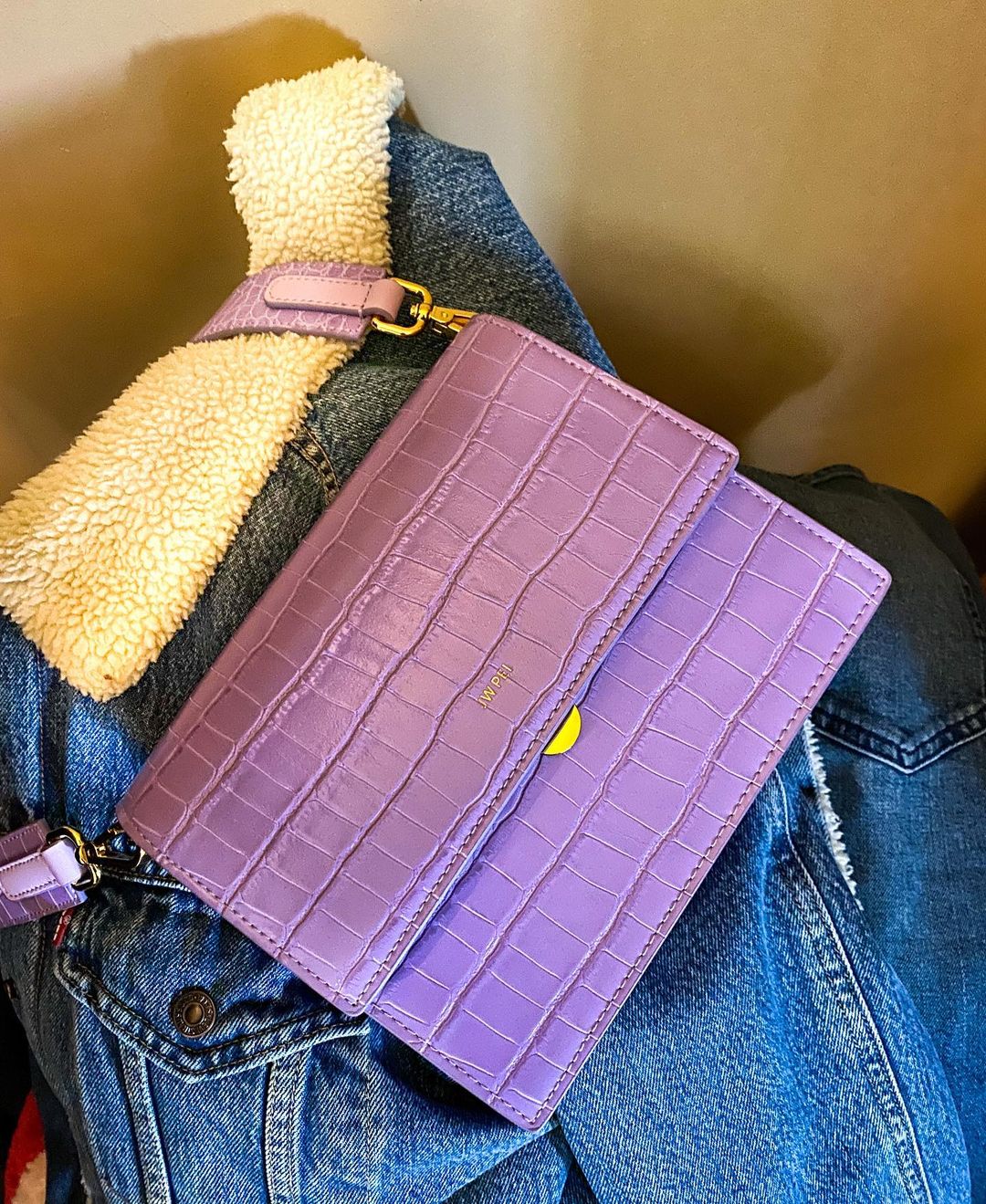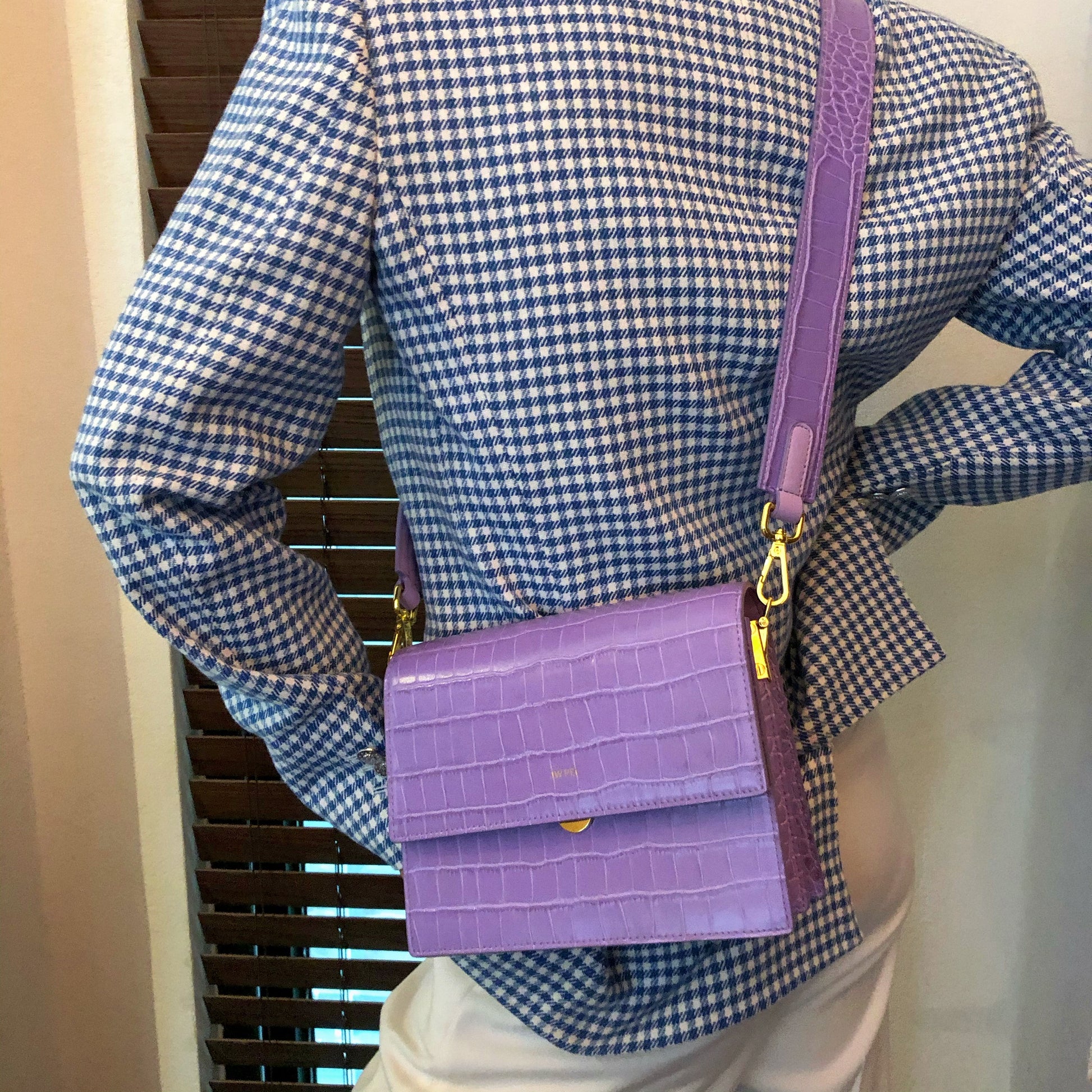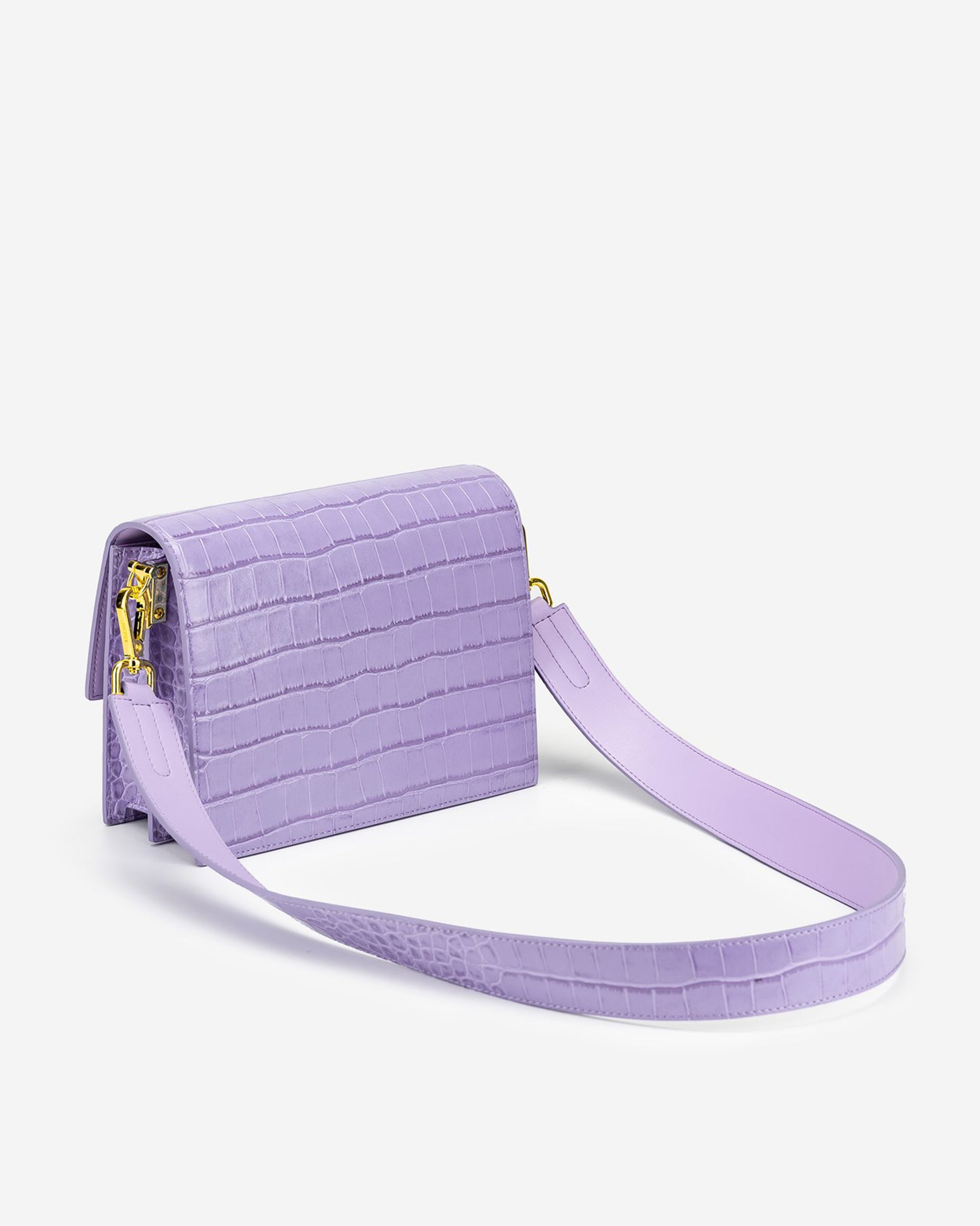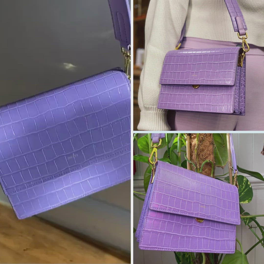 Mini-Klappentasche - Krokodilprägung in Lila