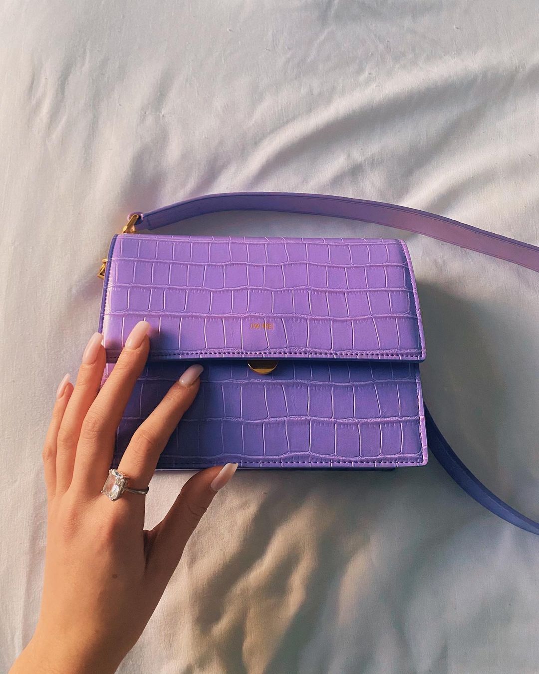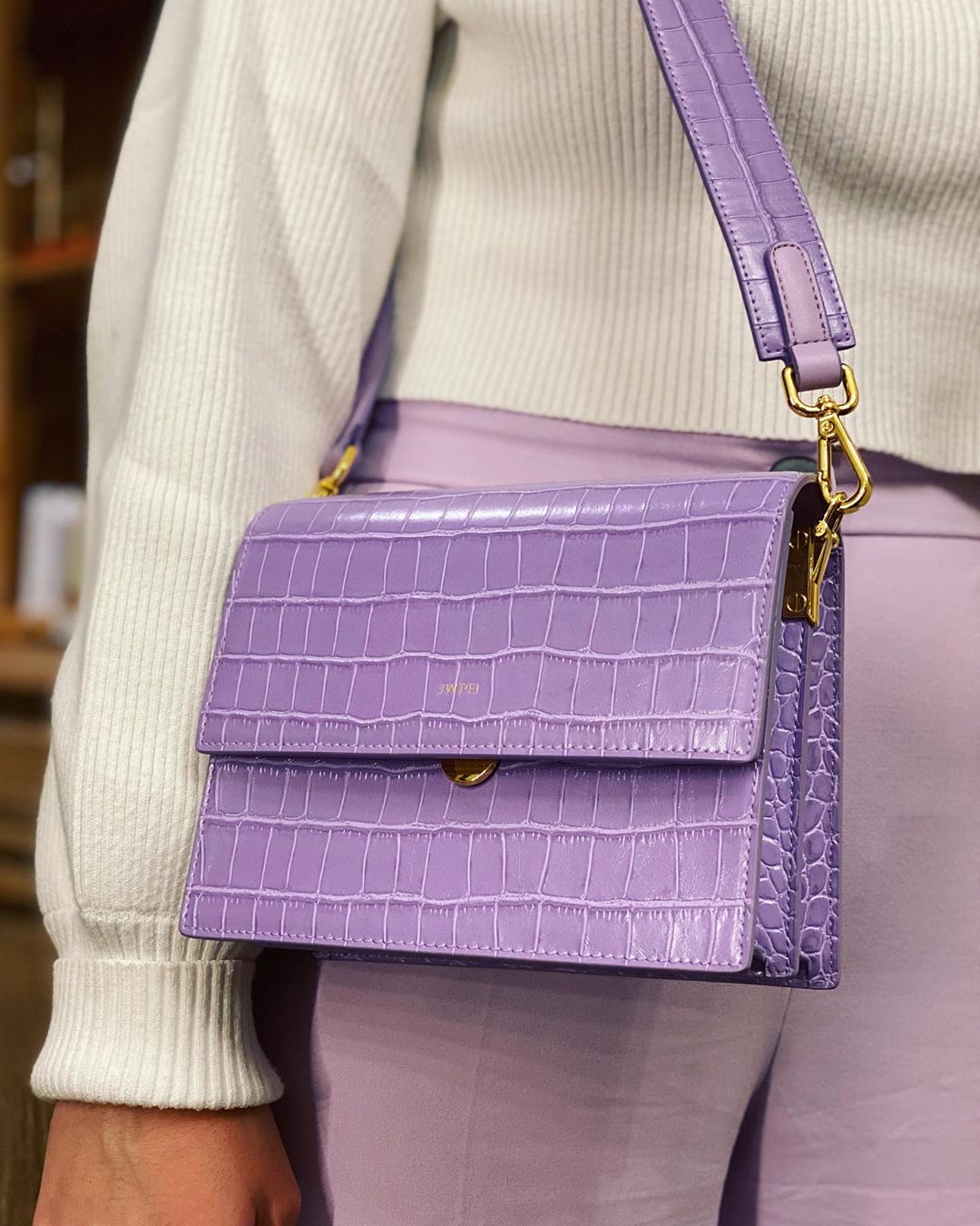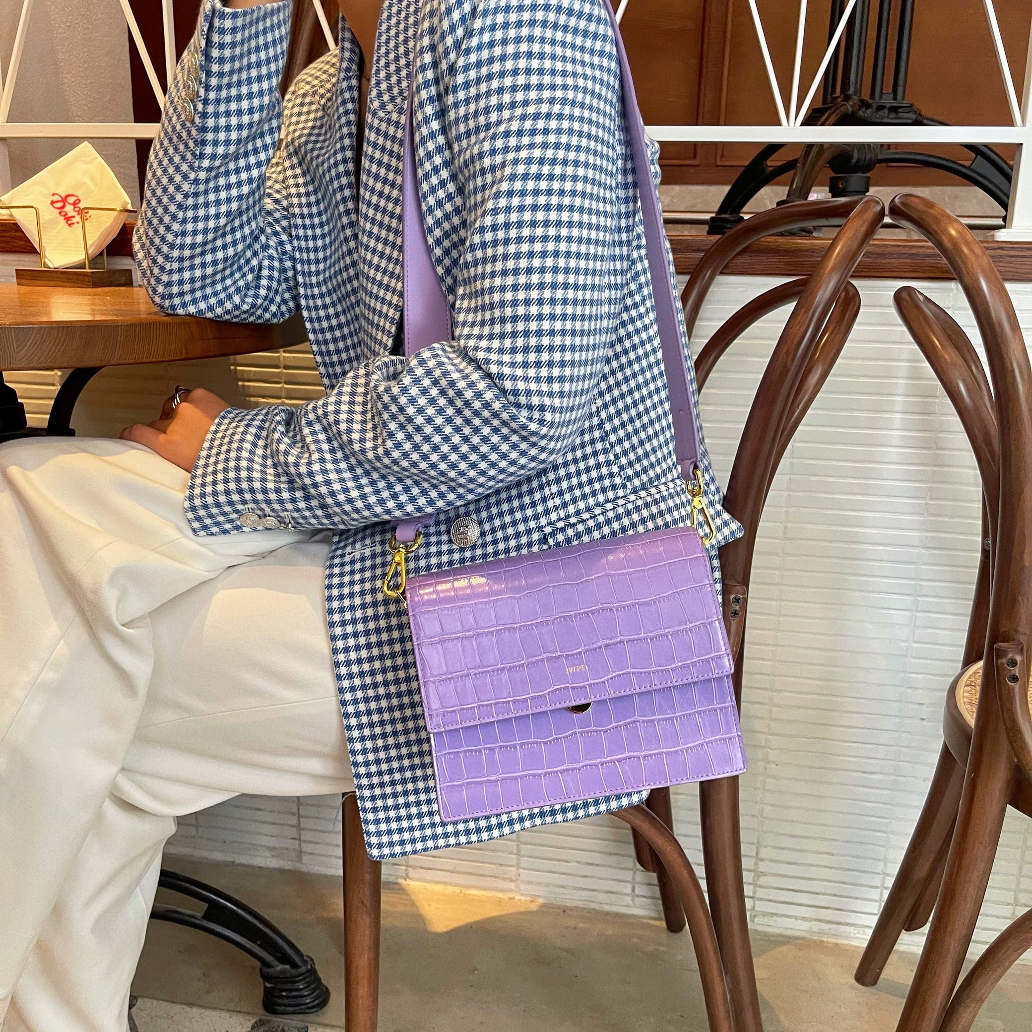 Mini-Klappentasche - Krokodilprägung in Lila