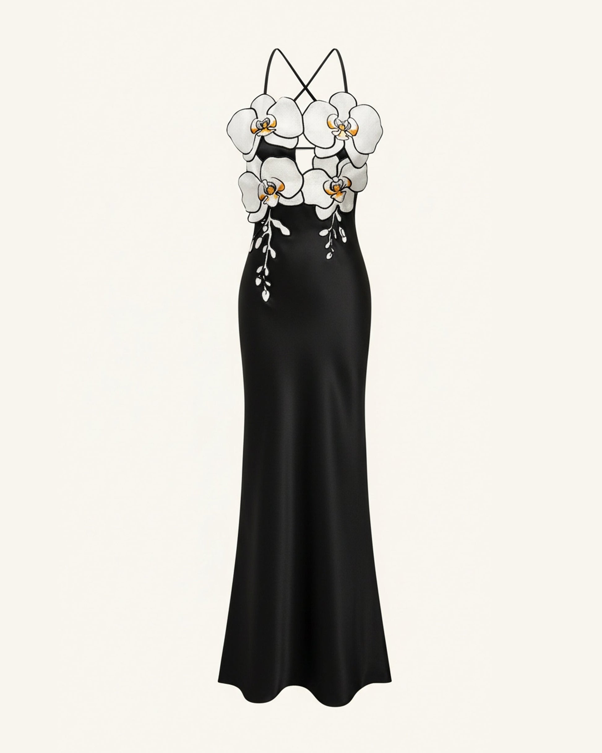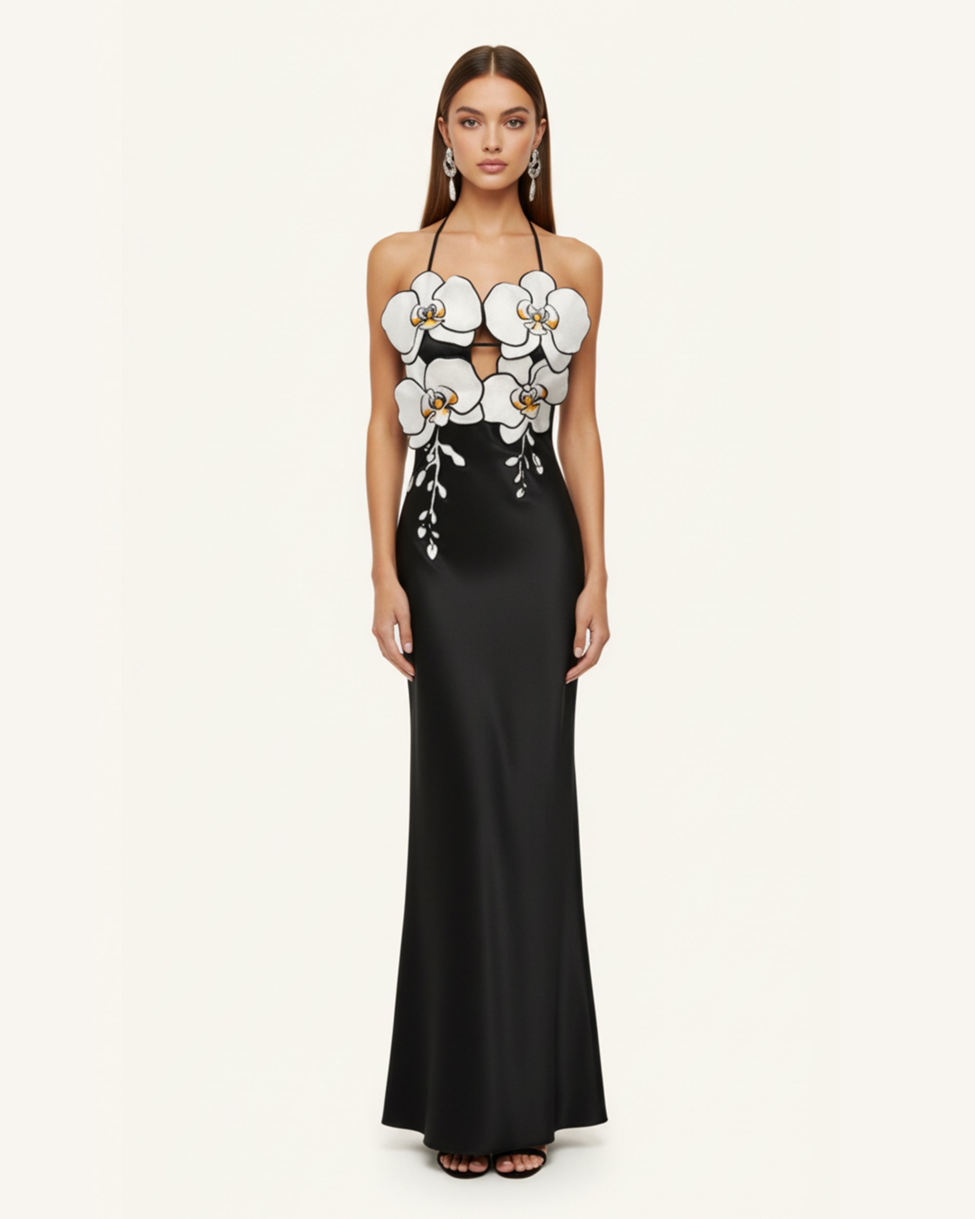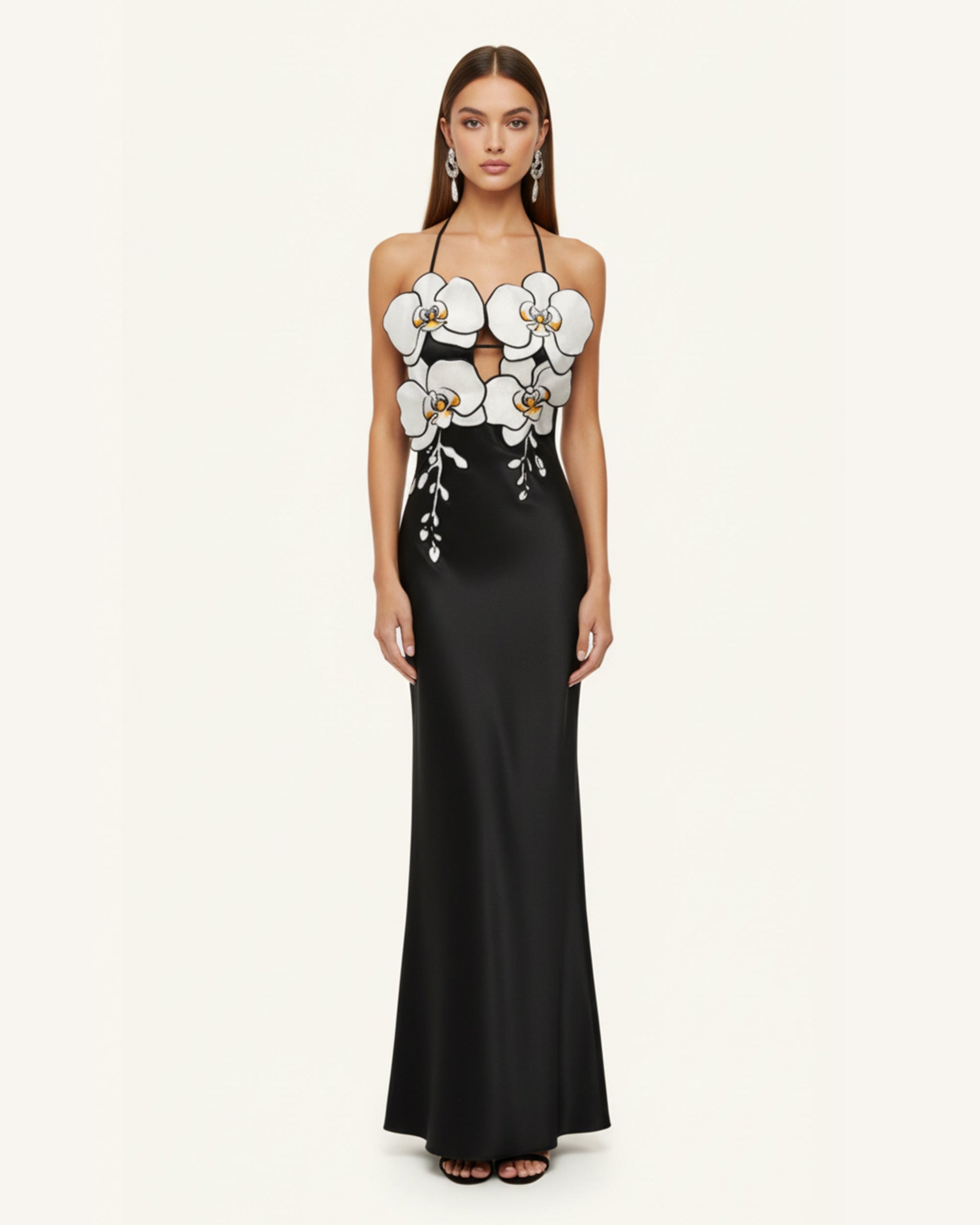 Orchideenbesticktes Kleid – Schwarz/Weiß