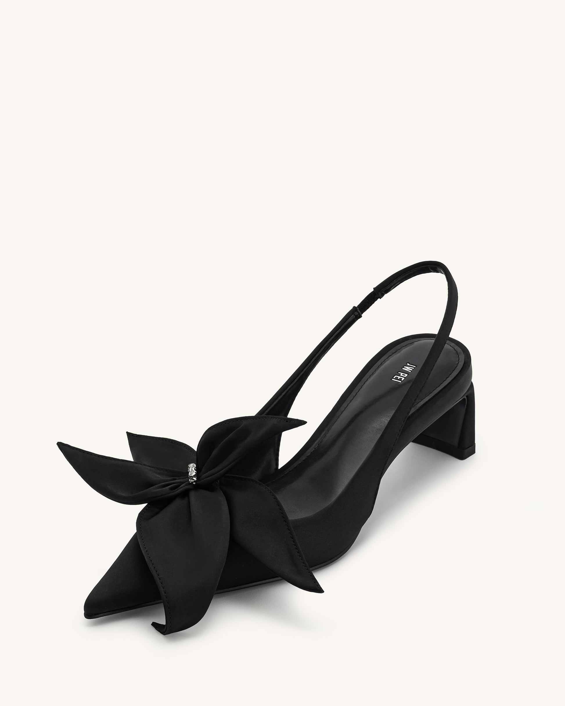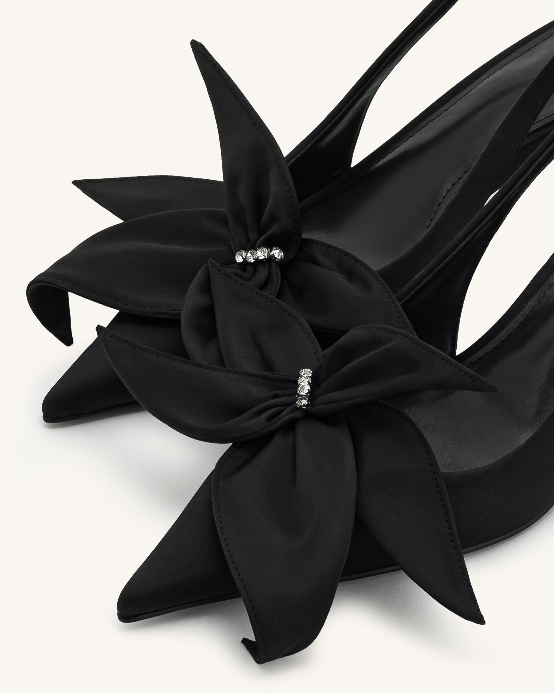 Queena Slingback-Pumps mit floralen Applikationen - Schwarz