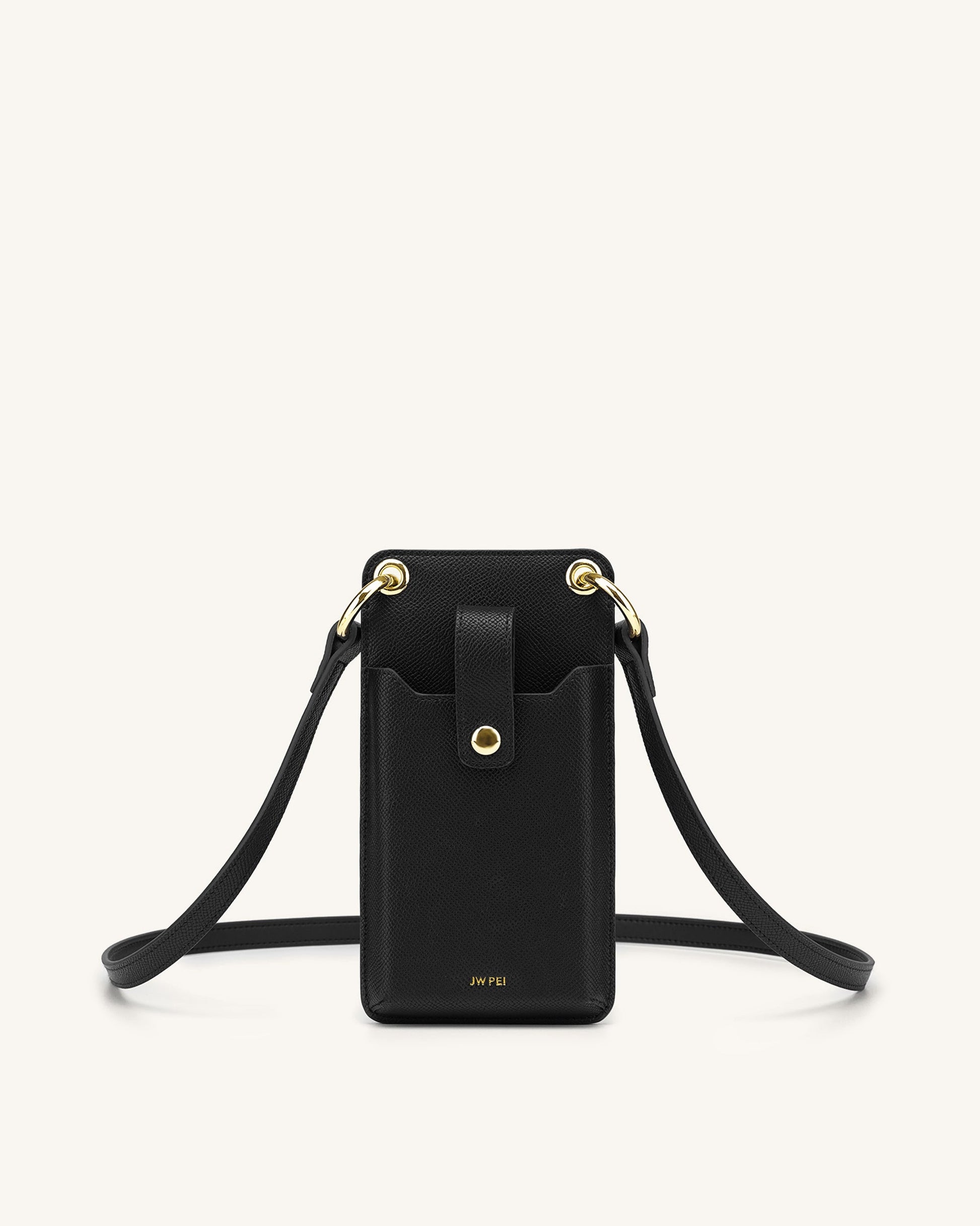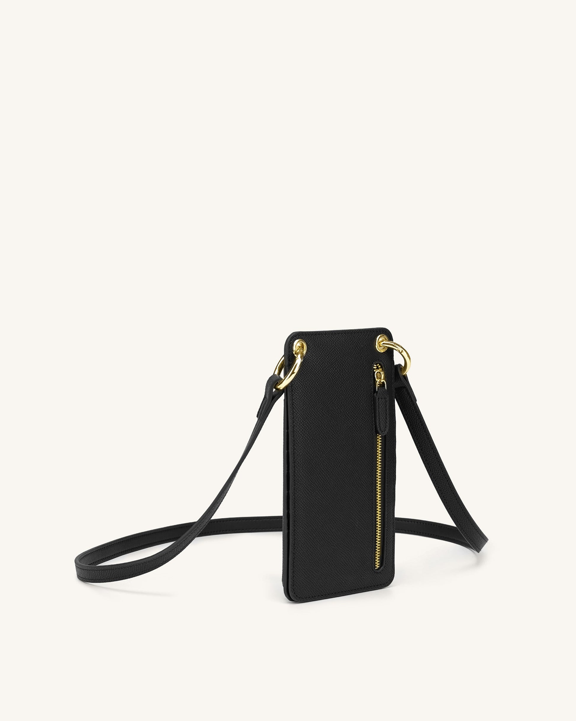 Quinn Smartphone-Tasche - Schwarz Genarbtes Veganes Leder