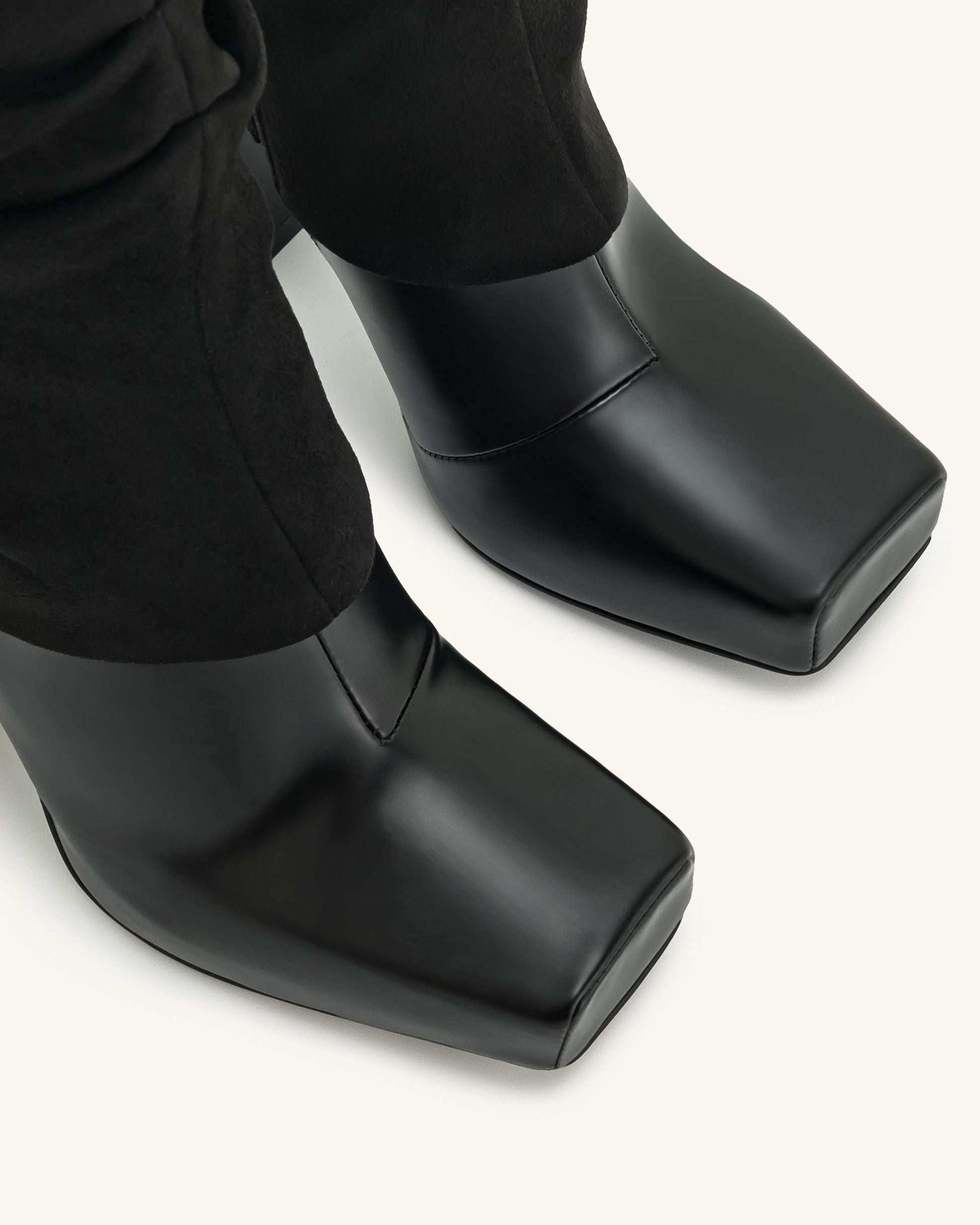 Reyna Quadratische Zehenplattform-Strickstiefel - Schwarz