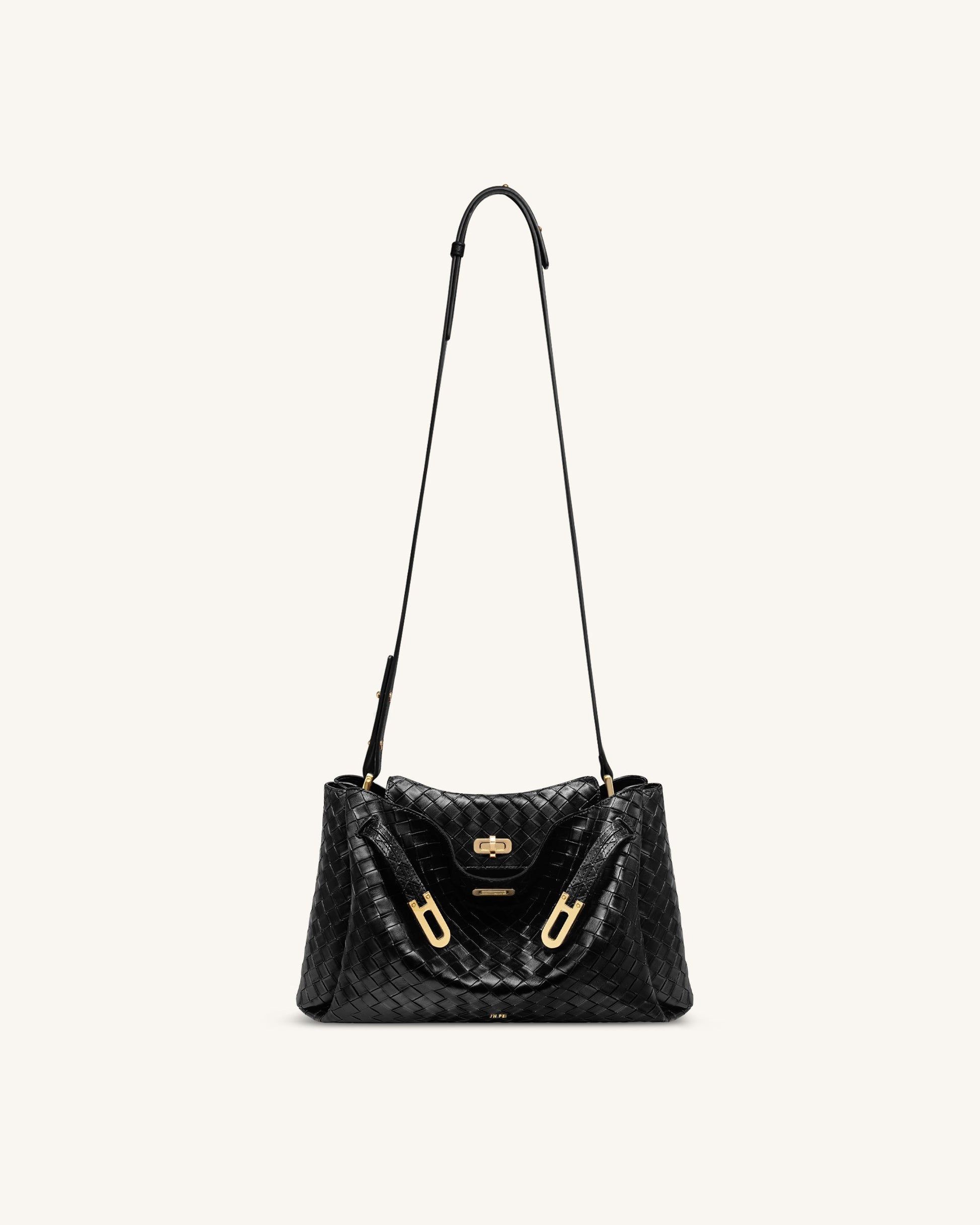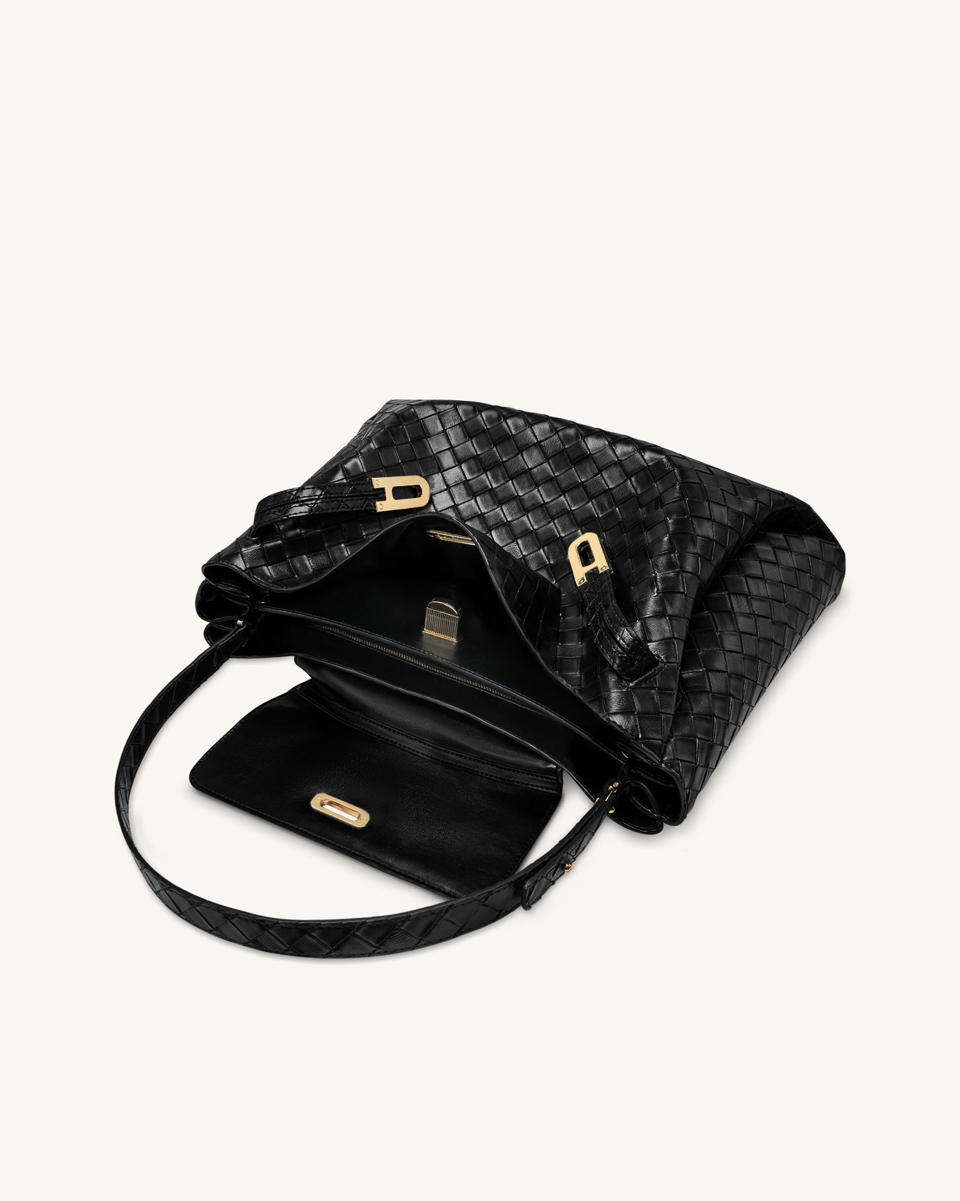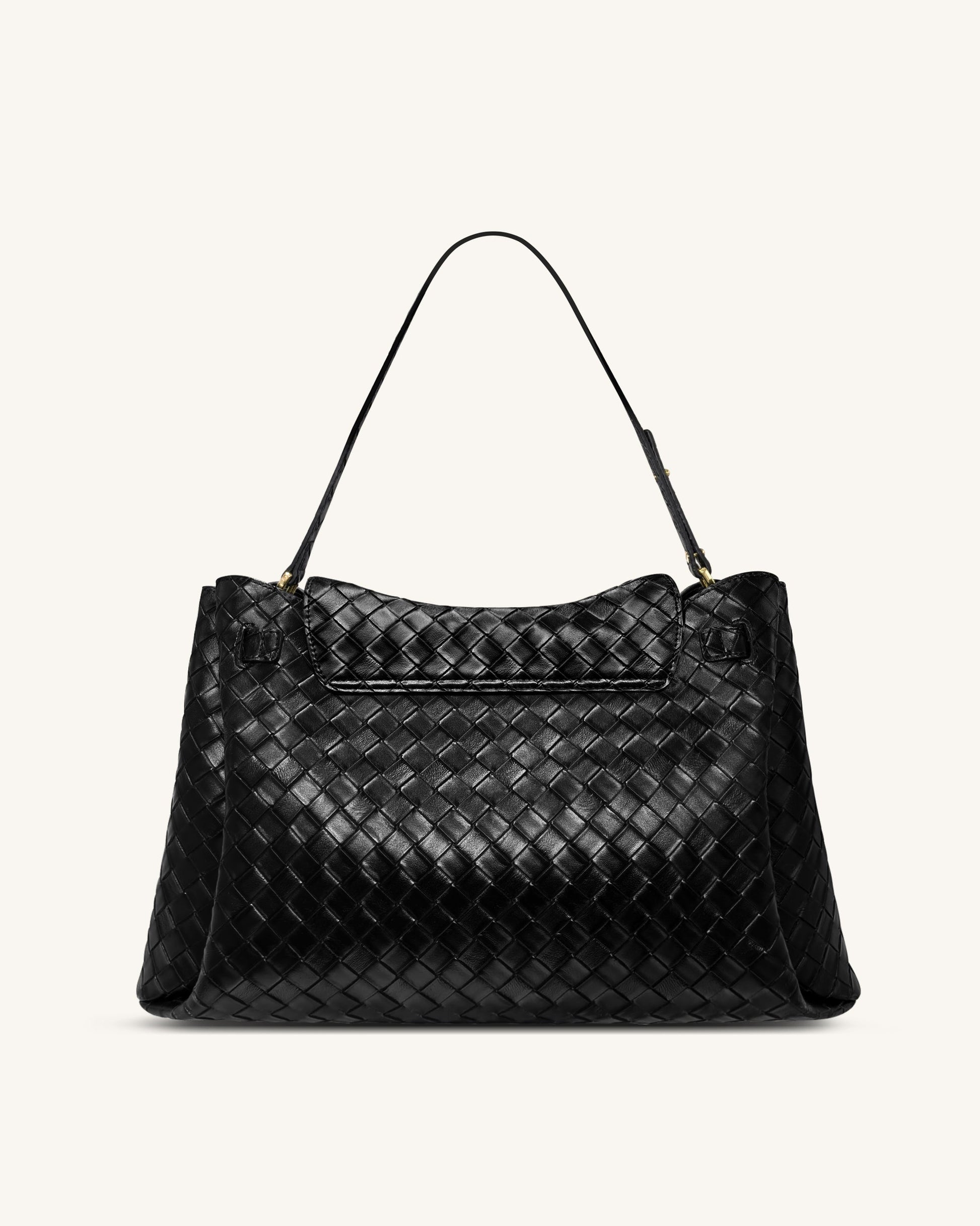 Rhea Große gewebt strukturierte Schultertasche - Schwarz