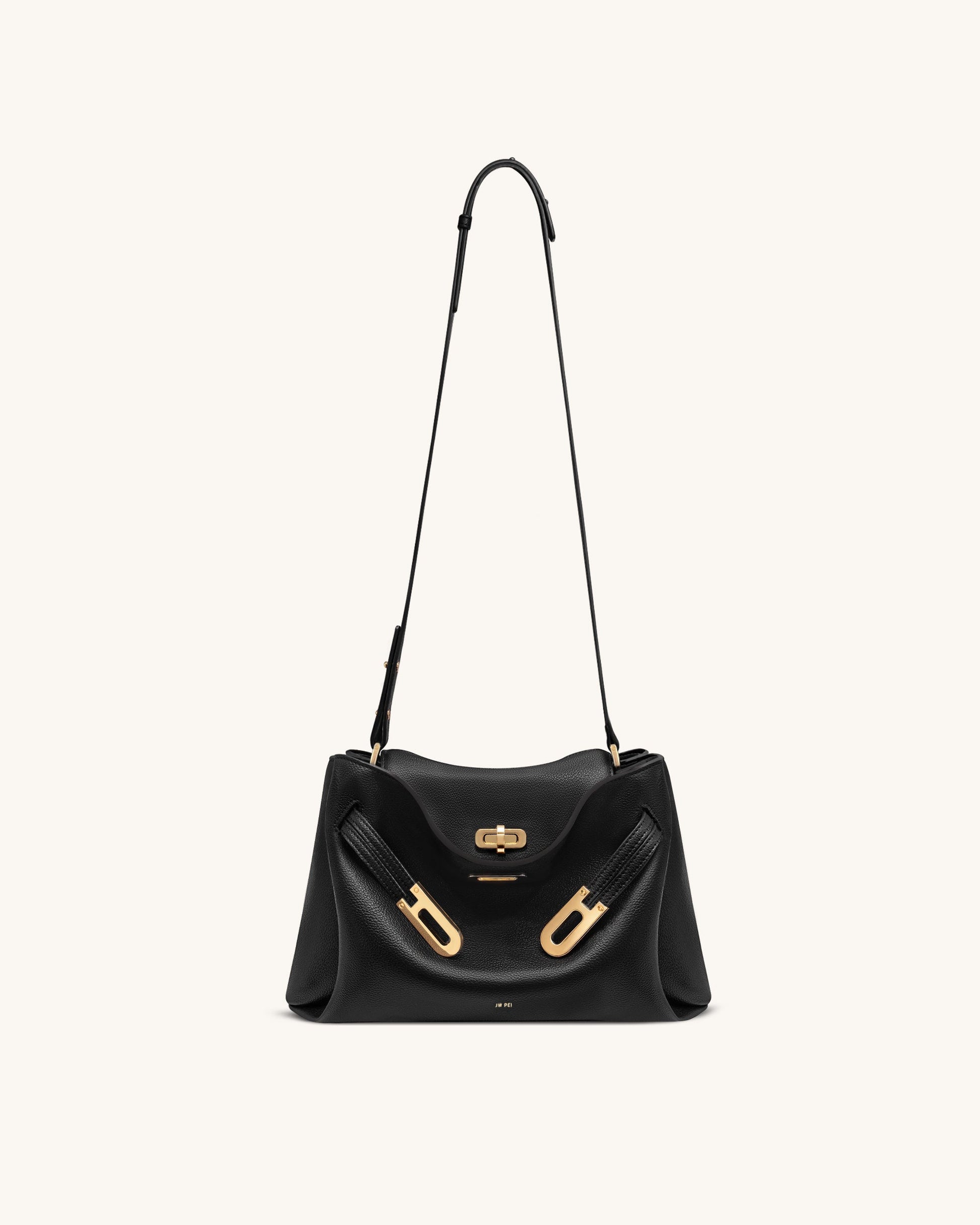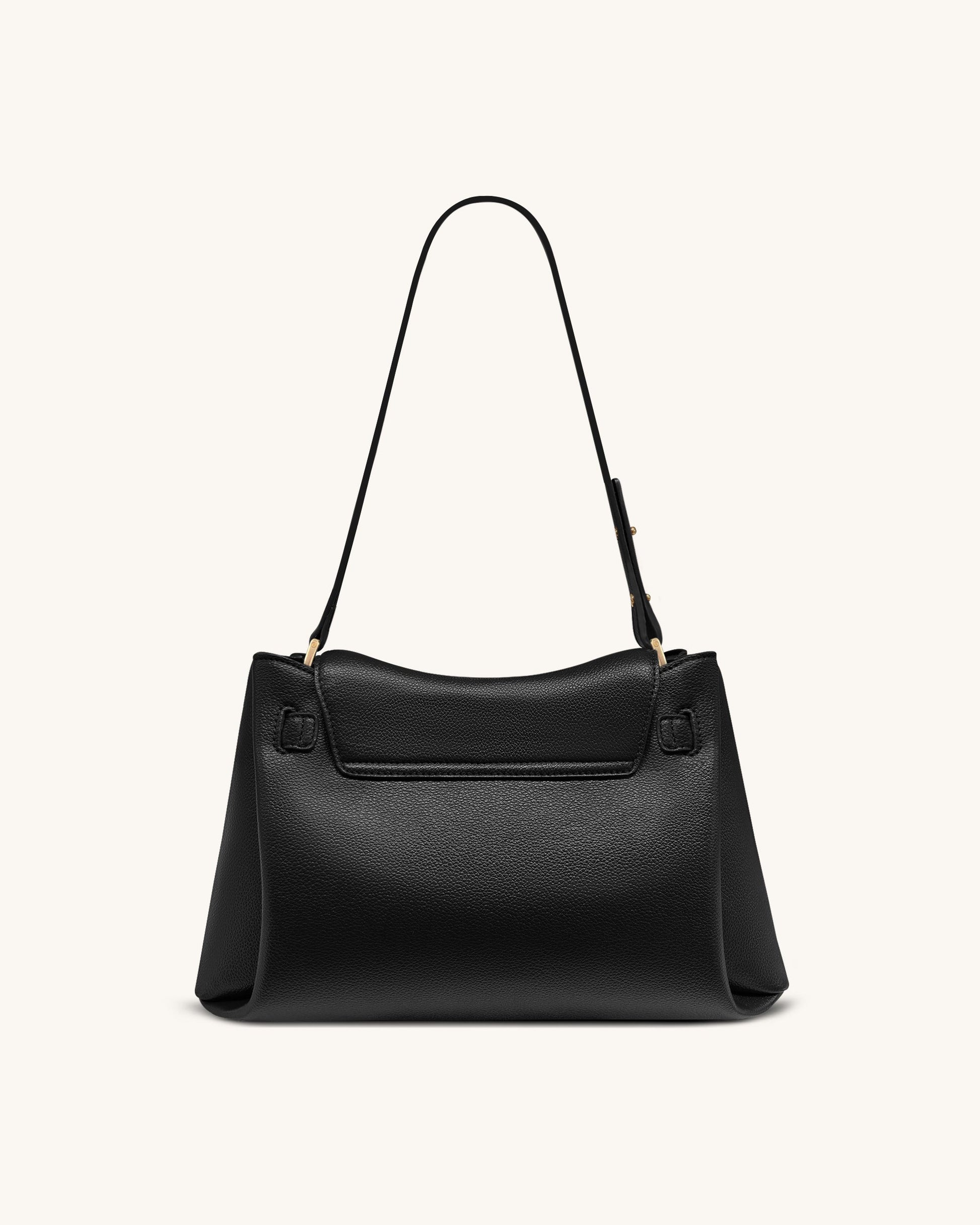 Rhea Schultertasche mit doppelter Schnalle und Narbenlederstruktur - Schwarz