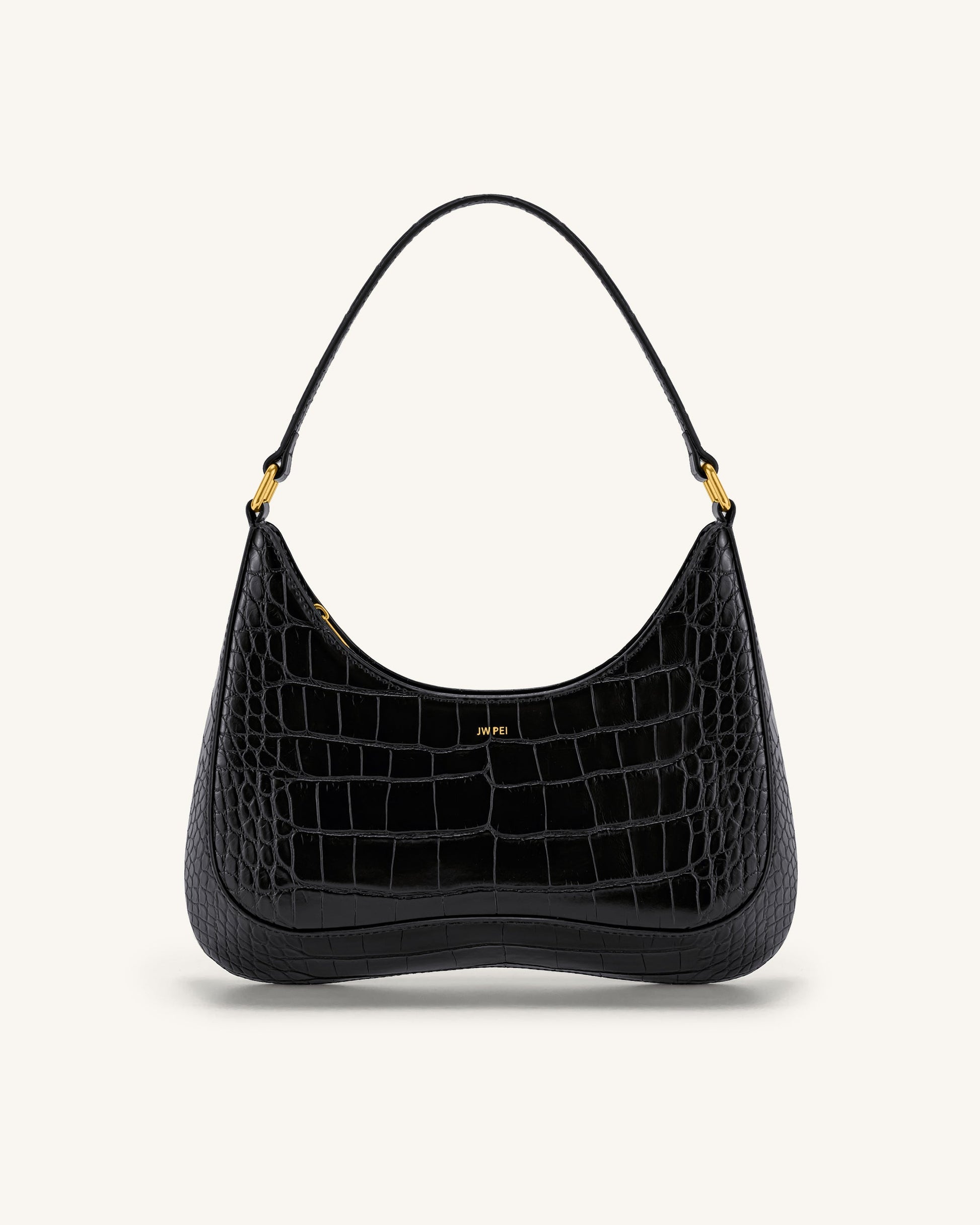Ruby Schultertaschen - Krokodilprägung in Schwarz