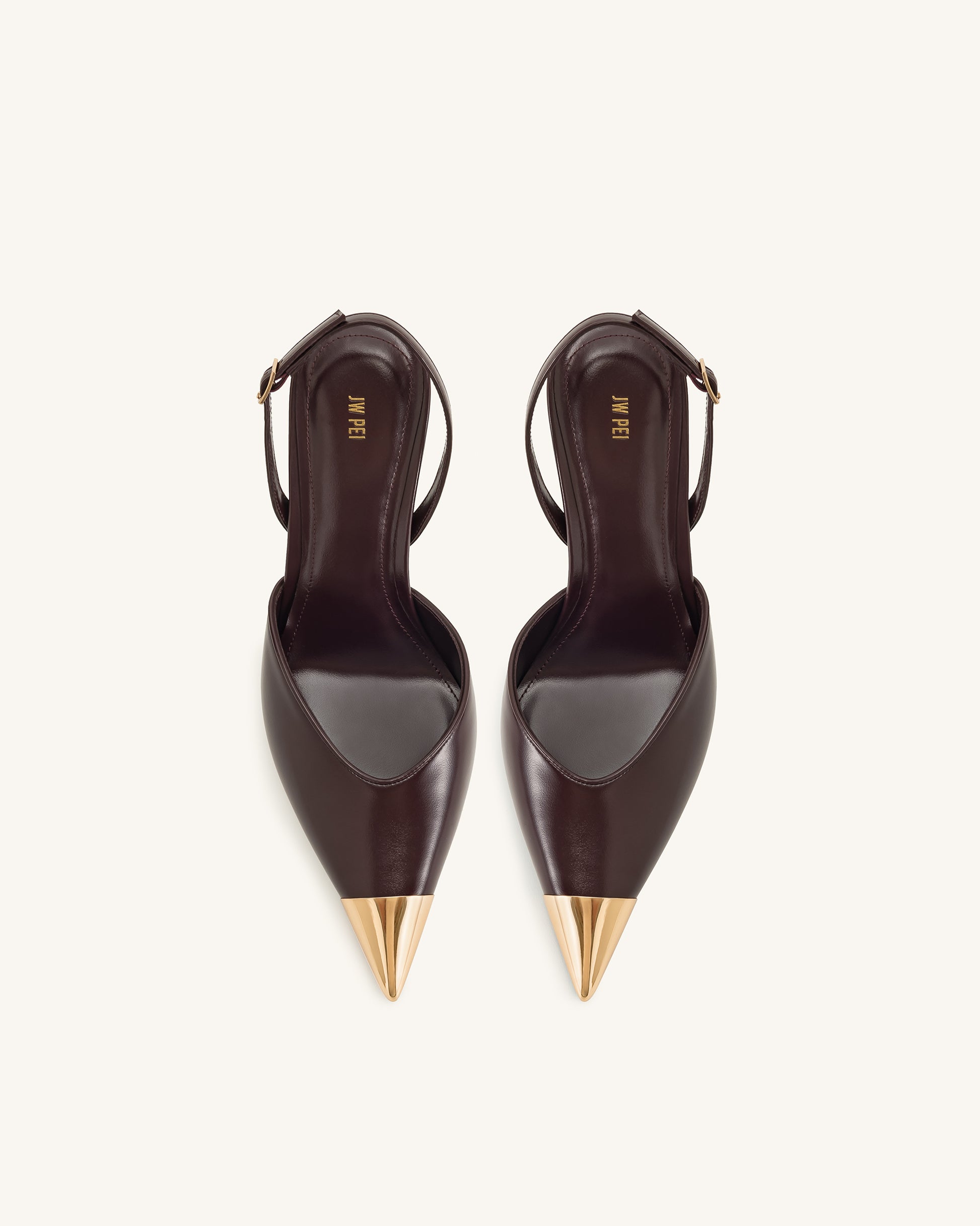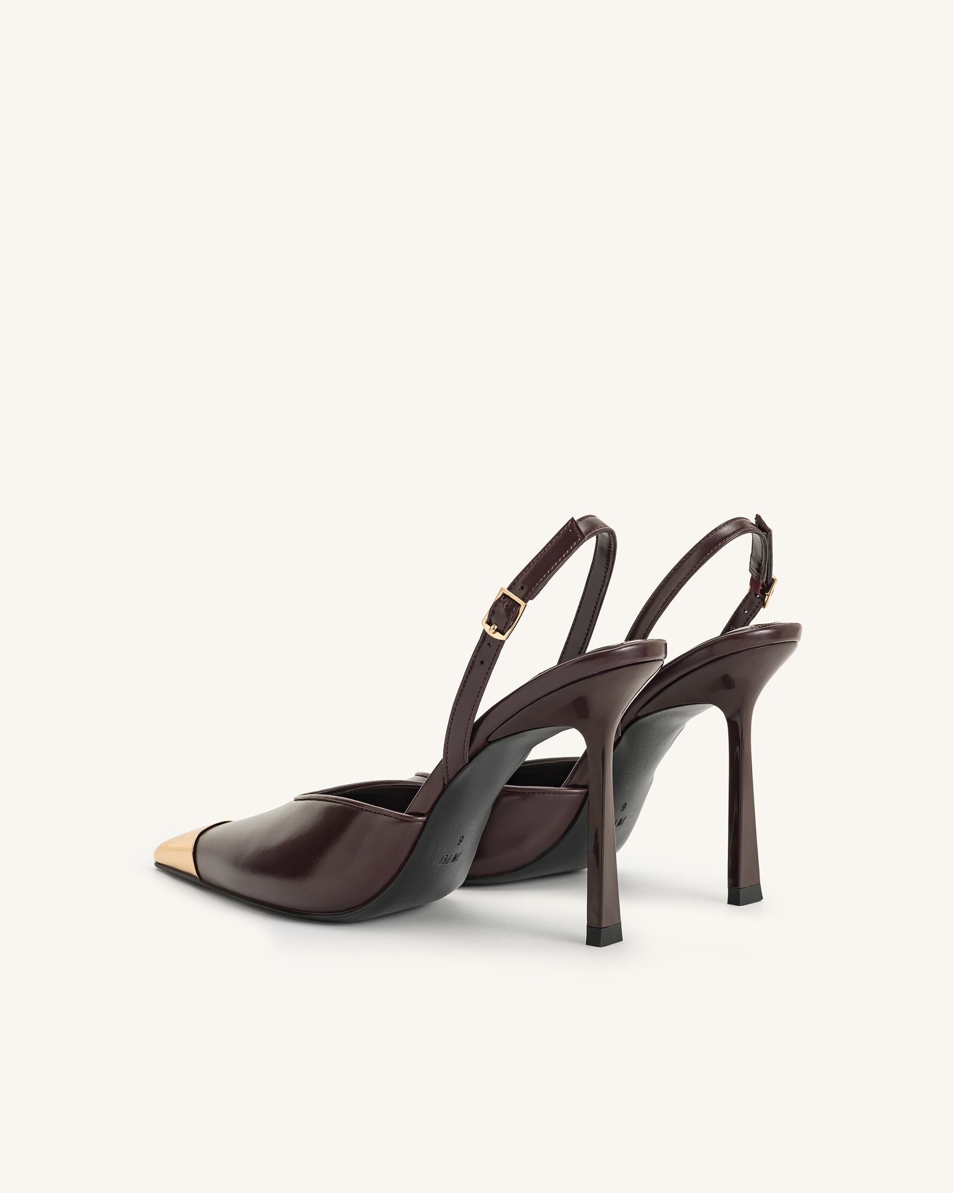 Savannah Slingback-Pumps mit goldener Spitze - Burgunderrot