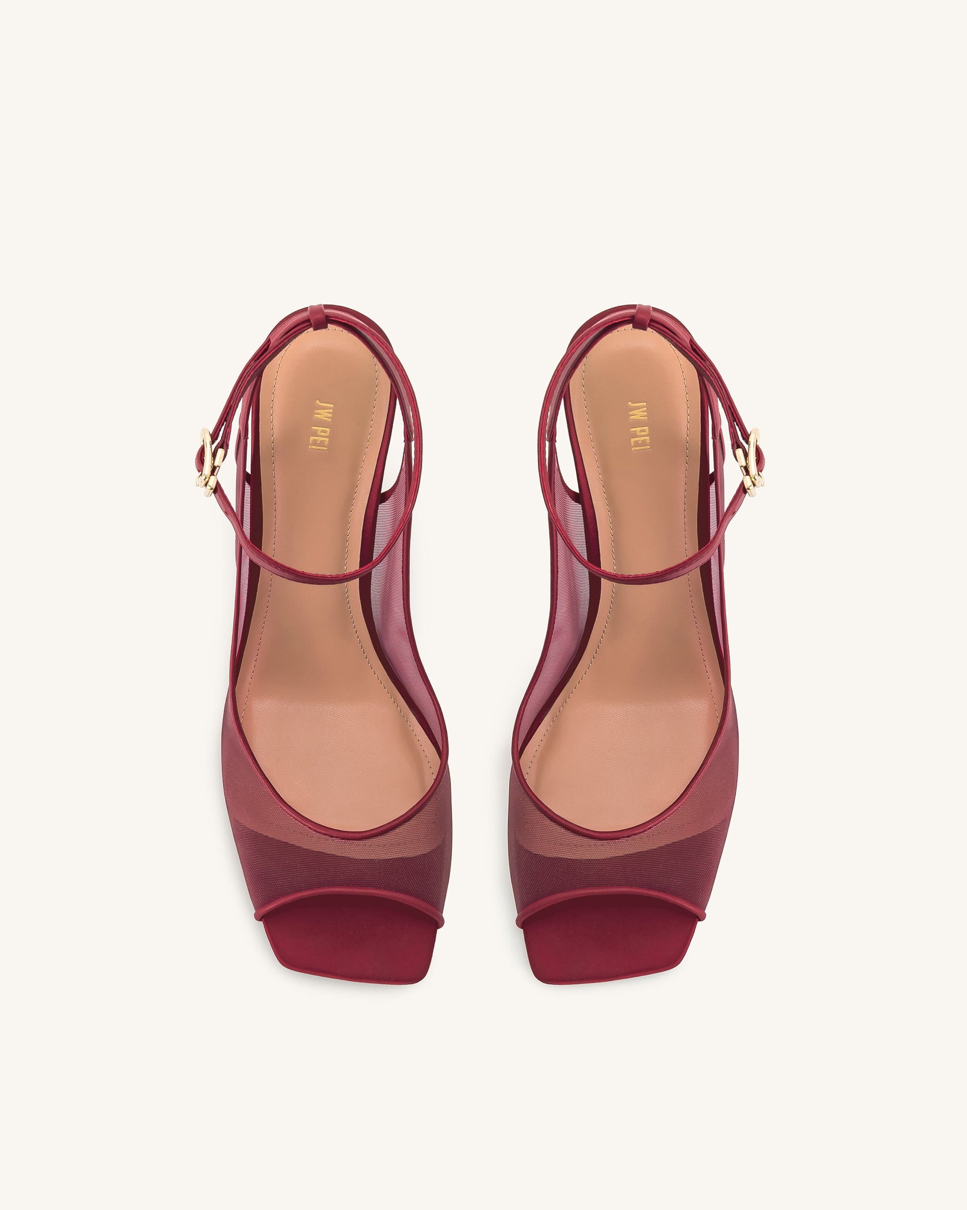 Serenity Offene Zehen Mesh Slingback Sandalen - Burgunderrot