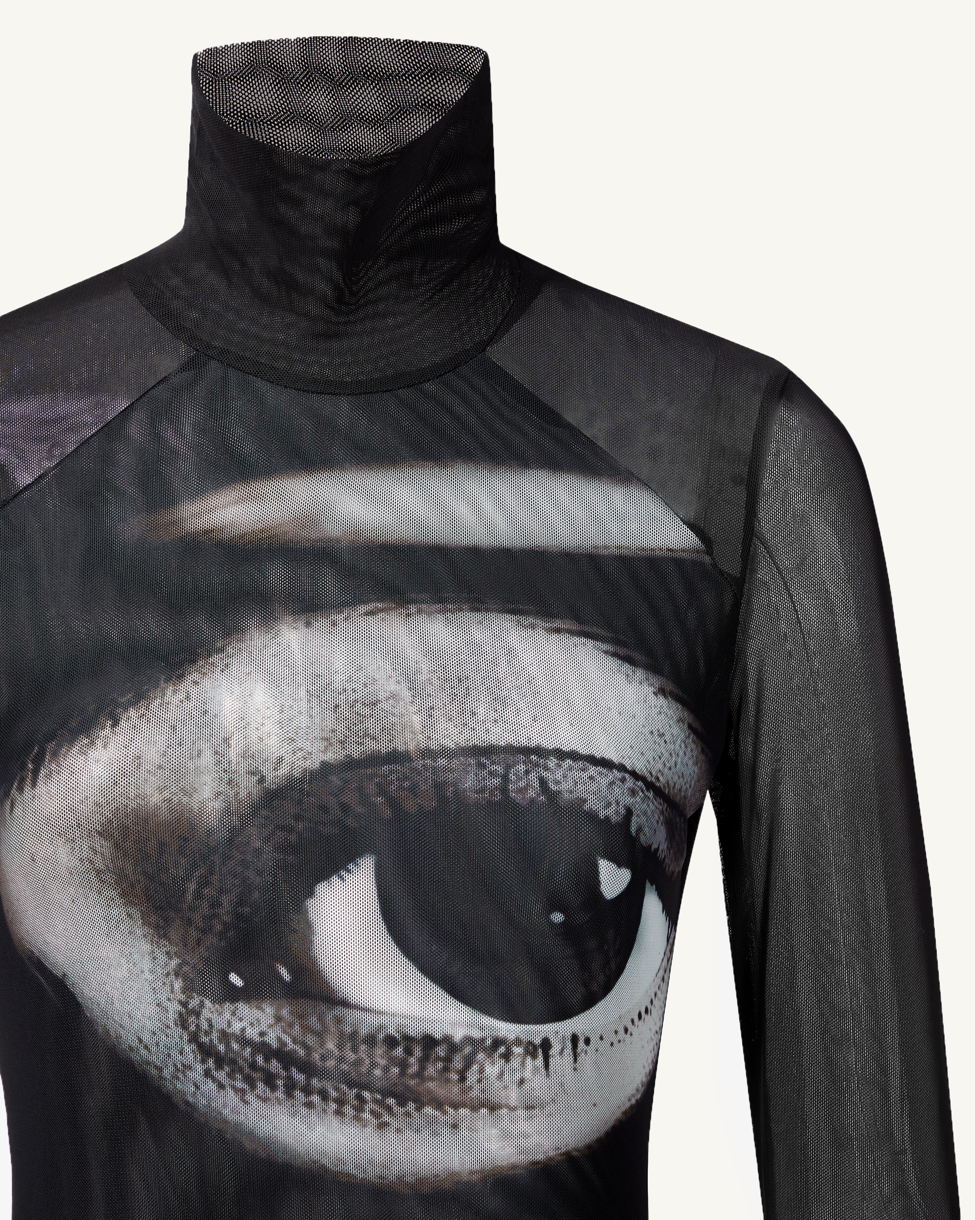 Sophia Kleid mit Augenmuster aus Mesh - Schwarz/Weiß