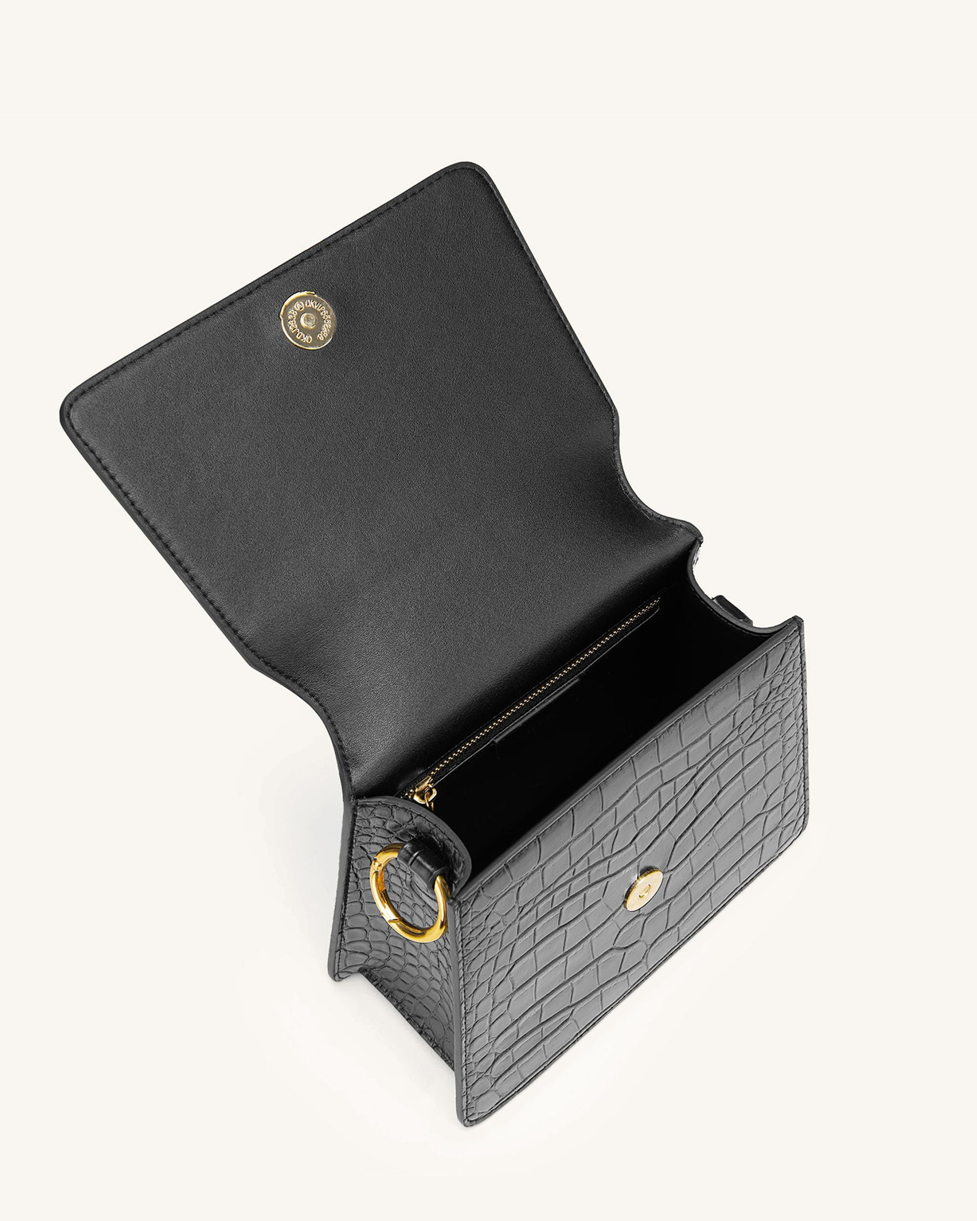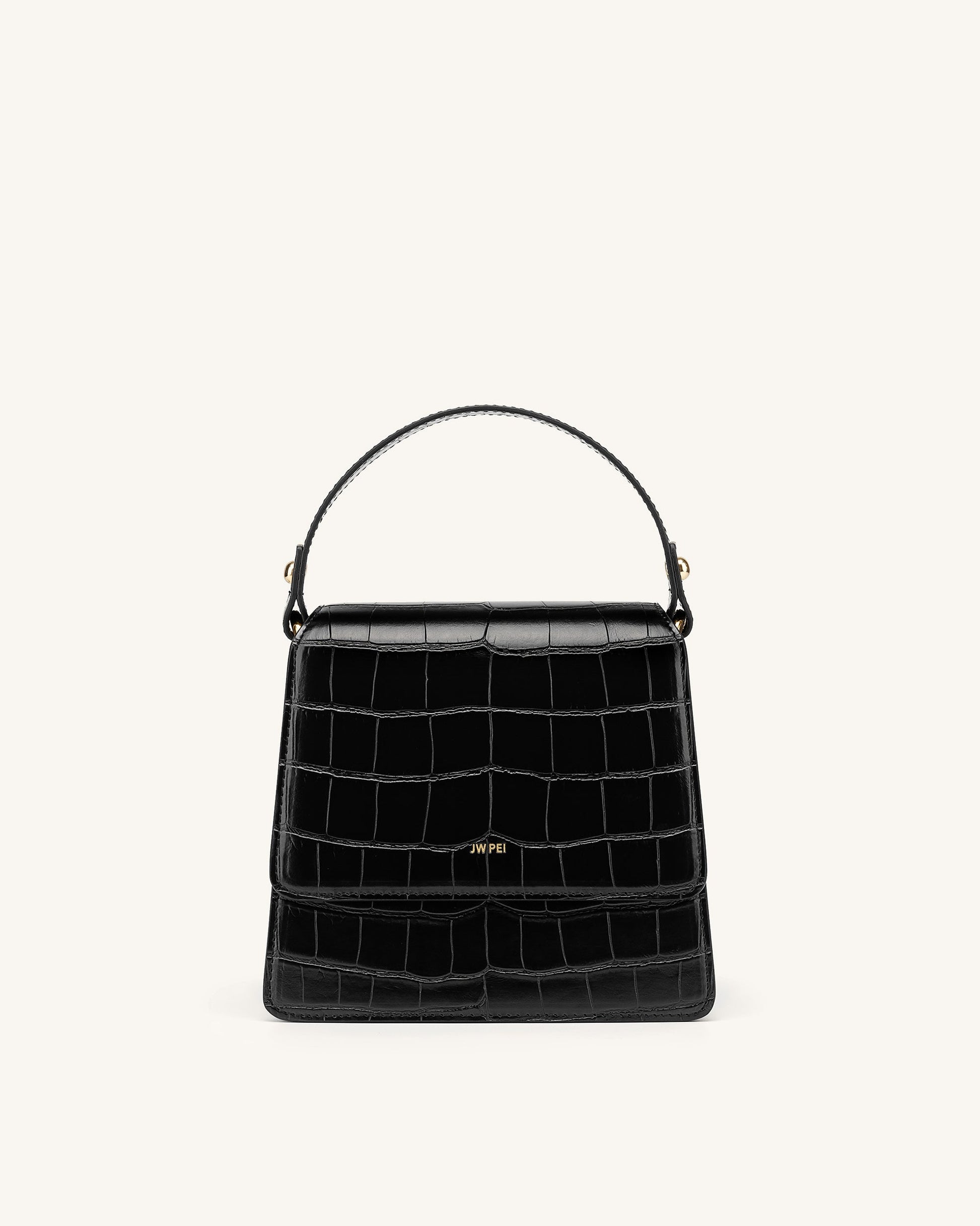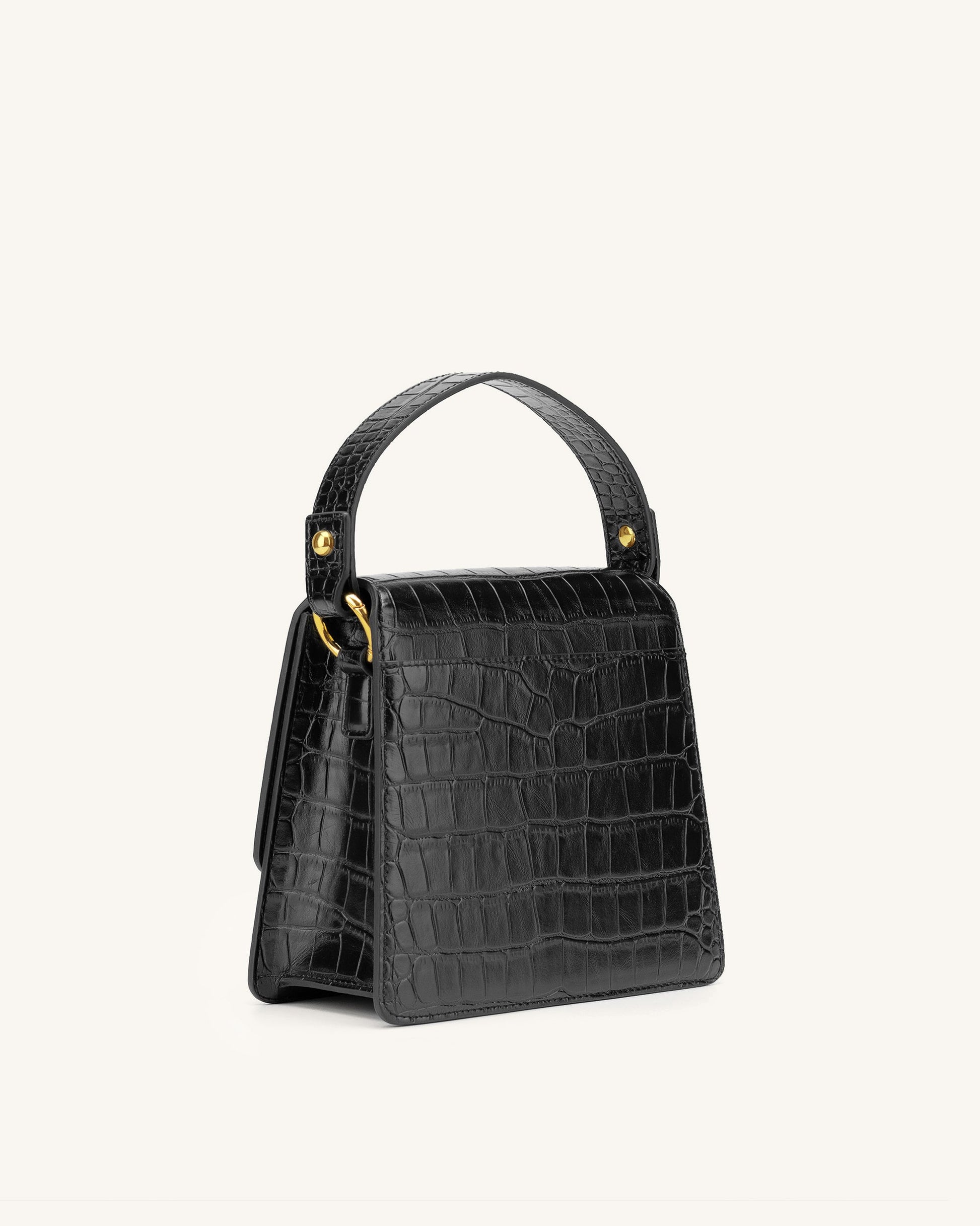Fae Henkeltasche - Krokodilprägung in schwarz