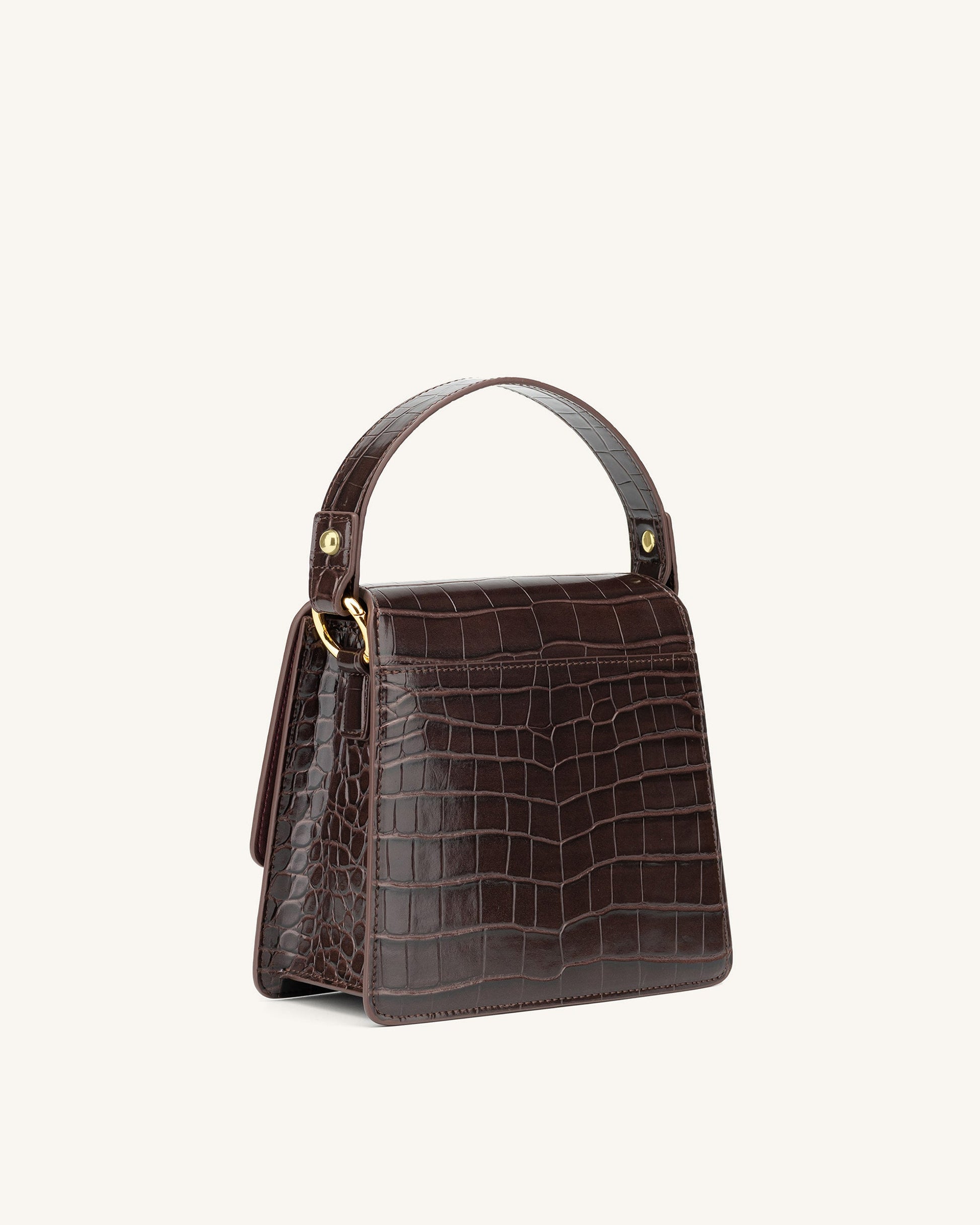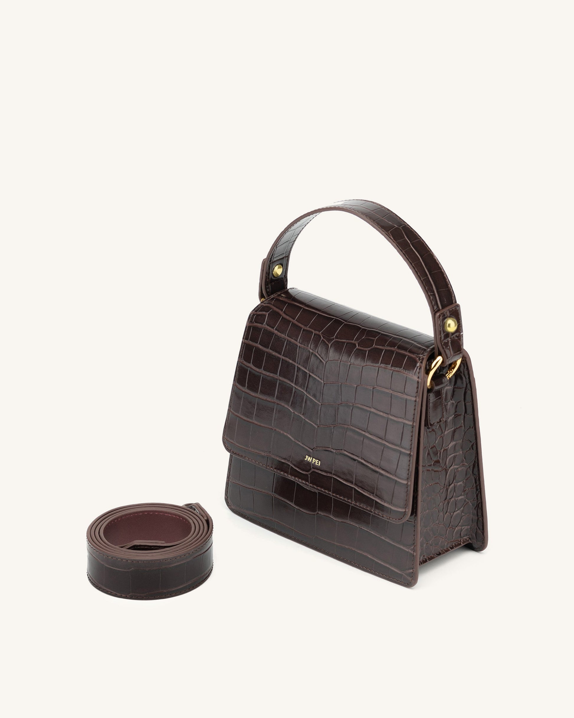 Fae Henkeltasche - Krokodilprägung in nutellabraun