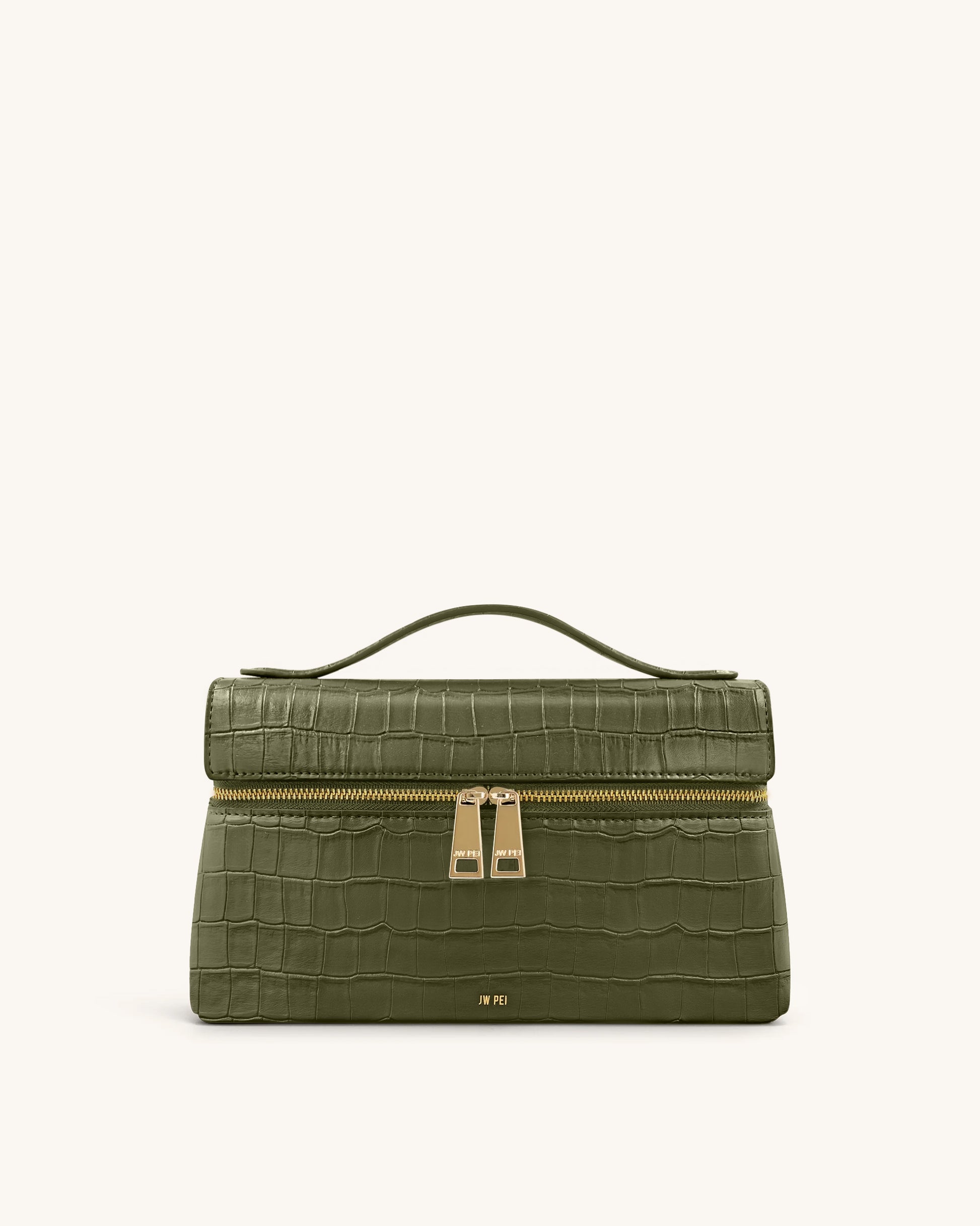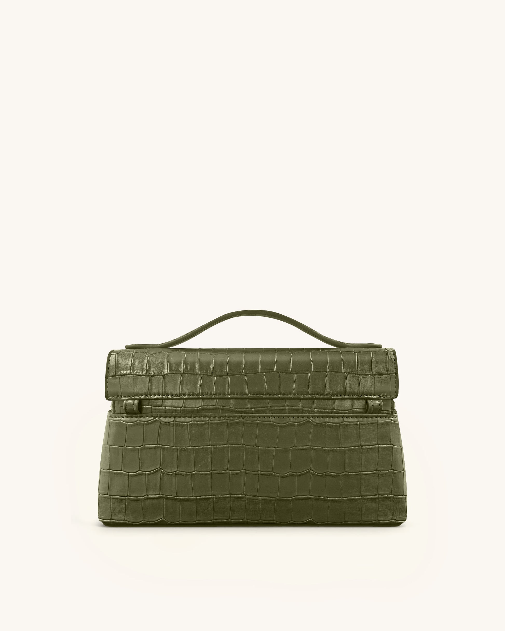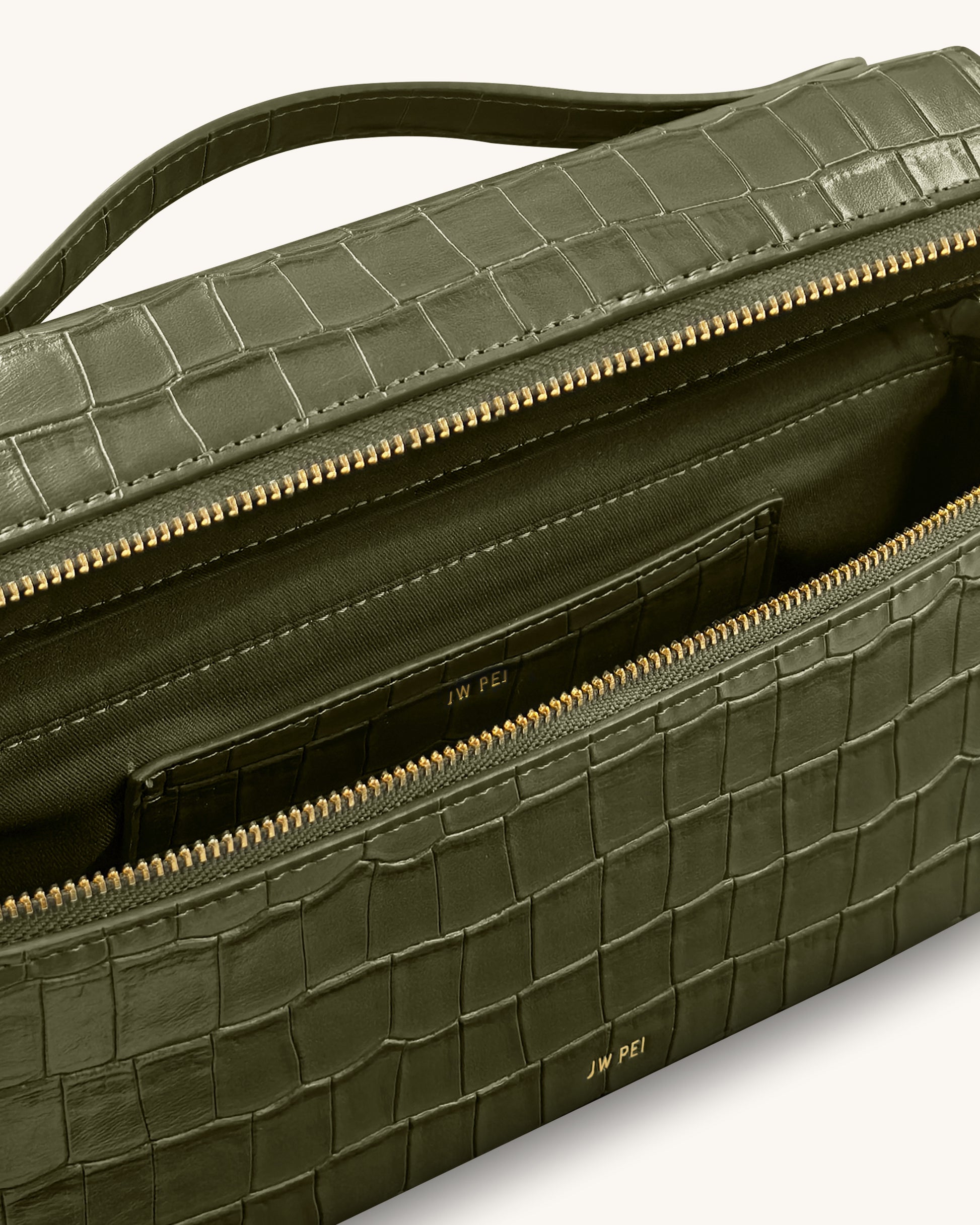 Thea Handtasche mit Krokoprägung – Olivgrün
