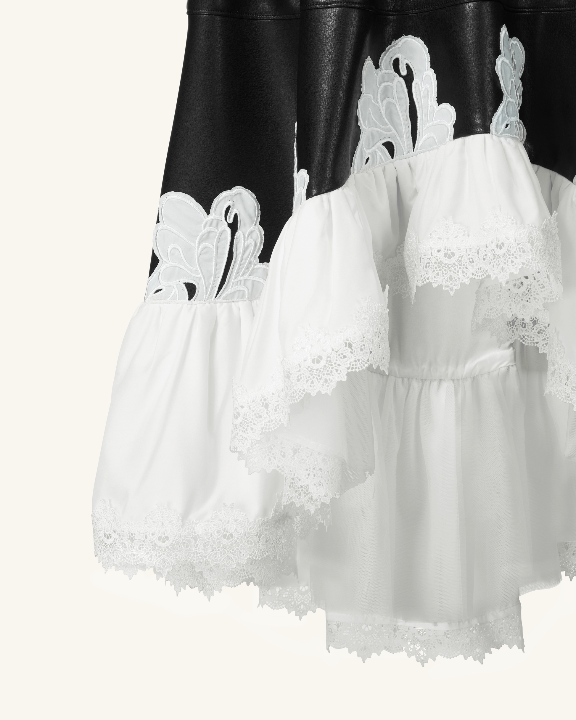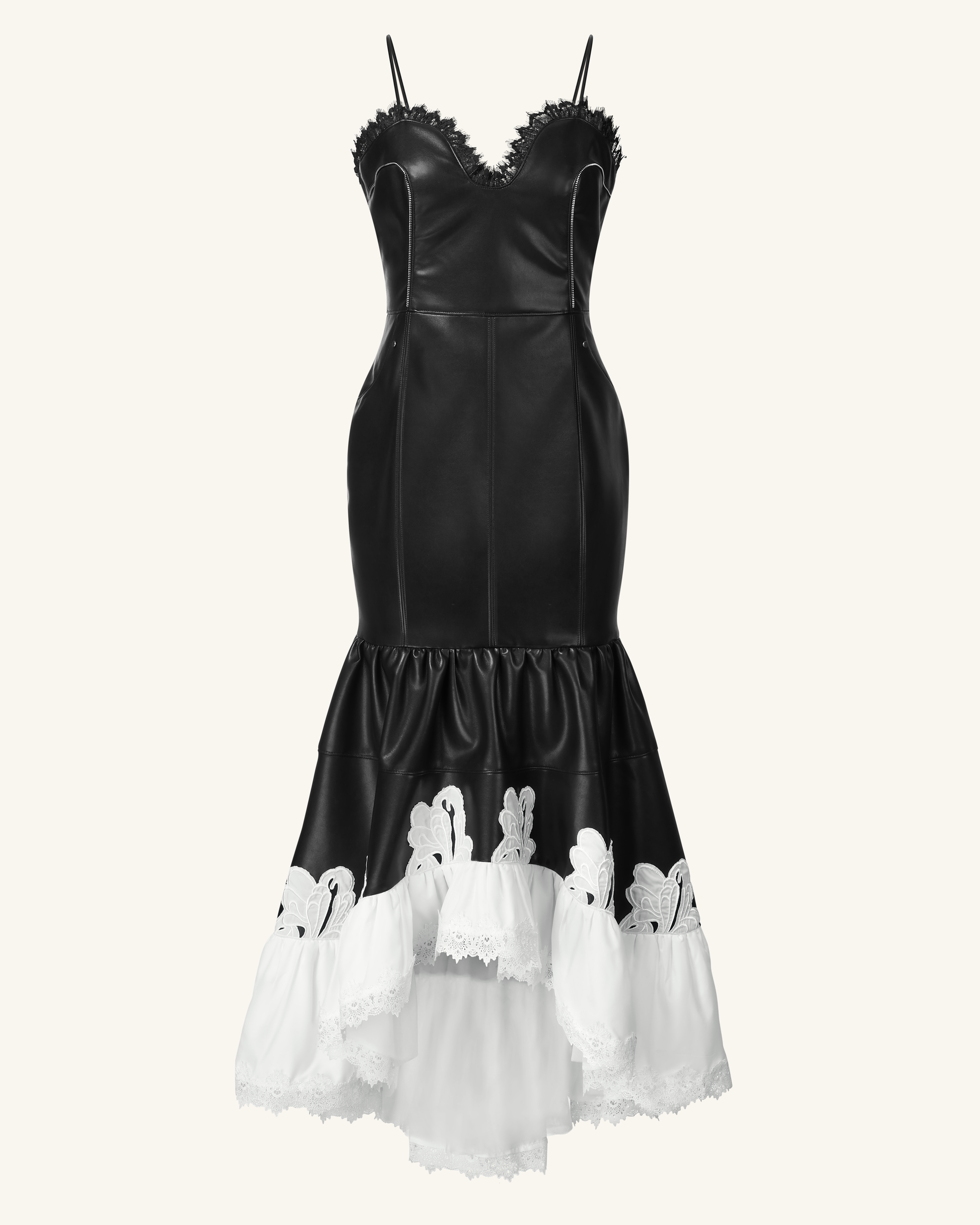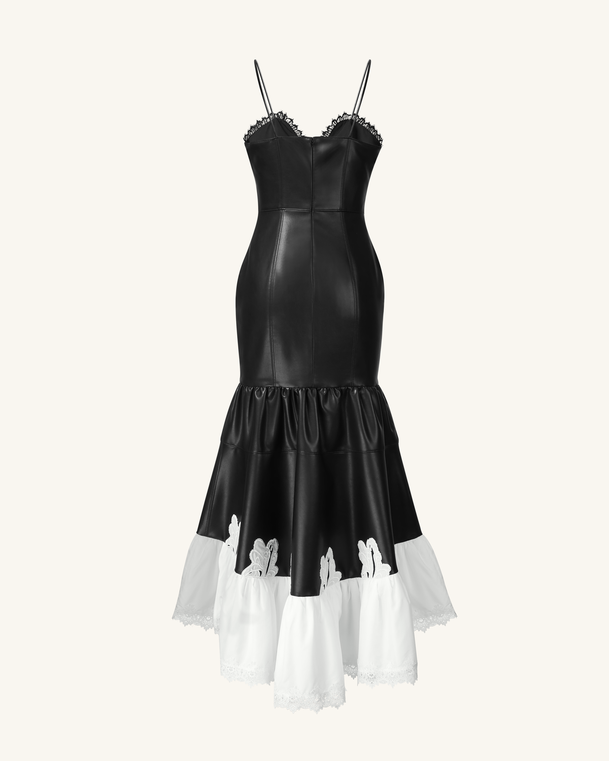 Zora Lederkleid mit Spitzenbesatz - Schwarz